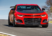 An all-new front fascia is designed to channel air for propulsion-system and drivetrain cooling, with four new radiators bringing the heat-exchanger total to 13. A special carbon-fiber “halo” hood is open in the middle to clear the LT5 engine’s supercharger/intercooler assembly. Additional features, including aero packages with stanchion-mounted wings, help push the ZR1 harder onto the track for more confident handling and faster lap times. Top speed of the ZR1 is over 210 mph.