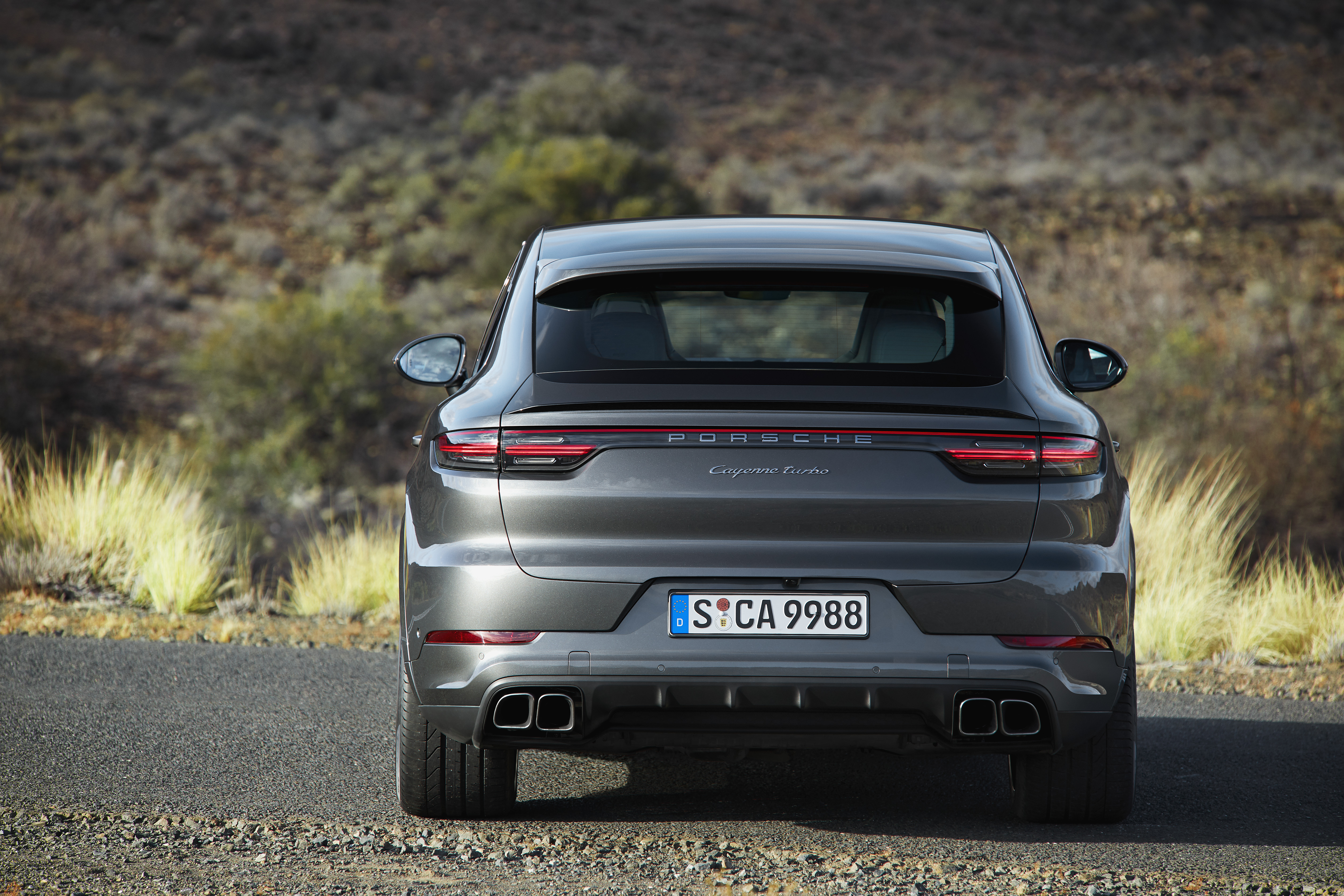 커스텀 디자인 요소와 결합해 더 역동적인 비율을 갖춘 신형 카이엔 쿠페는 독보적인 우아함을 자랑한다. 포르쉐 수석 디자이너 마이클 마우어는 “상당히 날렵한 루프 라인과 함께 역동적인 모습의 신형 카이엔 쿠페는 해당 세그먼트에서 가장 스포티한 디자인의 모델로 포지셔닝 한다”고 강조했다. 루프 스포일러는 독특한 쿠페 실루엣을 더욱 강조한다. 기존 카이엔 비해 얕아진 프런트 윈드 스크린과 A필러로 루프 엣지 역시 약 20 밀리미터까지 더 낮아졌다. 새롭게 디자인 된 리어 도어와 휀더는 차량 숄더를 18 밀리미터 더 넓히며, 전반적으로 강인한 인상을 만들어 낸다.