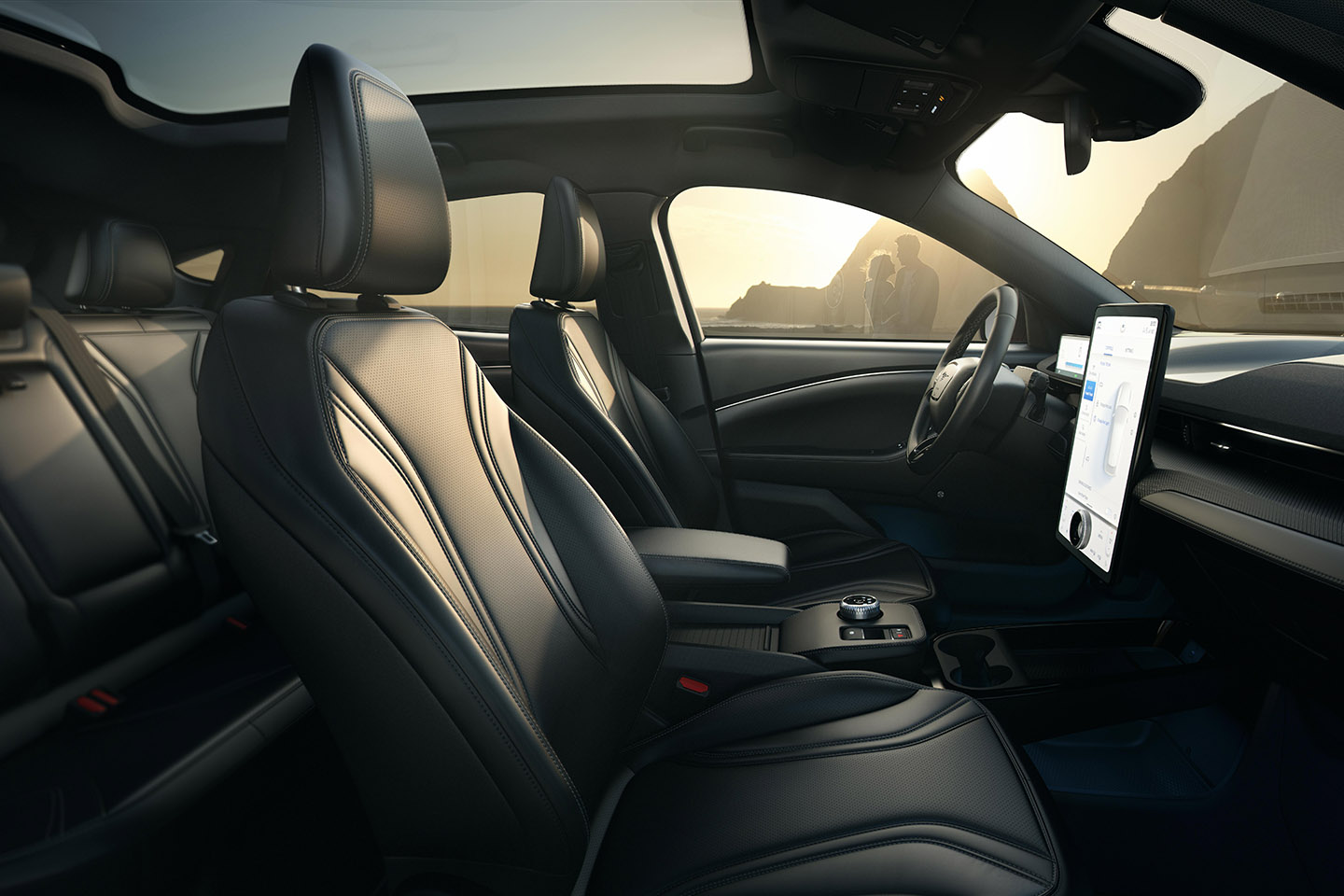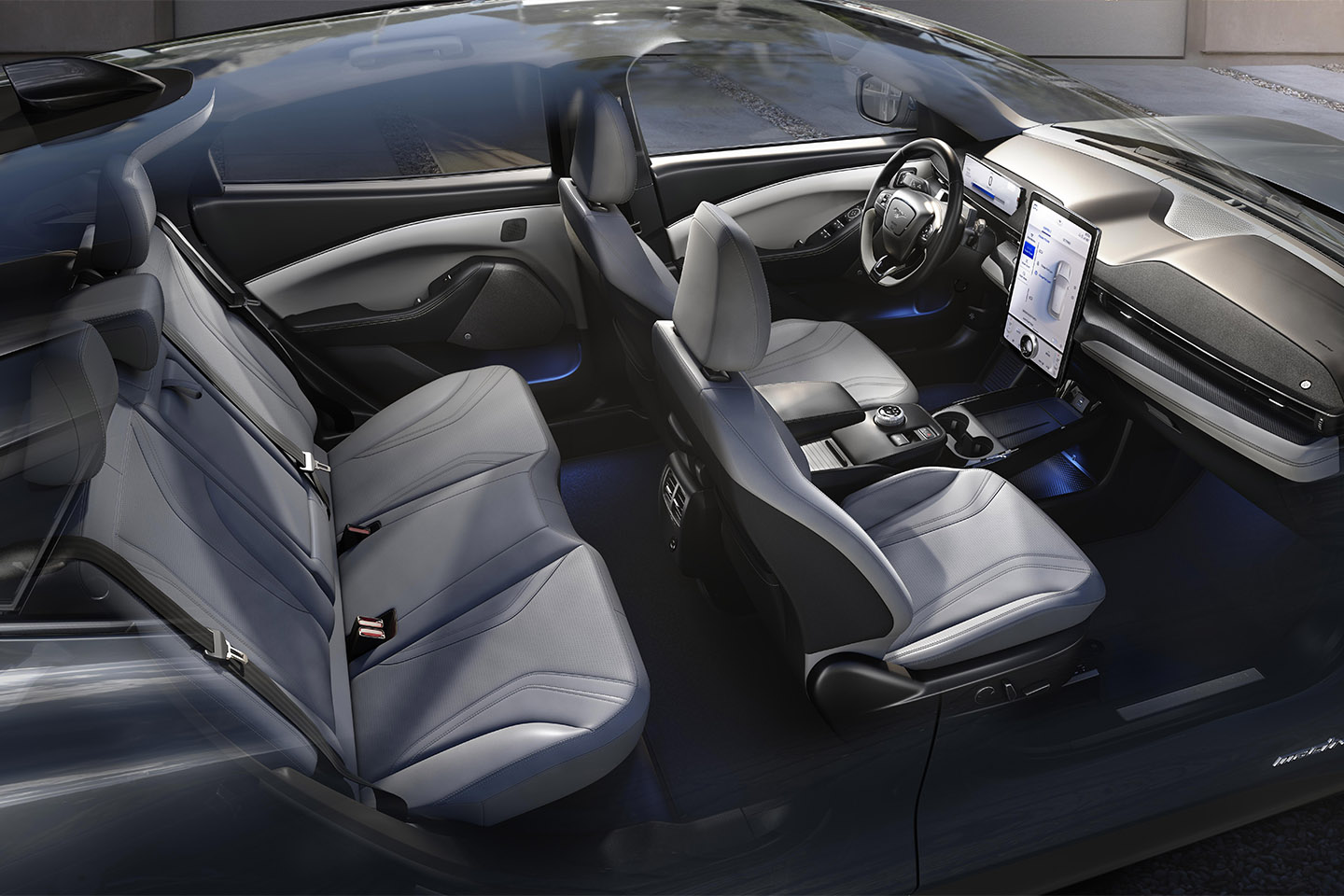 포드의 엔지니어와 설계자는 차체 내부에 배터리를 배치하는 포드의 새로운 완전 전기 아키텍처를 사용하여 Mustang에 해당 할뿐만 아니라 5 명의 승객과화물을위한 SUV 공간을 최대화하는 차량을 만들 수있었습니다.