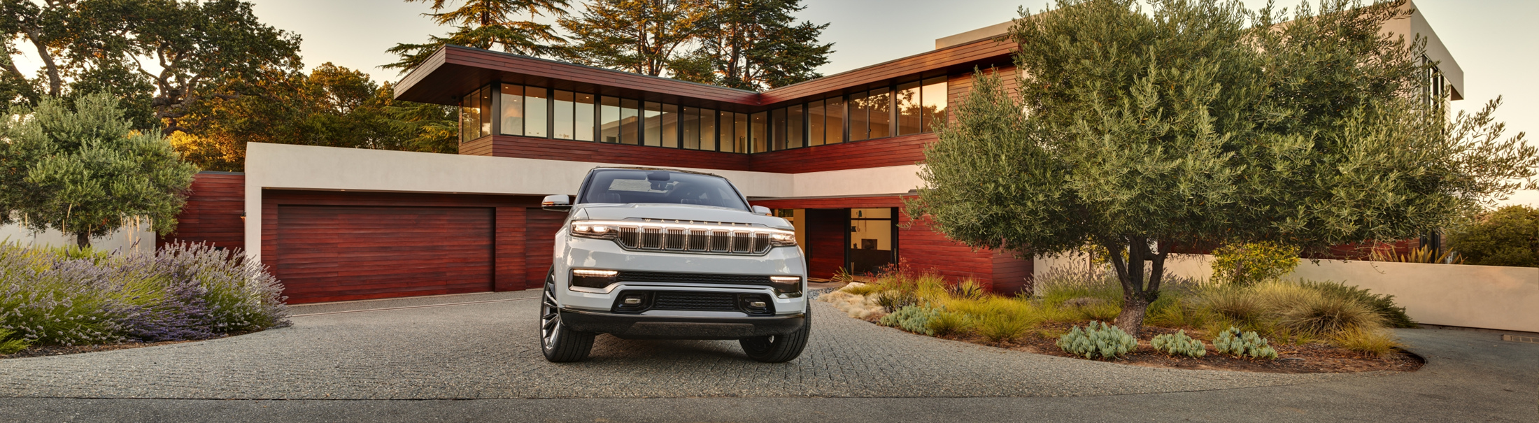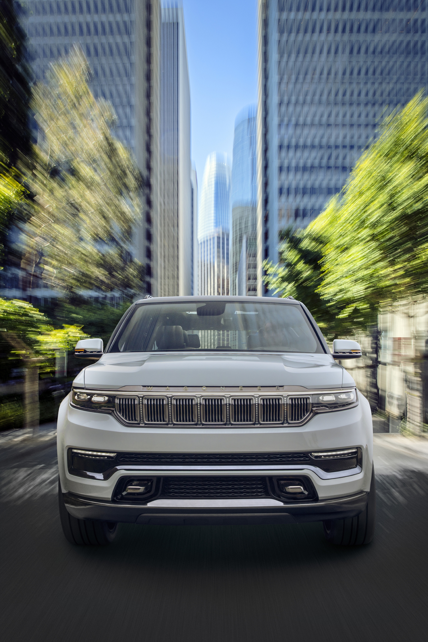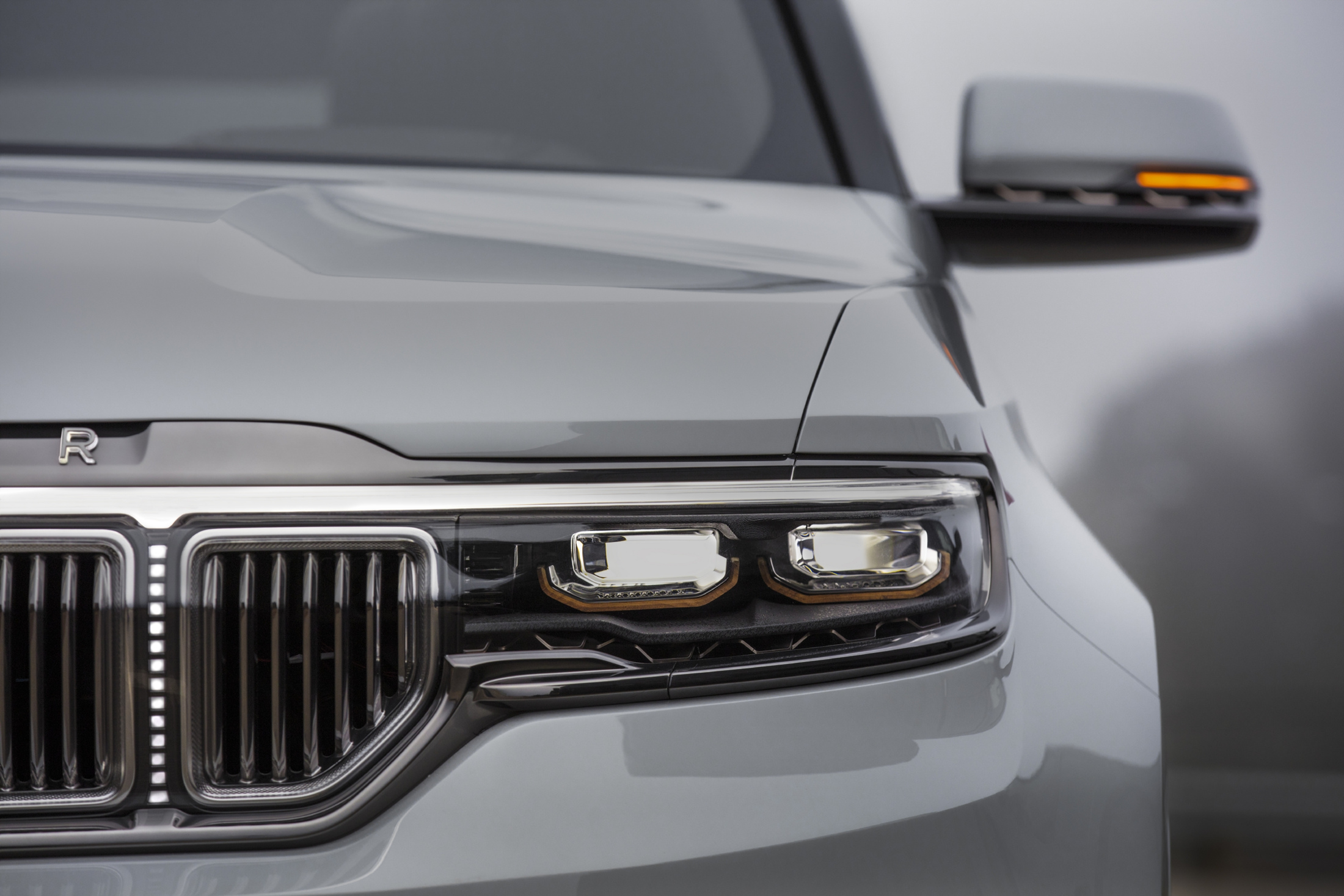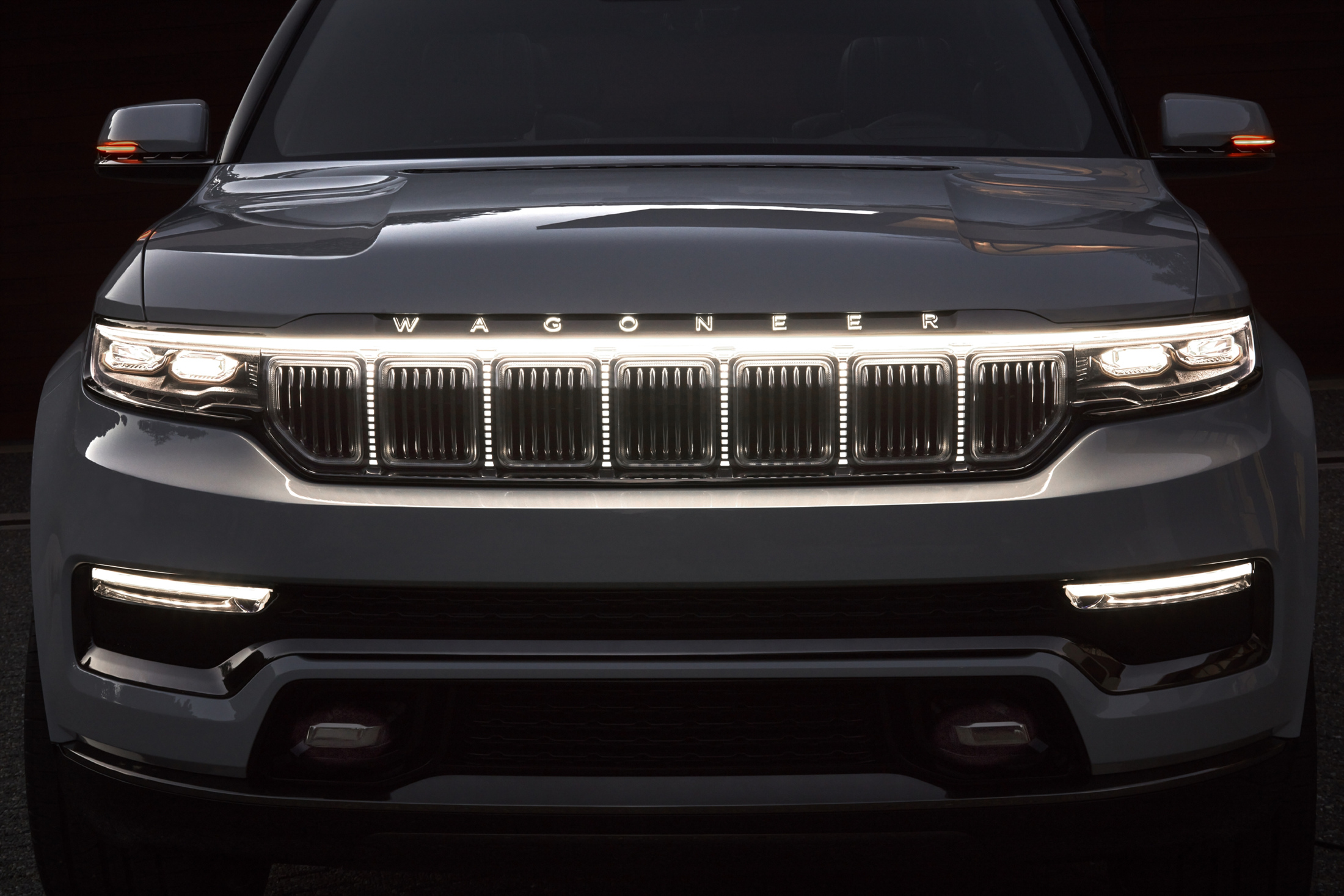 유려한 디자인의 왜고니어 전면은 언제나 클래식하고 품격있는 프리미엄 모델의 분위기를 자아내어 왔다. 이러한 공식은 새로운 그랜드 왜고니어의 콘셉트에도 적용되는데, 최초로 드넓은 3열도 추가되었다. 또한, 그랜드 왜고니어 콘셉트는 다양한 종류의 첨단 프리미엄 기술을 자랑한다. 전동화 파워트레인, 정교한 4x4 오프로드 시스템, SUV에 최초로 적용되는 조수석 화면 등의 최첨단 인테리어가 그 예시이다.