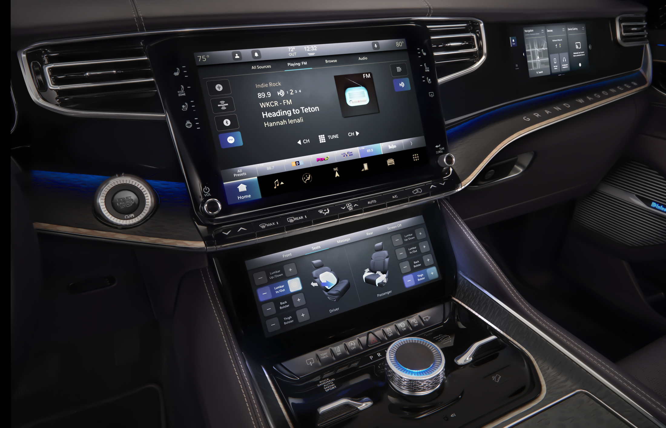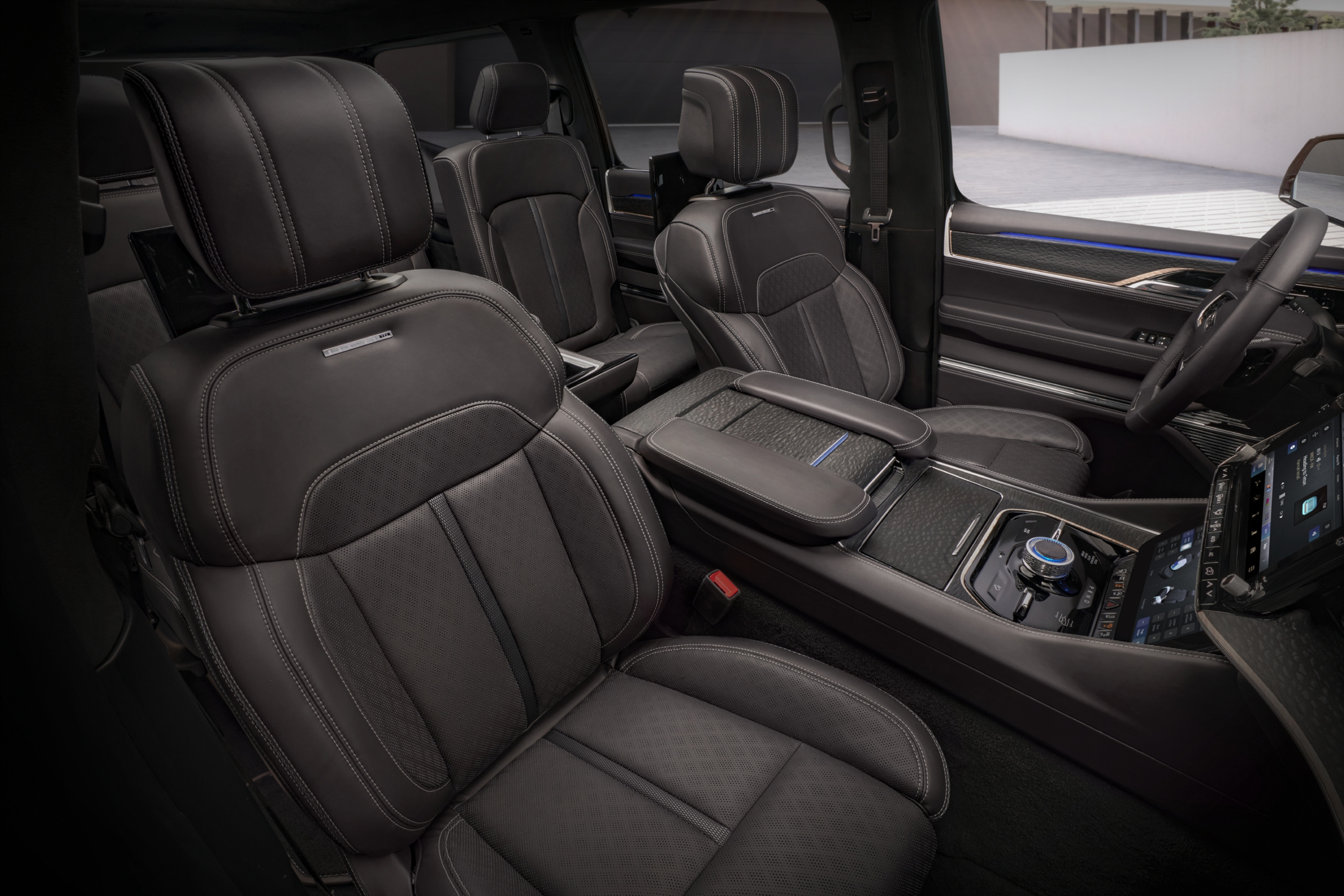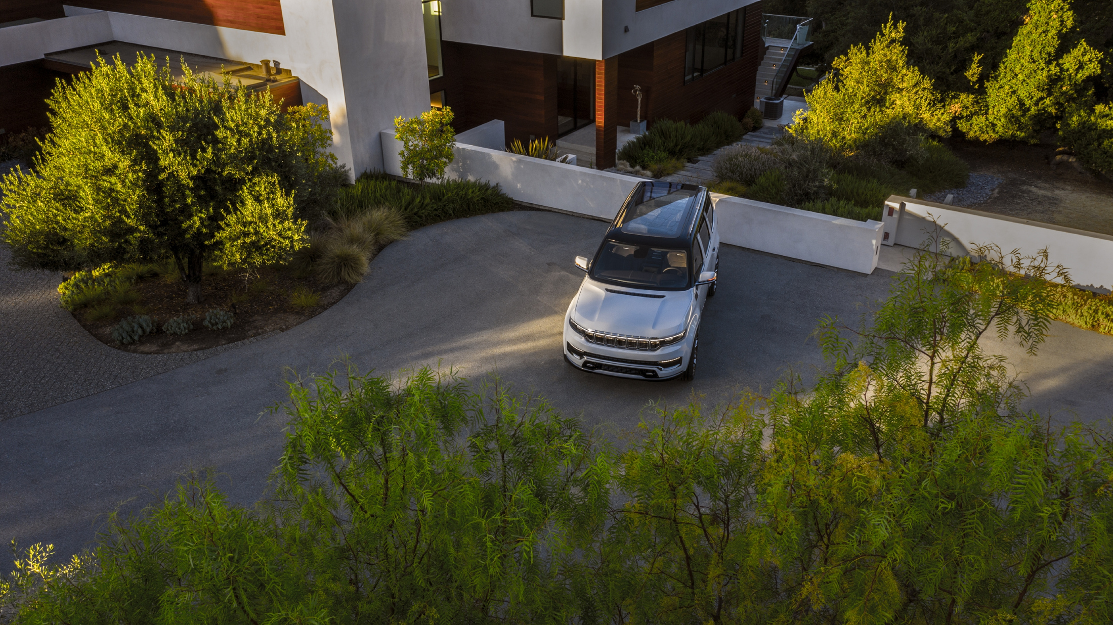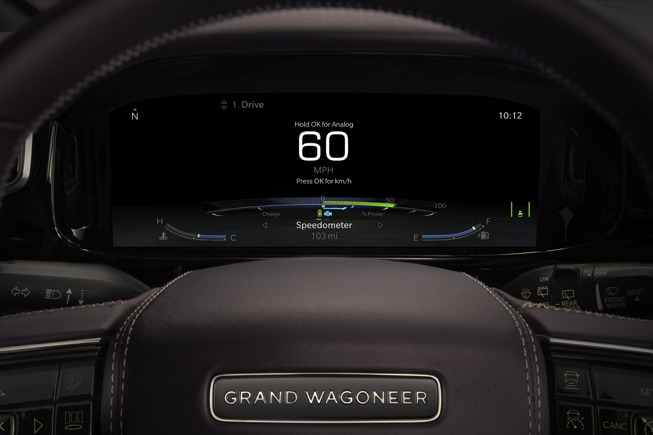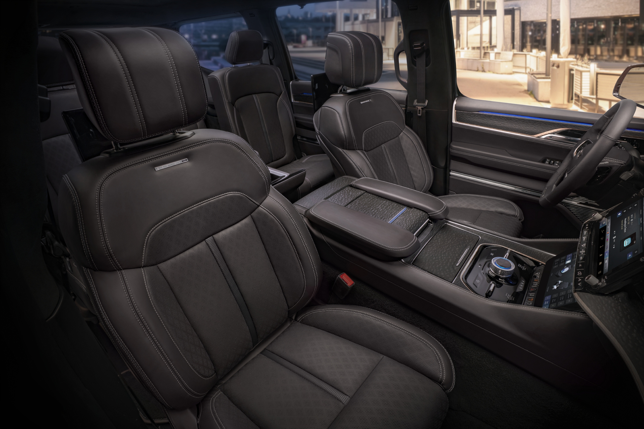 유려한 디자인의 왜고니어 전면은 언제나 클래식하고 품격있는 프리미엄 모델의 분위기를 자아내어 왔다. 이러한 공식은 새로운 그랜드 왜고니어의 콘셉트에도 적용되는데, 최초로 드넓은 3열도 추가되었다. 또한, 그랜드 왜고니어 콘셉트는 다양한 종류의 첨단 프리미엄 기술을 자랑한다. 전동화 파워트레인, 정교한 4x4 오프로드 시스템, SUV에 최초로 적용되는 조수석 화면 등의 최첨단 인테리어가 그 예시이다.