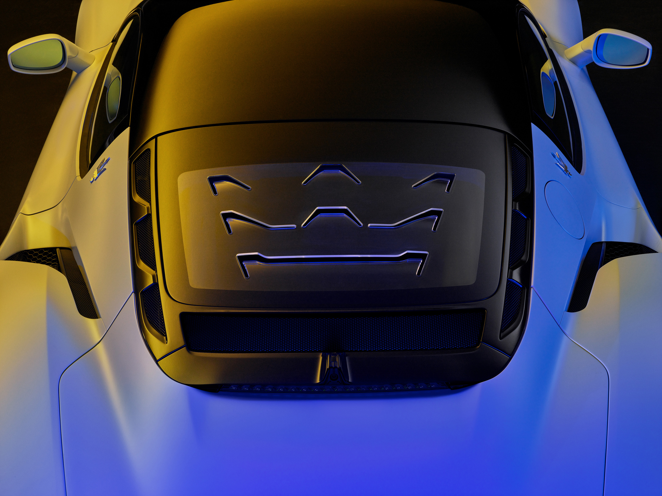 실내 인테리어는 각진 모서리 등을 없앤 단순한 디자인으로 운전자가 온전히 드라이빙에 집중할 수 있도록 구성했다. 2개의 10인치 디지털 디스플레이는 각각 계기판과 인포테인먼트 시스템에 적용되고, 고급스러운 탄소섬유로 마감된 센터콘솔에는 스마트폰 무선 충전 패드, 4가지 주행 모드 셀렉터가 자리잡았다.