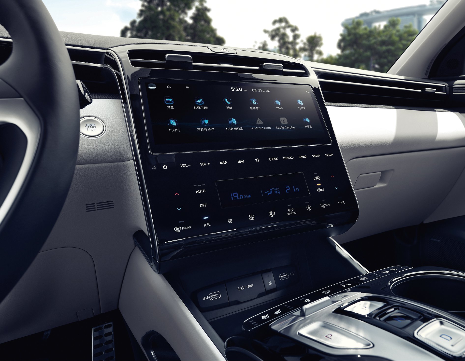 센터페시아는 10.25인치 인포테인먼트 시스템과 터치방식의 공조 장치를 통합해 인체공학적으로 조화롭게 배치했다.