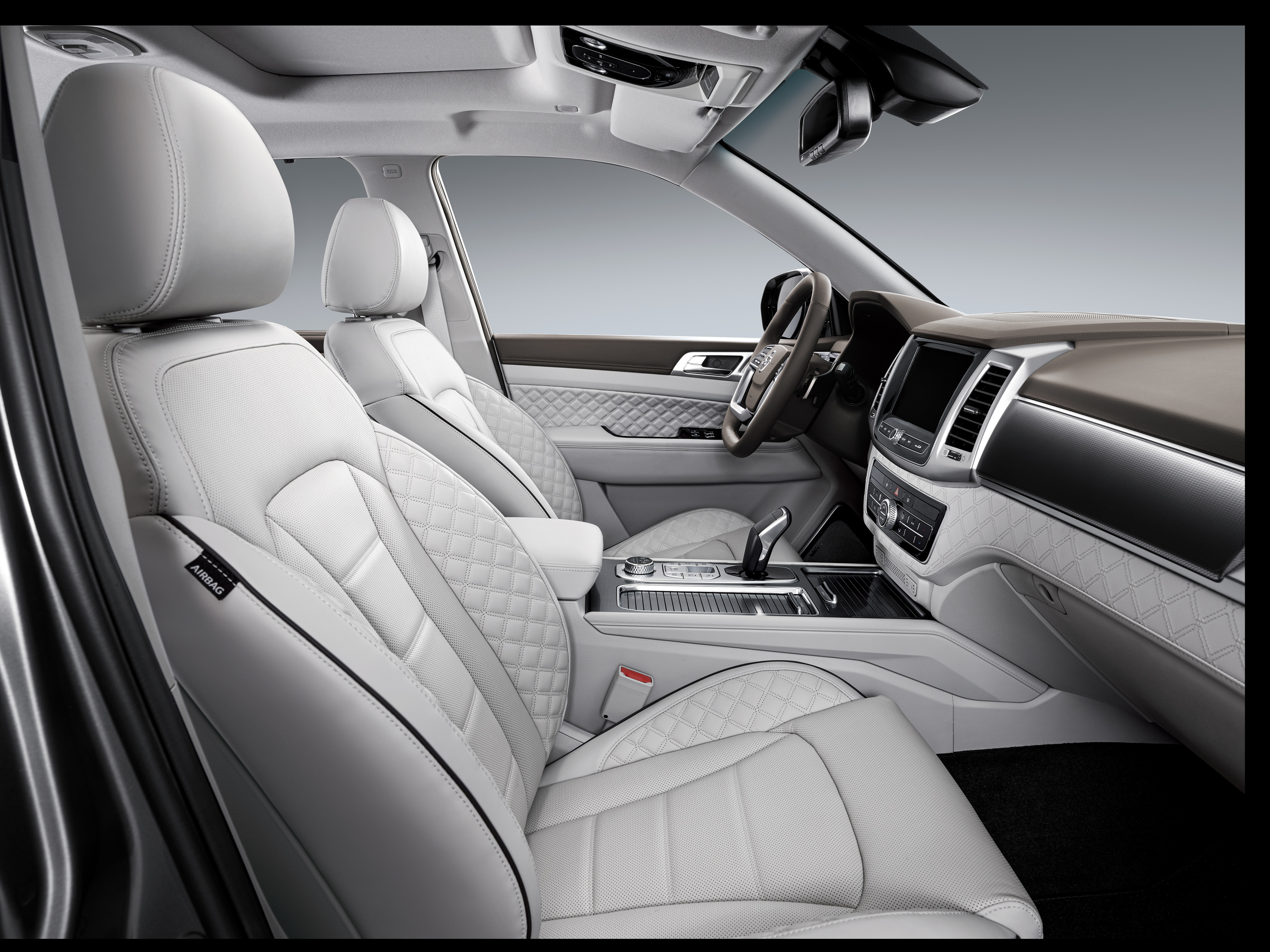 고급감을 극대화한 퀼팅 패턴이 시트와 도어트림을 비롯한 인테리어에 적용됐으며, 정통 SUV의 멋을 살린 4스포크 타입의 스티어링휠은 더블다이아몬드 스티치와 D컷으로 스포티 엣지를 부여했다. 오버헤드콘솔에 하이글로시 소재 신규 디자인과 터치식 스위치로 스타일과 편의성을 더했다.