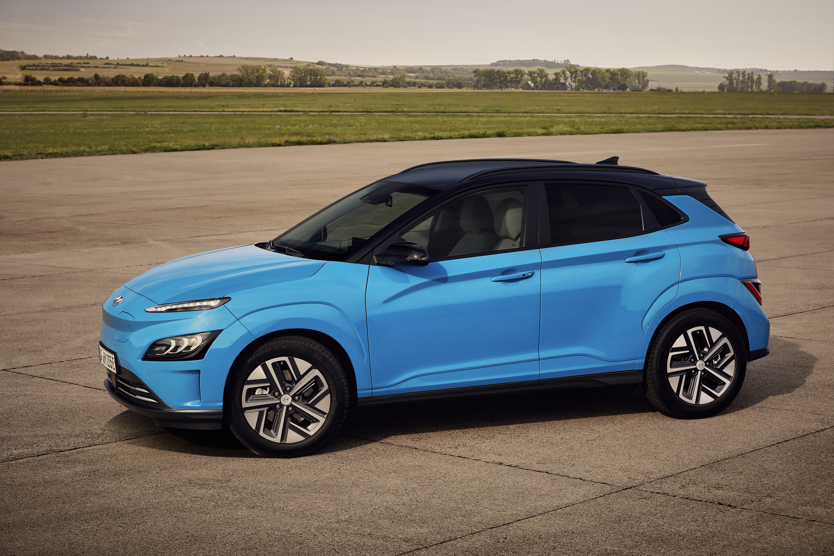 새로운 Kona Electric은 투톤 루프 옵션을 포함하여 다양한 새로운 외부 색상으로 제공됩니다.