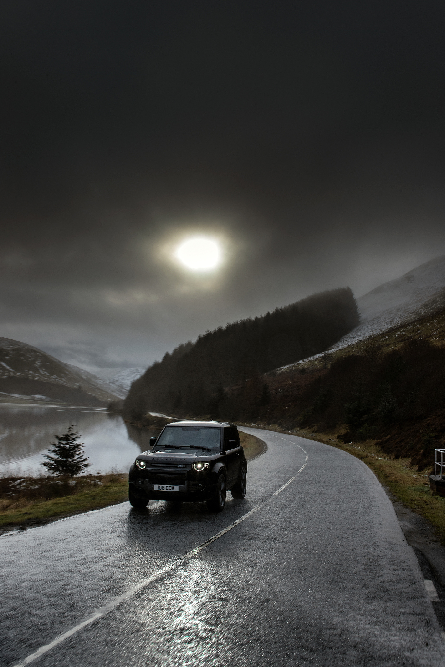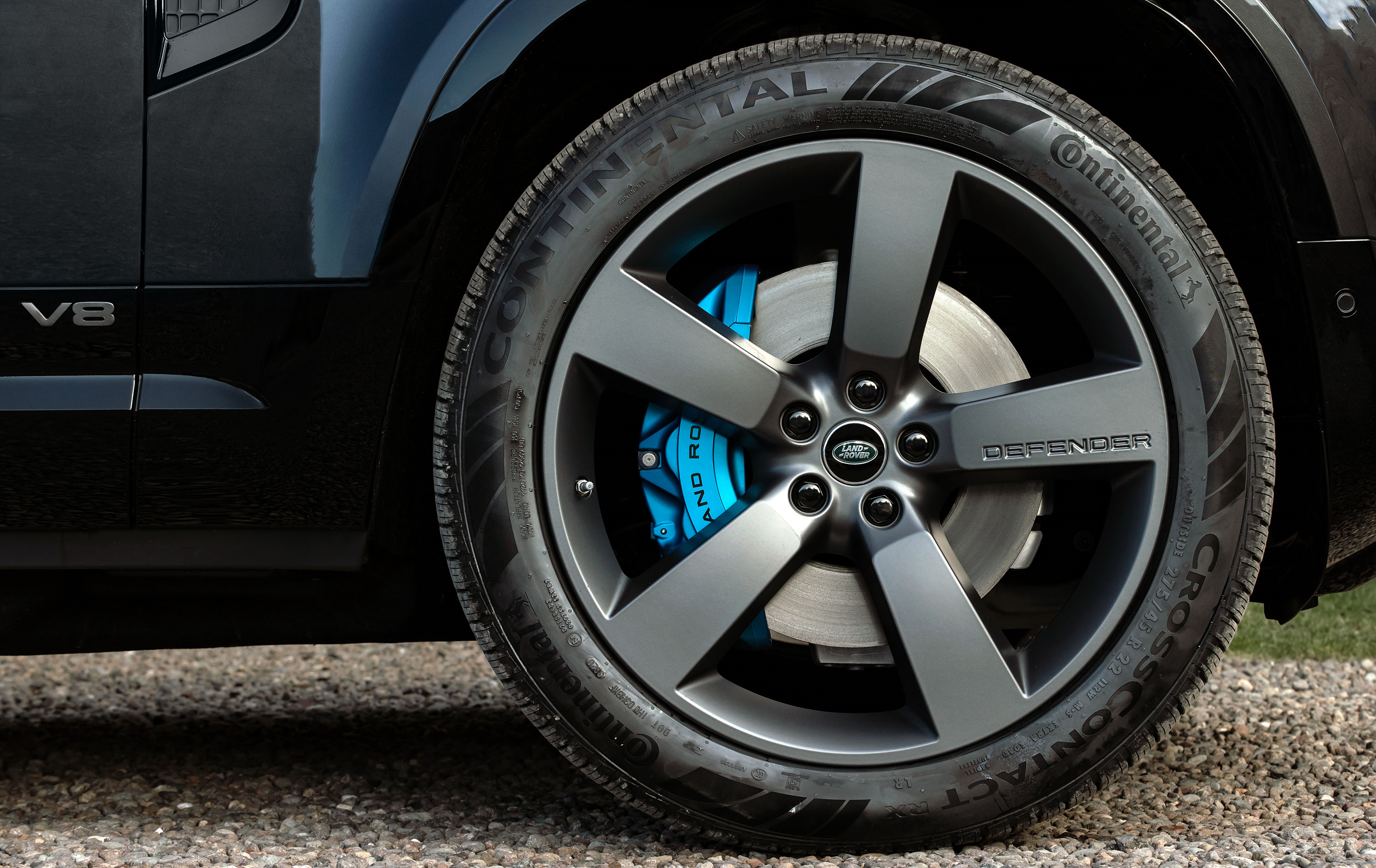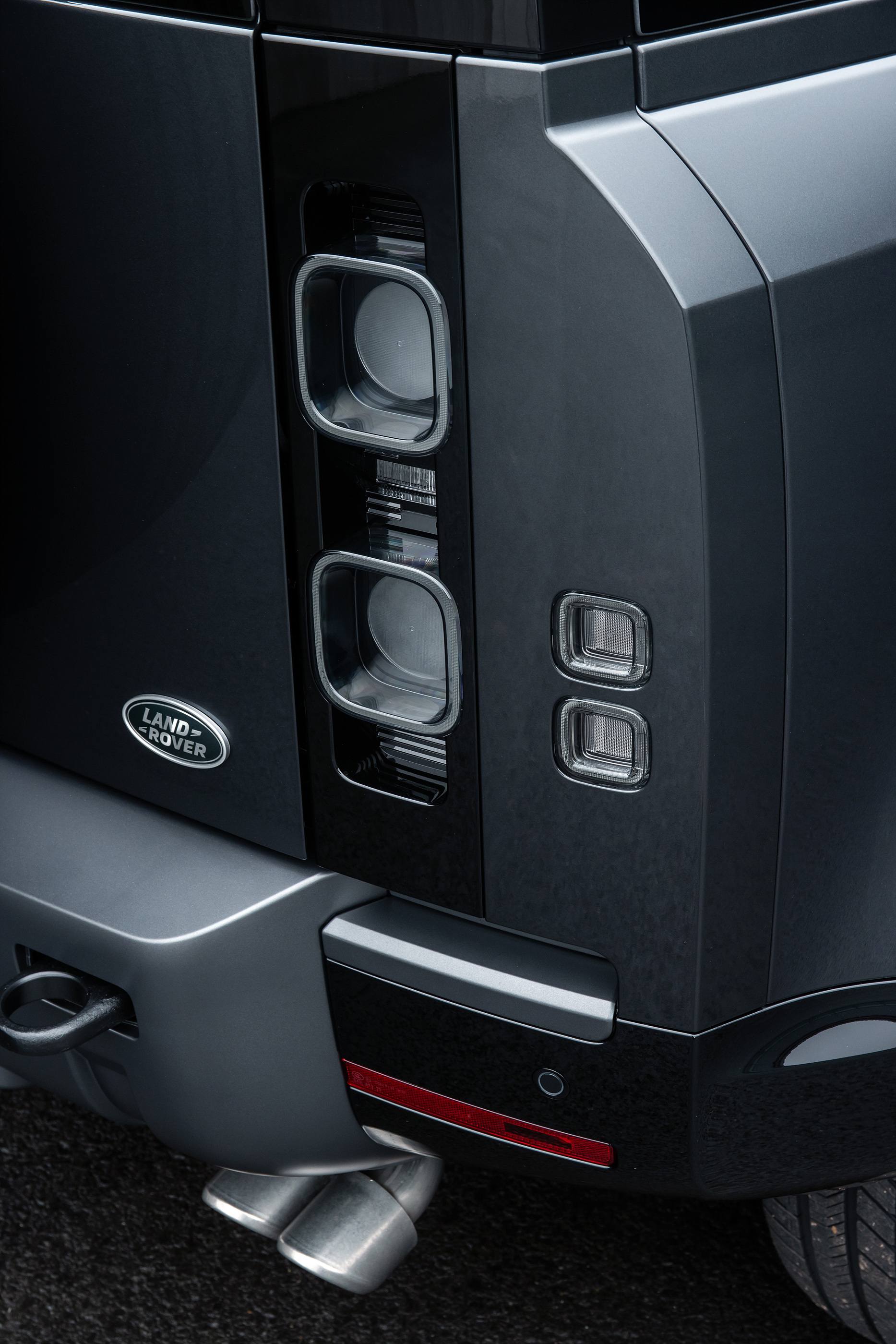 즉시 알아볼 수 있는 Defender V8은 맞춤식 외부 배지, 독특한 테일파이프를 갖춘 쿼드 배기 장치, 새틴 다크 그레이 마감의 독특한 22인치 알로이 휠 조합 등 다양한 외부 기능을 개선하여 라인업에서 가장 강력한 모델을 차별화합니다. Defender V8은 프론트 제논 블루 브레이크 캘리퍼에 의해 추가로 식별됩니다.