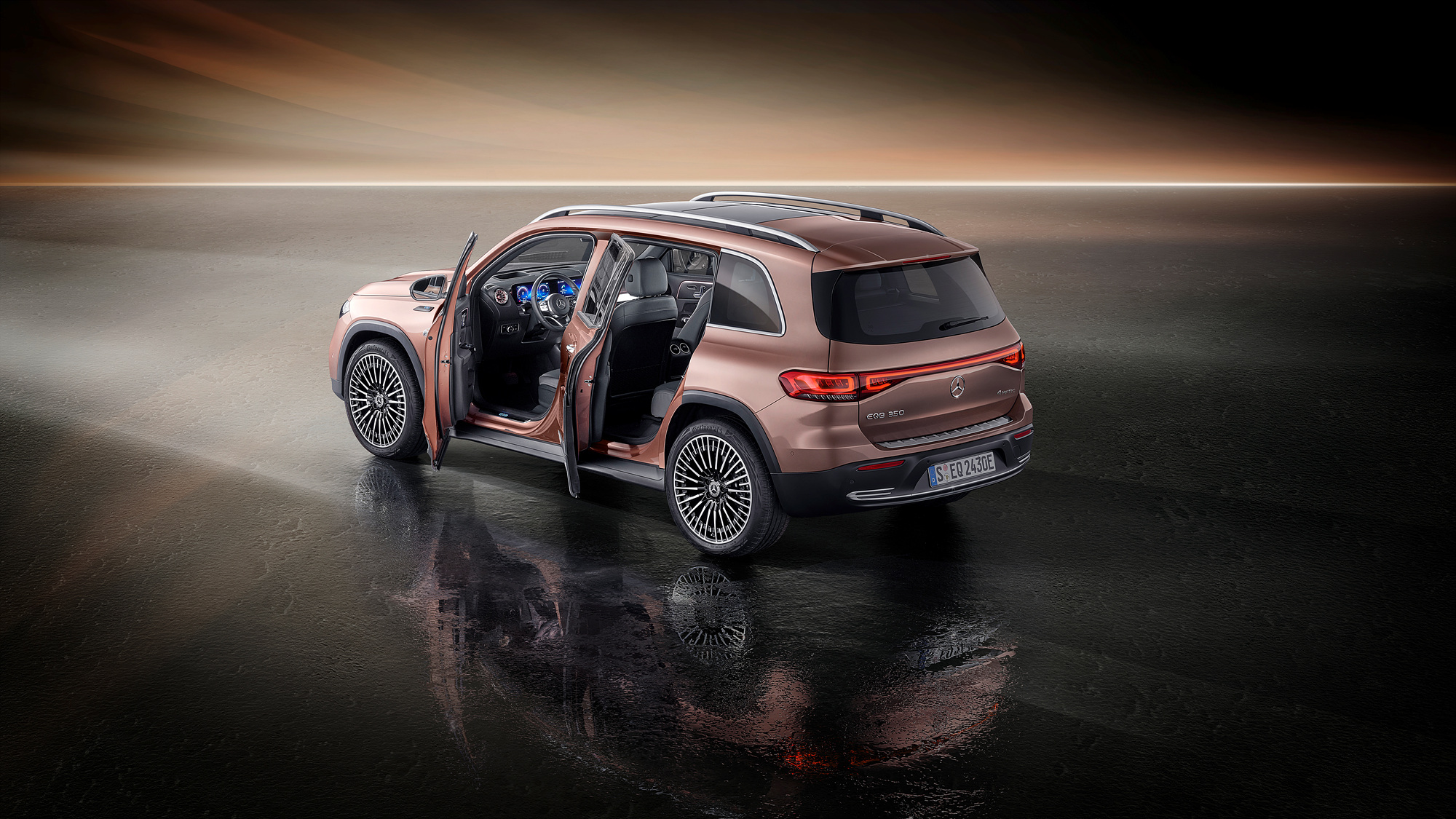 더 뉴 EQB는 메르세데스-EQ의 디자인 언어인 진보적인 럭셔리(Progressive Luxury)를 세련되고 개성있게 표현했다. 삼각별이 중앙에 위치한 블랙 패널 라디에이터 그릴은 메르세데스-EQ의 아이덴티티를 나타낸다. 전면과 후면의 긴 스트립 조명과 헤드램프 내부 블루 하이라이트도 EQ만의 개성을 배가한다. 더 뉴 EQB는 2,829 mm에 달하는 긴 휠베이스로 넉넉한 공간, 넓은 실내 공간, 3열 좌석(선택사양)을 제공해 실용성을 높였다. 운전석과 조수석 사이에는 중앙 디스플레이가 위치하며, 운전석에는 MBUX(Mercedes-Benz User Experience) 인포테인먼트 시스템을 통해 제어가 가능한 와이드스크린 콕핏이 배치되었다. 실내의 다양한 알루미늄 요소는 더 뉴 EQB 만의 견고한 특성을 강조한다.