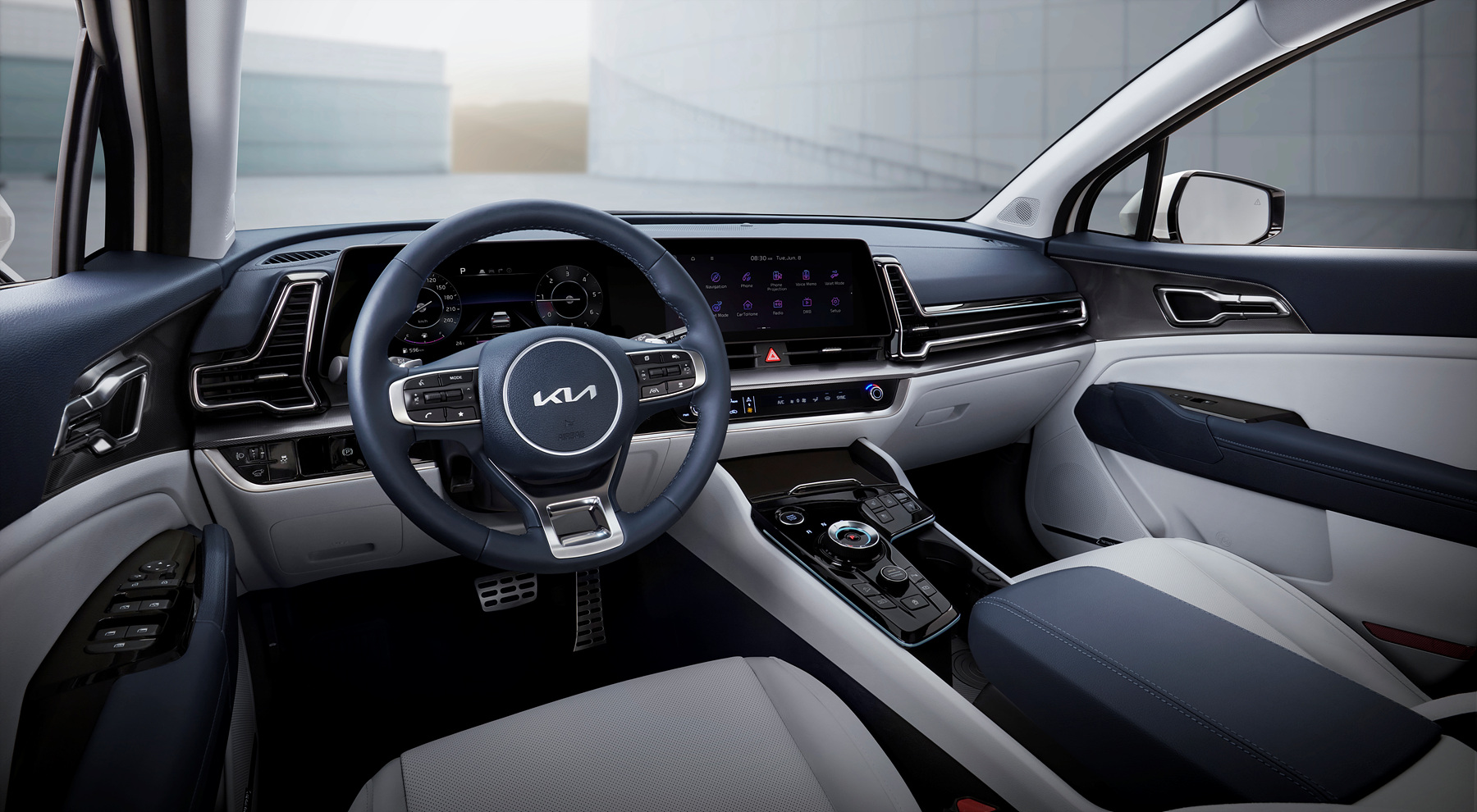 기아는 신형 스포티지에 12.3인치 계기반과 12.3인치 인포테인먼트 시스템 화면을 부드럽게 곡면으로 연결한 파노라믹 커브드 디스플레이를 국내 준중형 SUV 최초로 적용했다.