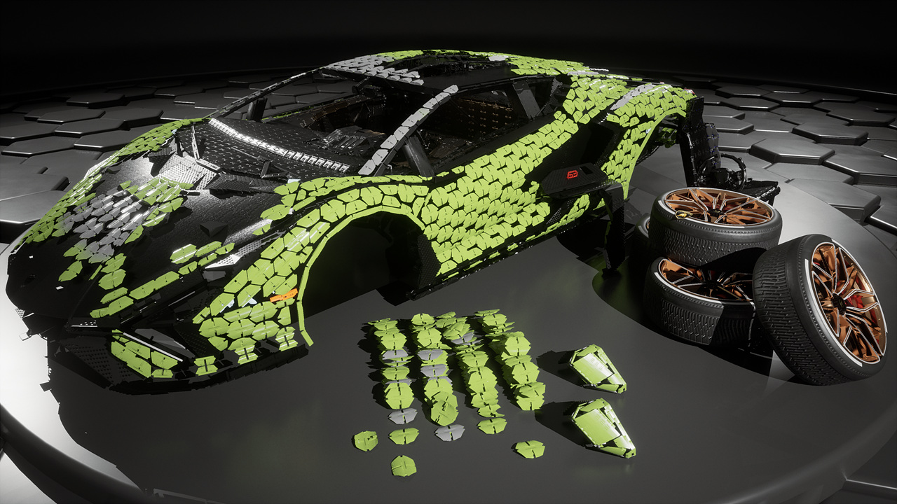 이번 프로젝트는 설계 단계부터 람보르기니 디자인의 정수를 담기 위한 특수 작업이 다채롭게 이뤄졌다. 무엇보다 공기역학적인 차체를 오차 없이 재현하기 위해 람보르기니 디자인의 핵심이라 할 수 있는 육각형 패턴으로 레고 브릭이 촘촘하게 짜여진 구조의 레고 섬유를 개발했다. 역동적인 모습을 한 층 더 돋보이게 하는 육각 후미등과 배기구도 사실적으로 재현했다