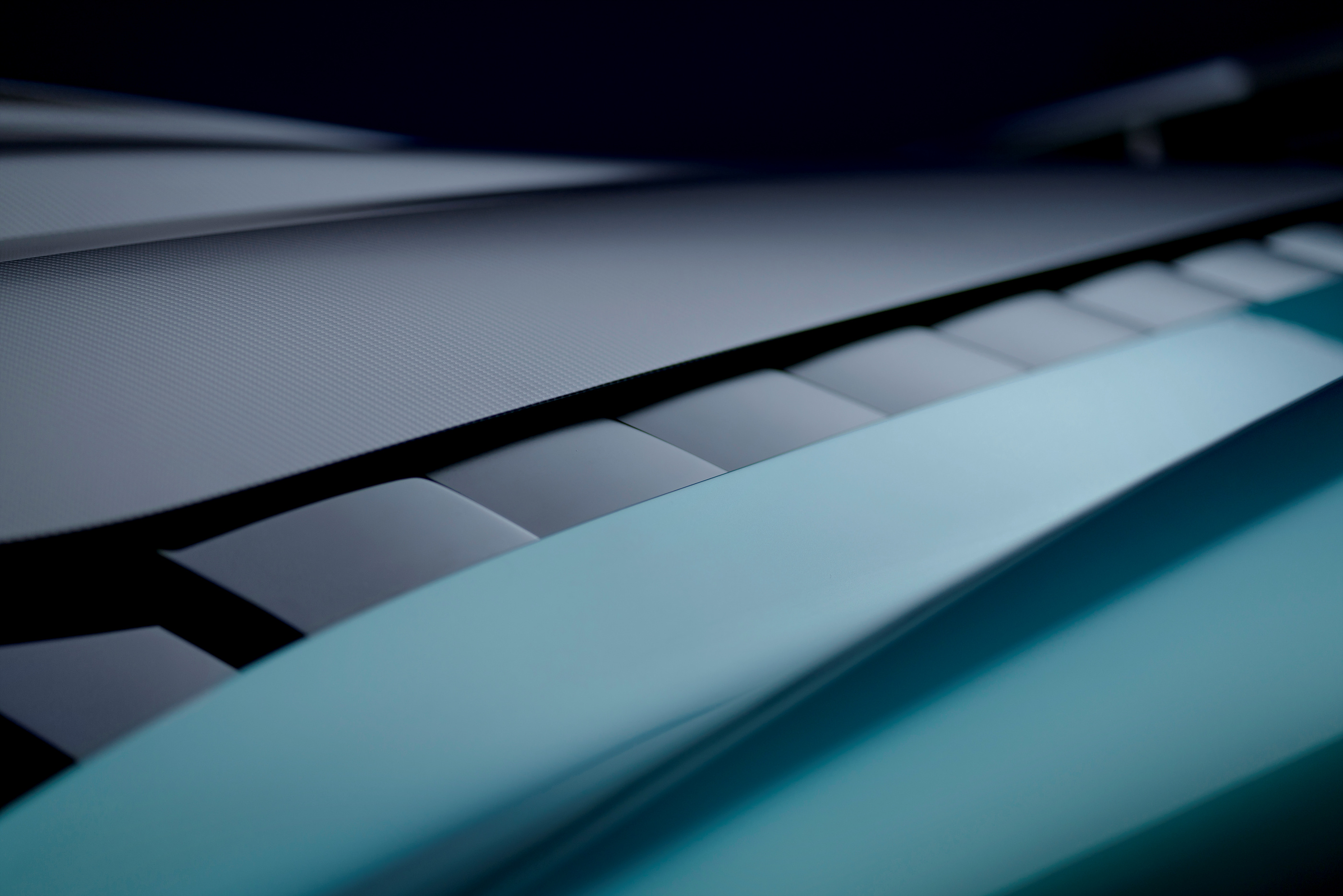 The pursuit of downforce demands uncompromising functionality, but expertly working the airflow beneath the car has left Aston Martin’s design team with a clean upper body surface with which they have created a memorable mid-engined shape that is original yet unmistakably Aston Martin. Uncorrupted by the need for aggressive wings that jut into the airstream, Valhalla’s predominantly carbon fibre body blends function and beauty in a manner that befits a new generation of mid-engined supercar. Spectacular forward-hinged dihedral doors bring drama to the beginning and end of every journey, while cut-outs in the roof ease ingress and egress. A distinctive roof scoop feeds air directly into the V8 engine’s intakes, with additional side and rear intakes and vents integrated smoothly into the overall body design.