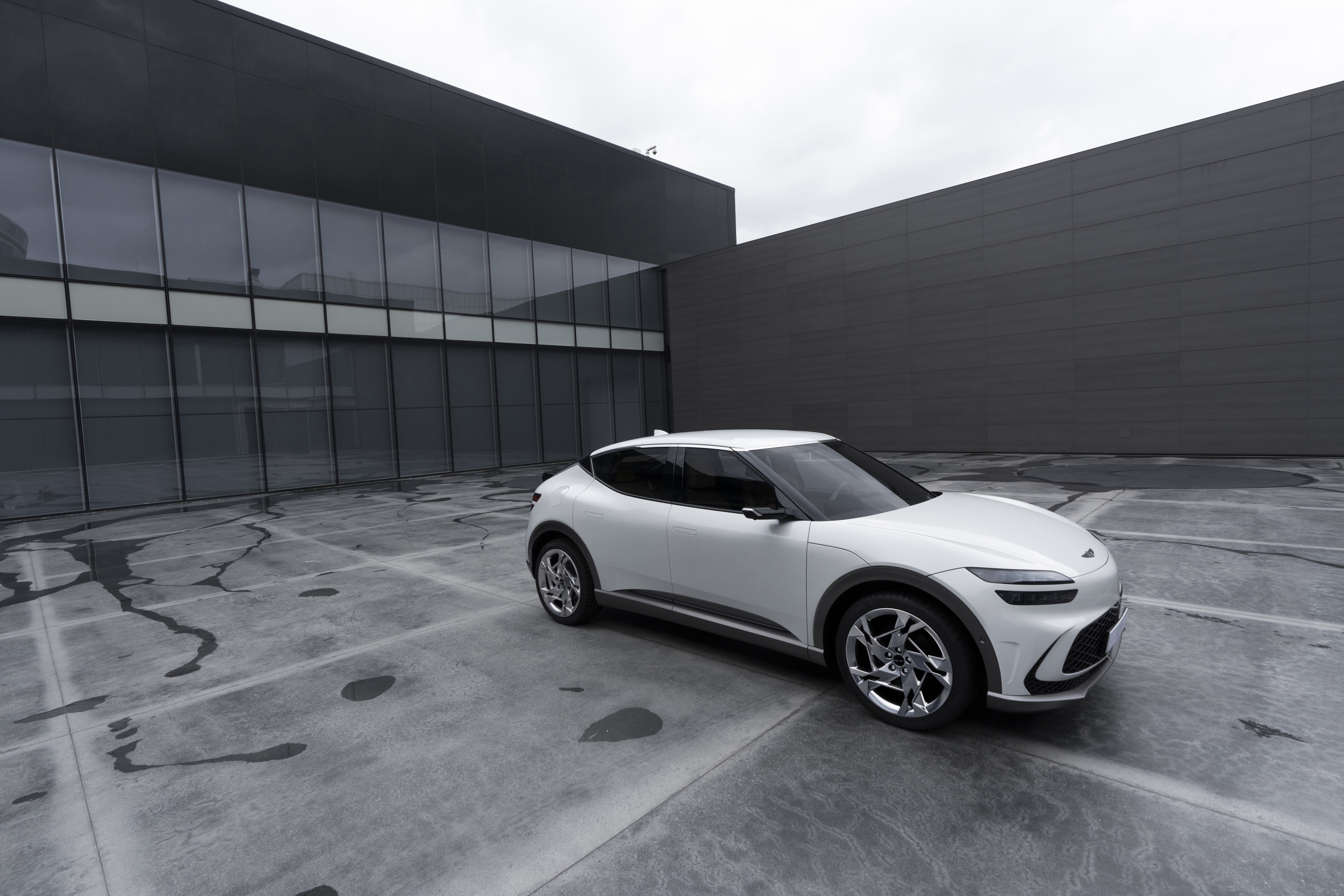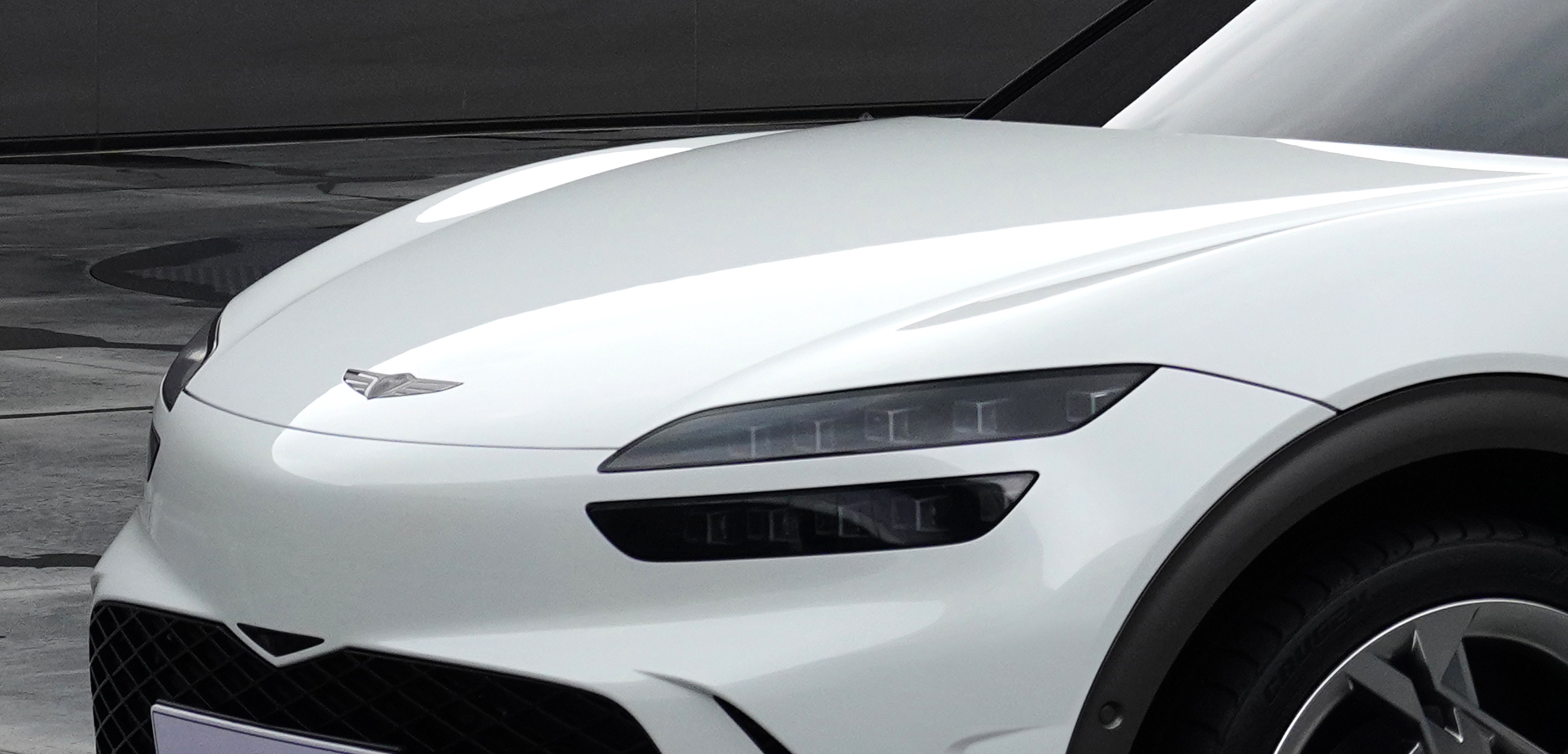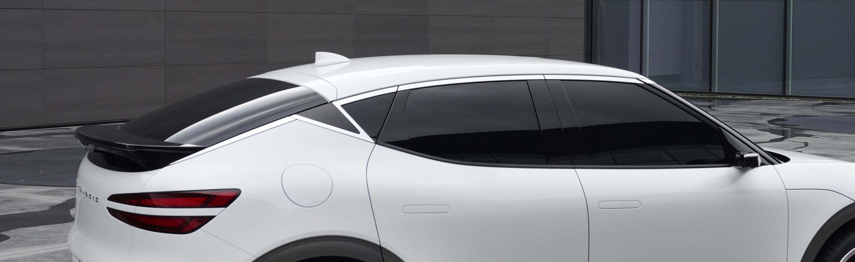 측면부는 고성능 쿠페 스타일의 매끄럽고 다이내믹한 프로파일을 구현한 것이 특징이며, 전면부 후드에서부터 후면부 스포일러까지 간결하면서도 예리하게 다듬어진 실루엣에 고성능 이미지를 강조하는 입체적인 볼륨감을 더해 제네시스 전용 전기차만의 진일보한 캐릭터를 탄생시켰다.