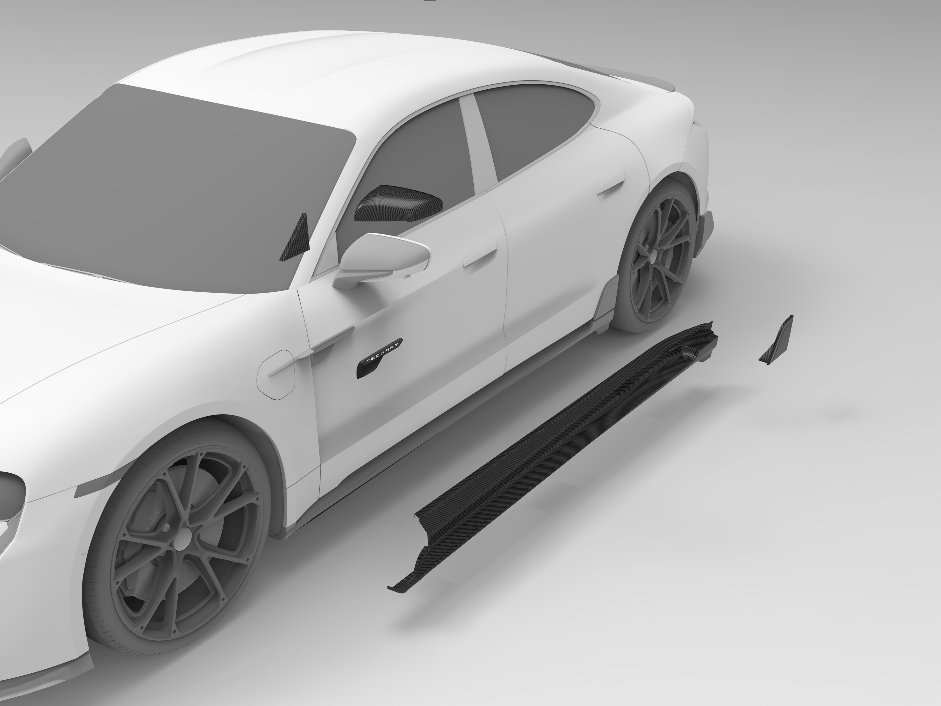 전기차 고유한 타이칸의 매력 포인트를 유지하면서 테크아트만의 스포티한 감성을 자극합니다. 모두 카본으로 만들었고 기존 부품을 탈거하고 쉽게 붙일 수 있는 구조에요