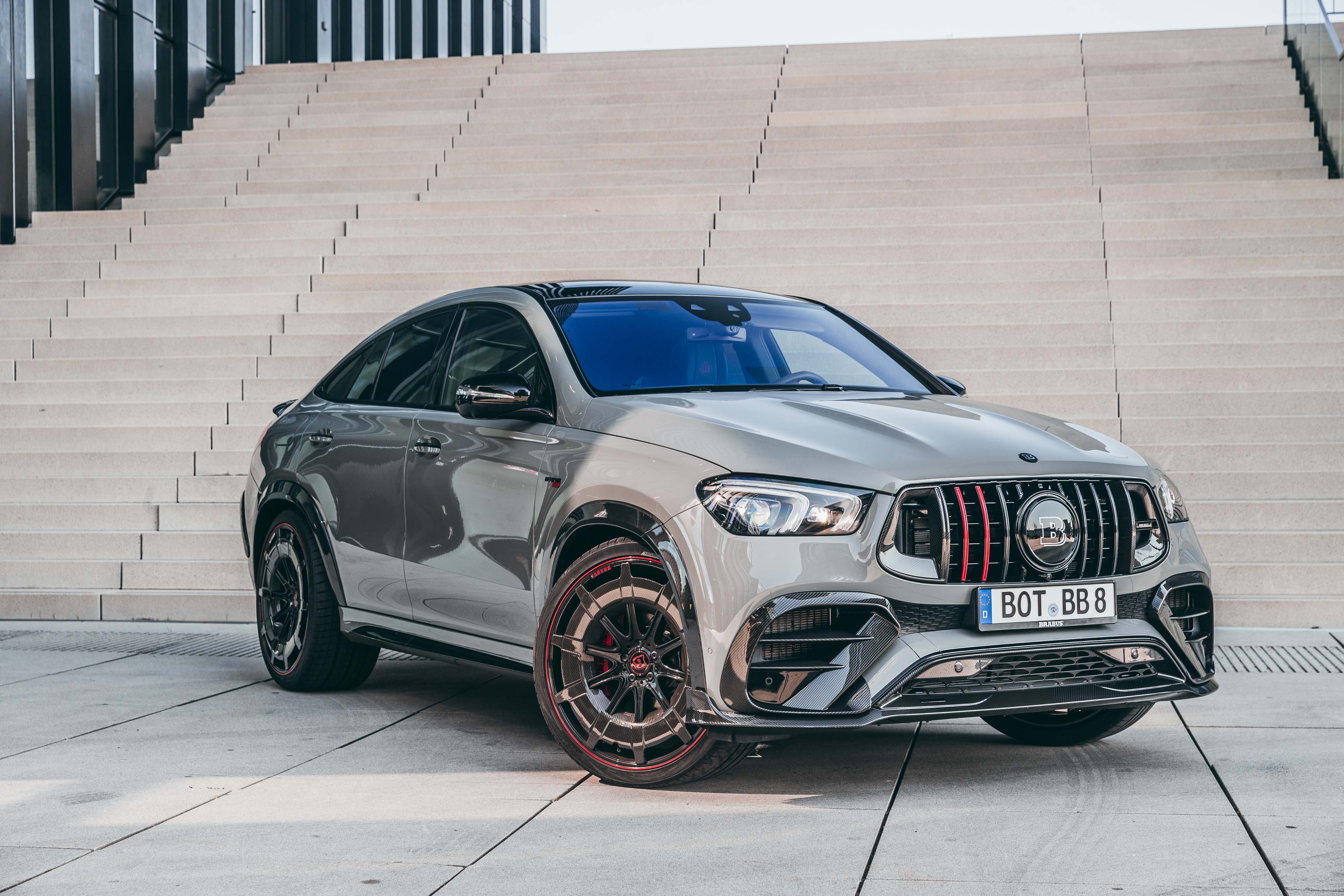 튼실한 심장에 맞춰 외모도 스포티하게 가꿨다. 앞뒤 펜더에 카본 익스텐더를 붙였고 프런트 스포일러를 더해 고속에서 차체가 뜨는 걸 방지했다. 앞 범퍼 측면에 공기 흡입구를 추가했으며, 브라부스 엠블럼과 레드 스트라이프로 그릴을 장식했다.