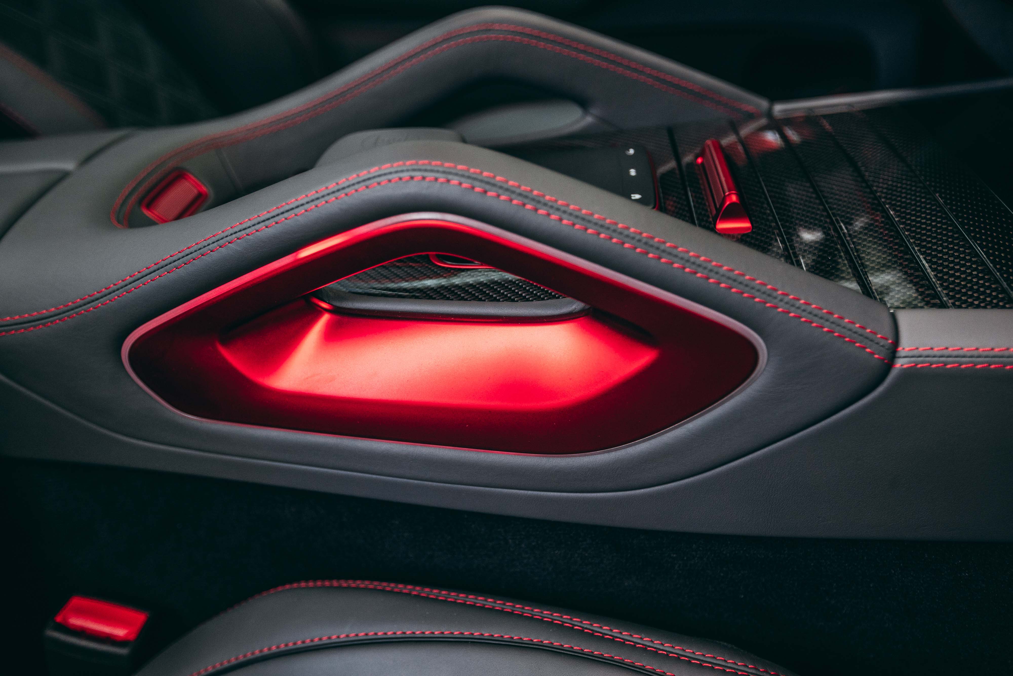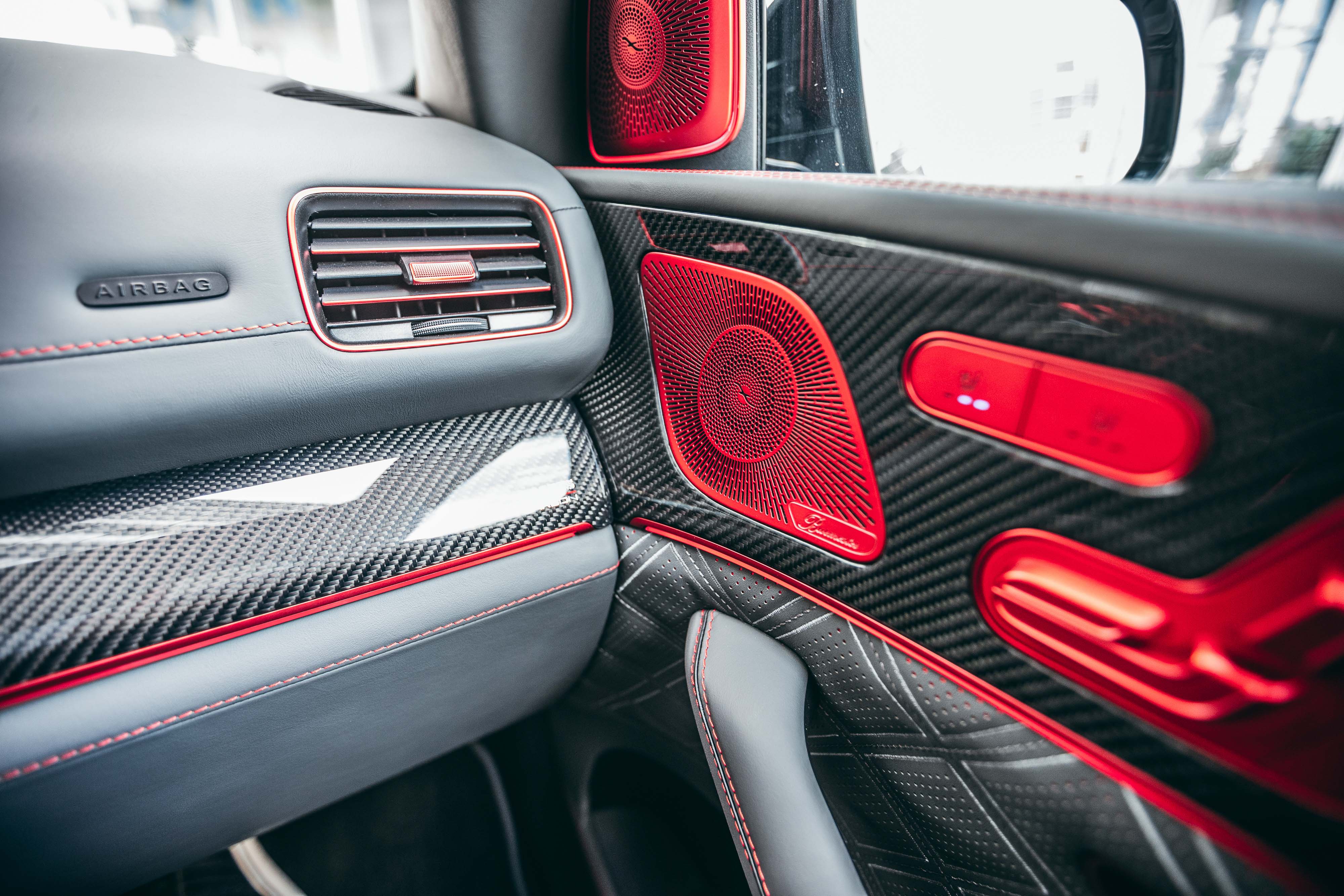 실내는 여느 브라부스와 비슷한 흐름이다. 다만 레드 포인트를 주어 강렬하다. 최고급 가죽과 카본으로 도배한 느낌이다. 브레이크와 가속 페달도 알루미늄으로 만들고 붉게 물들였다.