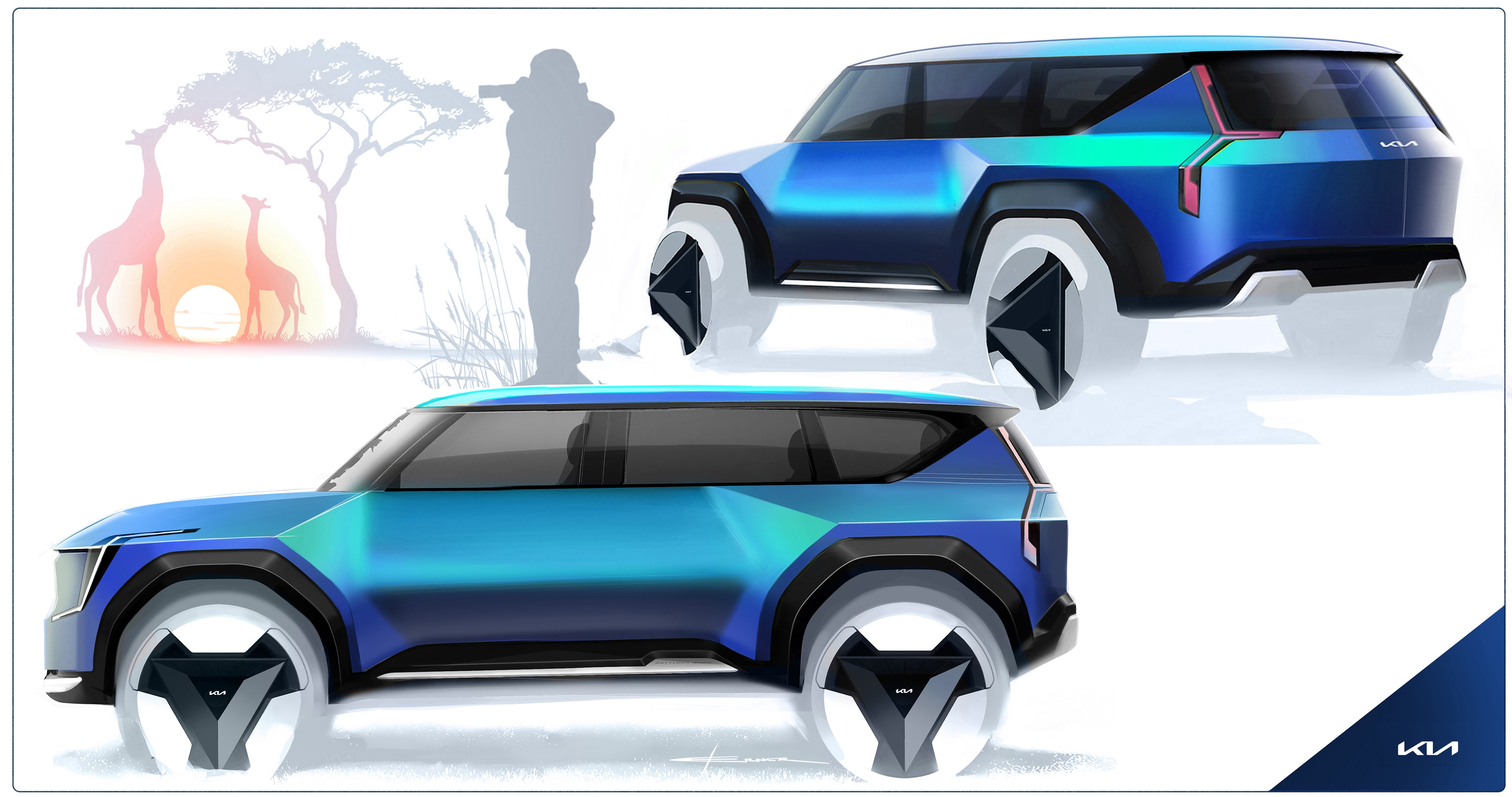 기아는 오퍼짓 유나이티드의 다섯 가지 속성 중 ‘자연과 조화되는 대담함(Bold for Nature)’에서 영감을 받아 전용 전동화 SUV의 독창적이고 대담한 형상을 구현했다.
