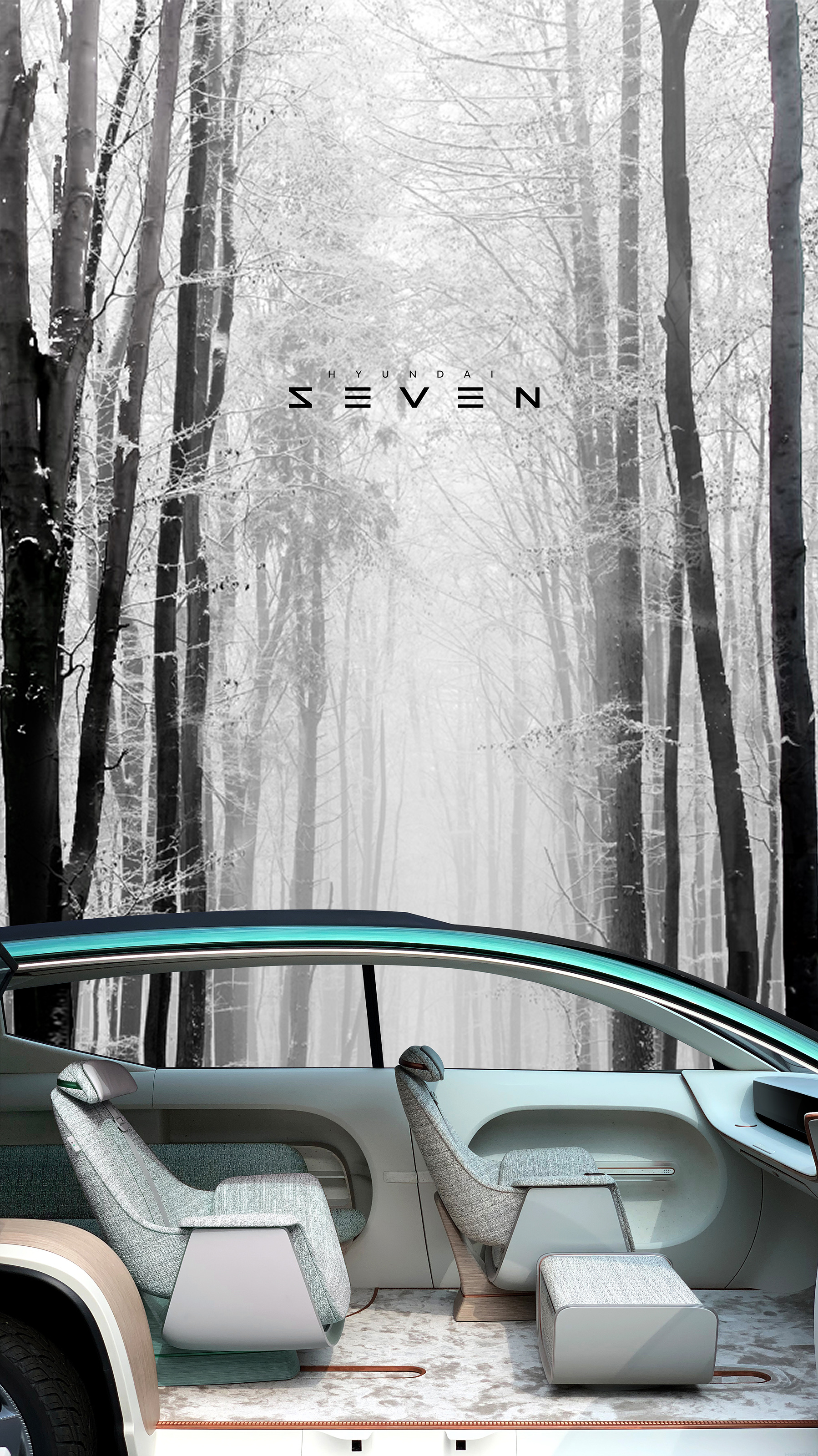 세븐의 실내는 거주성을 향상시켜 탑승객들이 자유롭게 공간을 활용할 수 있게 했으며, 이는 앞으로 다가올 자율주행 시대의 차량 내부 모습을 연상시킨다.