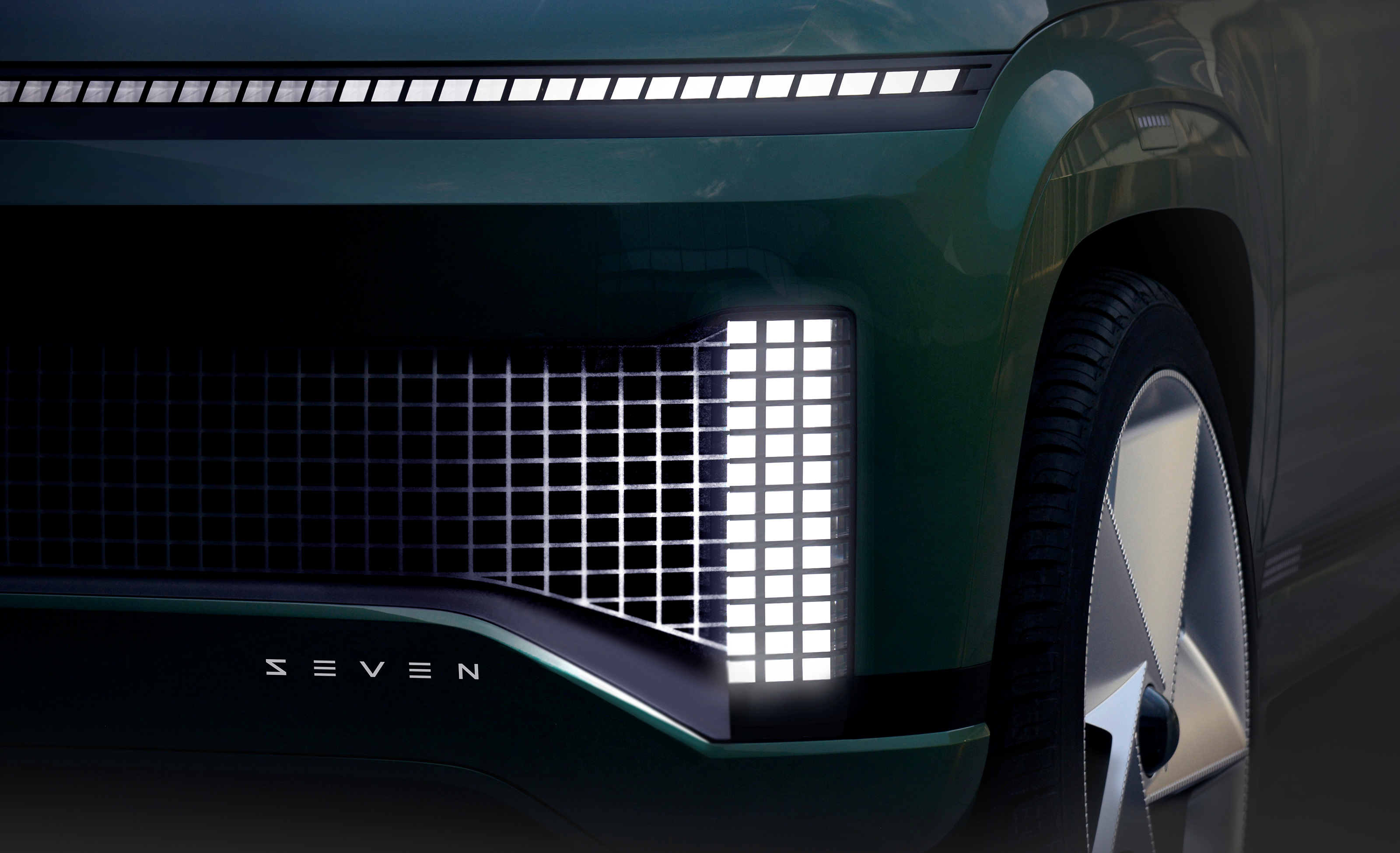 세븐은 2019년 ‘45’, 2020년 ‘프로페시’ 콘셉트카에 이어 전용 전기차 브랜드 아이오닉의 세번째 도약을 알리는 콘셉트카로, 대형 SUV 전기차 비전을 제시하는 모델이다.