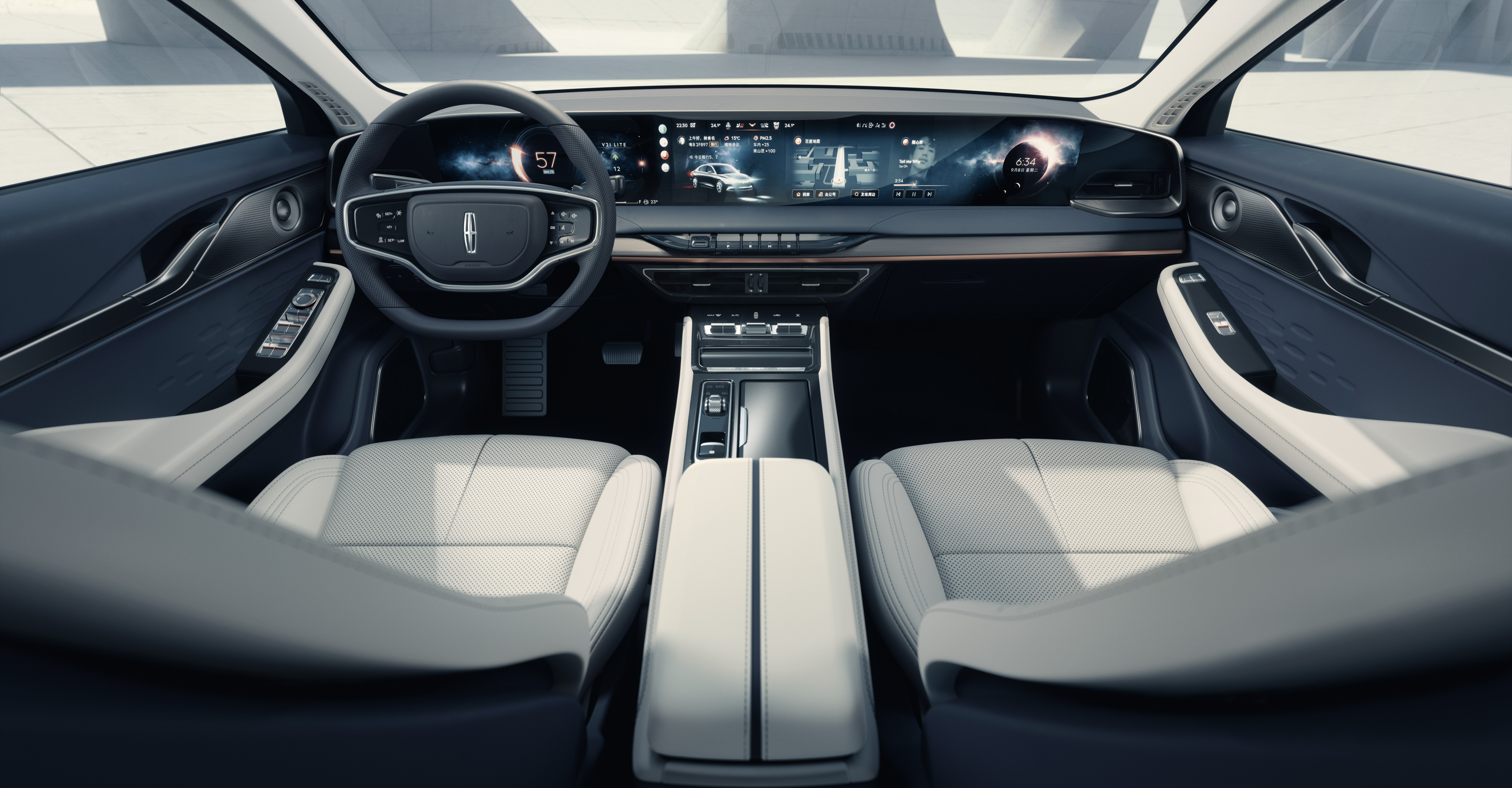 실내는 디지털의 향연입니다. 12.3인치 풀 컬러 디지털 클러스터와 함께 27인치 가로형 모니터가 대시보드의 대부분을 장식하고 있습니다. 중국 특화를 거친 싱크 플러스 인포테인먼트 시스템과 레벨2 + 수준의 자율주행 기술도 담았네요.