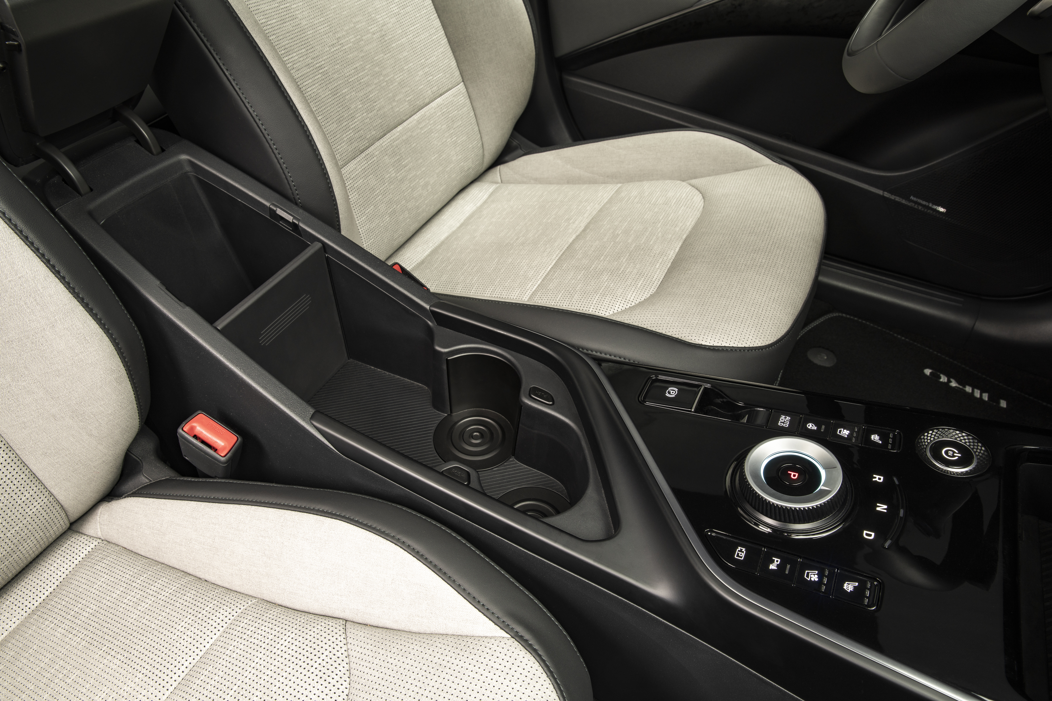 아울러 대시보드에서 도어트림으로 이어지는 대각선 사이에 와이드한 디스플레이를 배치하고 모던한 하이글로시 블랙 소재의 센터 콘솔에 전자식 변속 다이얼(SBW)을 조화시켜 하이테크한 이미지를 구현했다.