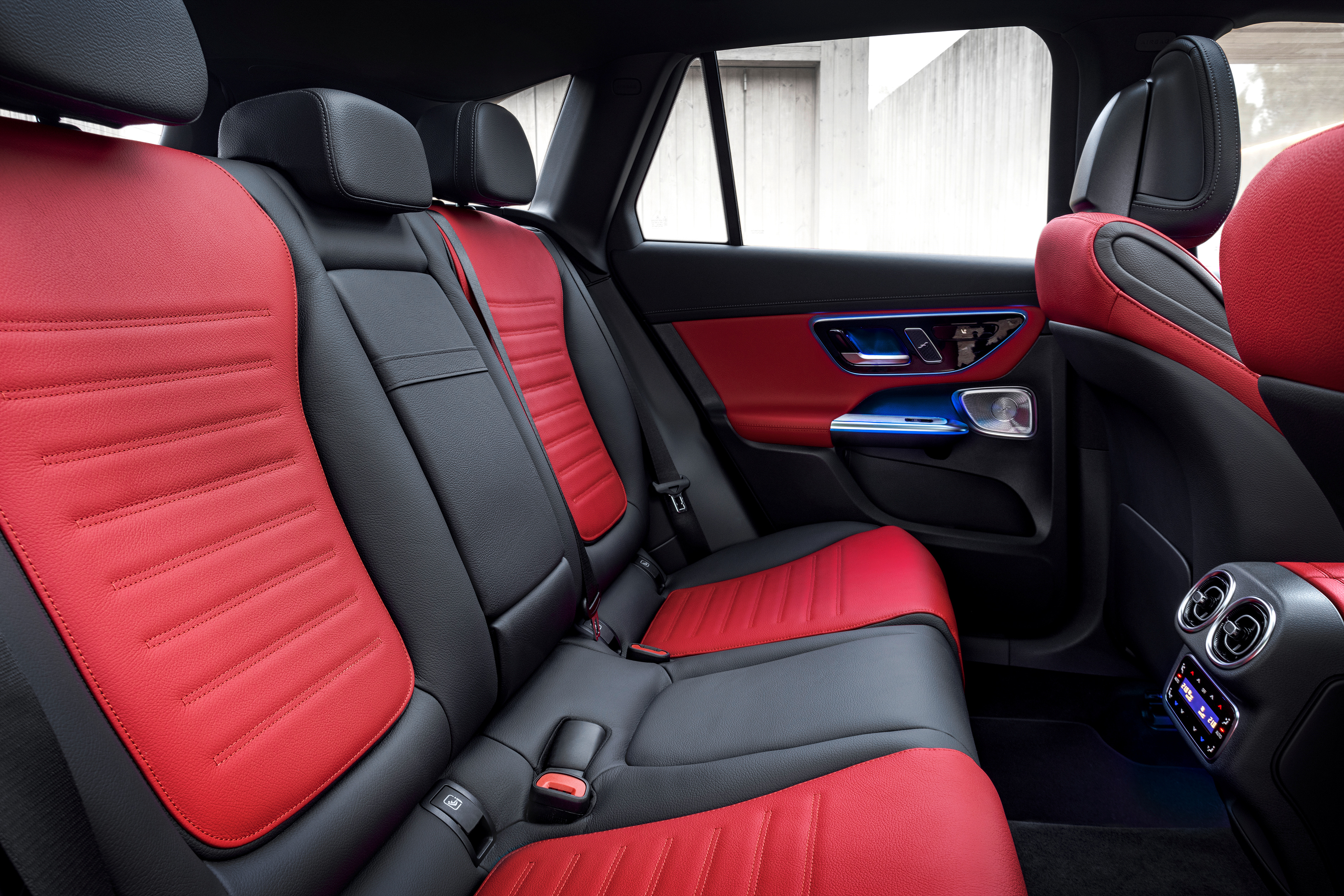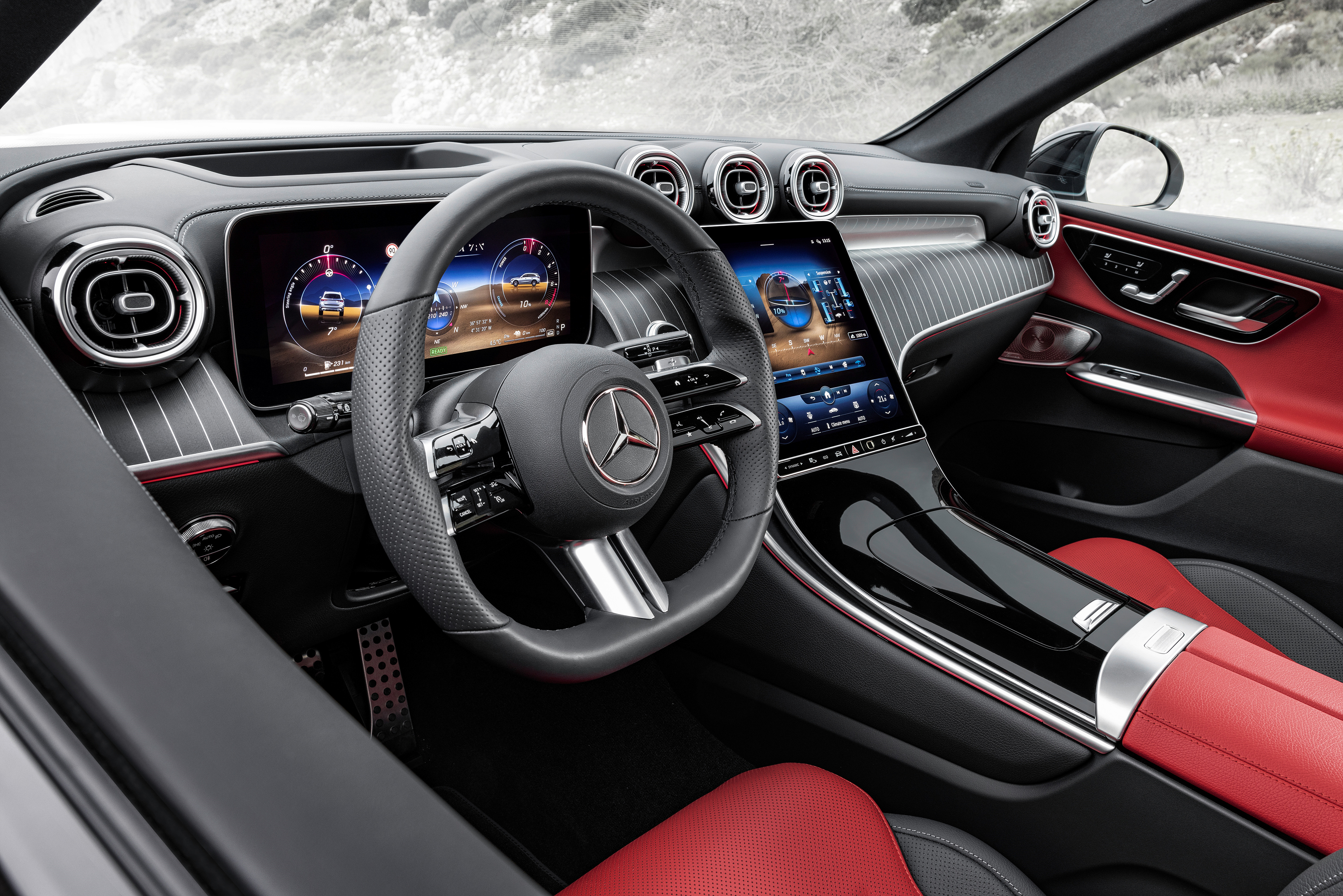 더 뉴 GLC의 인테리어는 모던하고, 스포티한 럭셔리의 실내 분위기를 구현해냈다. 대시보드의 상부에는 날개 모양의 프로필과 항공기의 엔진 덮개인 나셀(nacelle)을 연상시키는 모양의 통풍구가 위치해 있으며, 센터 콘솔의 형태는 운전석 쪽으로 살짝 기울어져 있다. 운전석에는 12.3 인치 고해상도 LCD 스크린이, 중앙에는 11.9 인치의 디스플레이 화면이 자리 잡고 있으며, 음악 스트리밍, 뉴스플래시(newsflash) 기능이 추가된 메르세데스-벤츠의 차세대 인포테인먼트 시스템 MBUX가 탑재되어 직관적이고 디지털화된 사용자 경험을 제공한다.