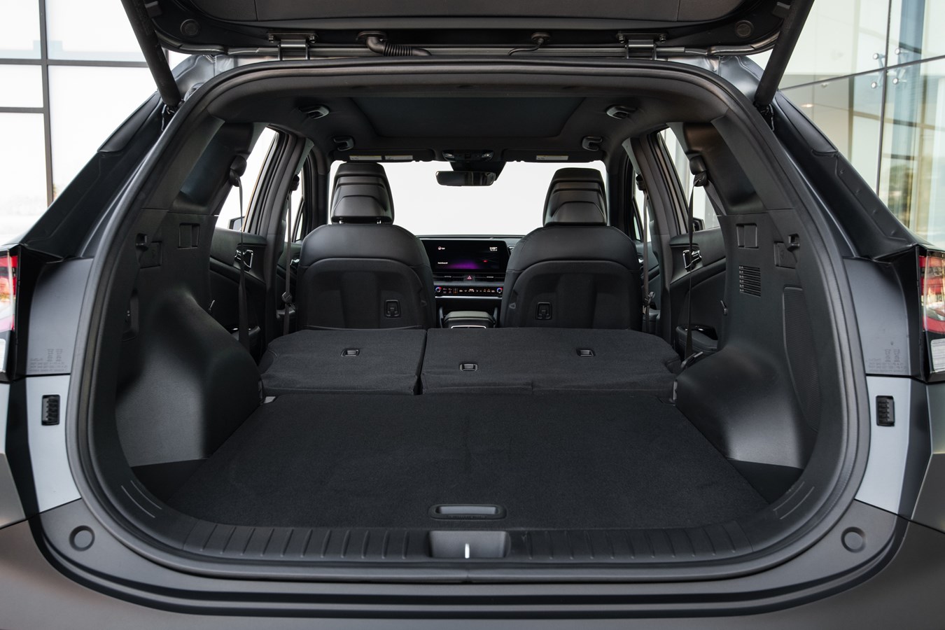 Underpinned by the “N3” platform found in the Sorento, the Sportage PHEV chassis comprises hot-stamped parts and ultra-high-strength steel for increased average tensile strength and torsional stiffness. Sound absorbing and insulating materials minimize road, wind, and engine noise. Like all fifth-generation Sportage models, the 2023 Sportage PHEV is now one of the largest SUVs in its class. With best-in-class rear legroom of 39.5 inches2 and rear cargo capacity of 34.5 cu.-ft., the Sportage PHEV provides rear passengers with space to relax.