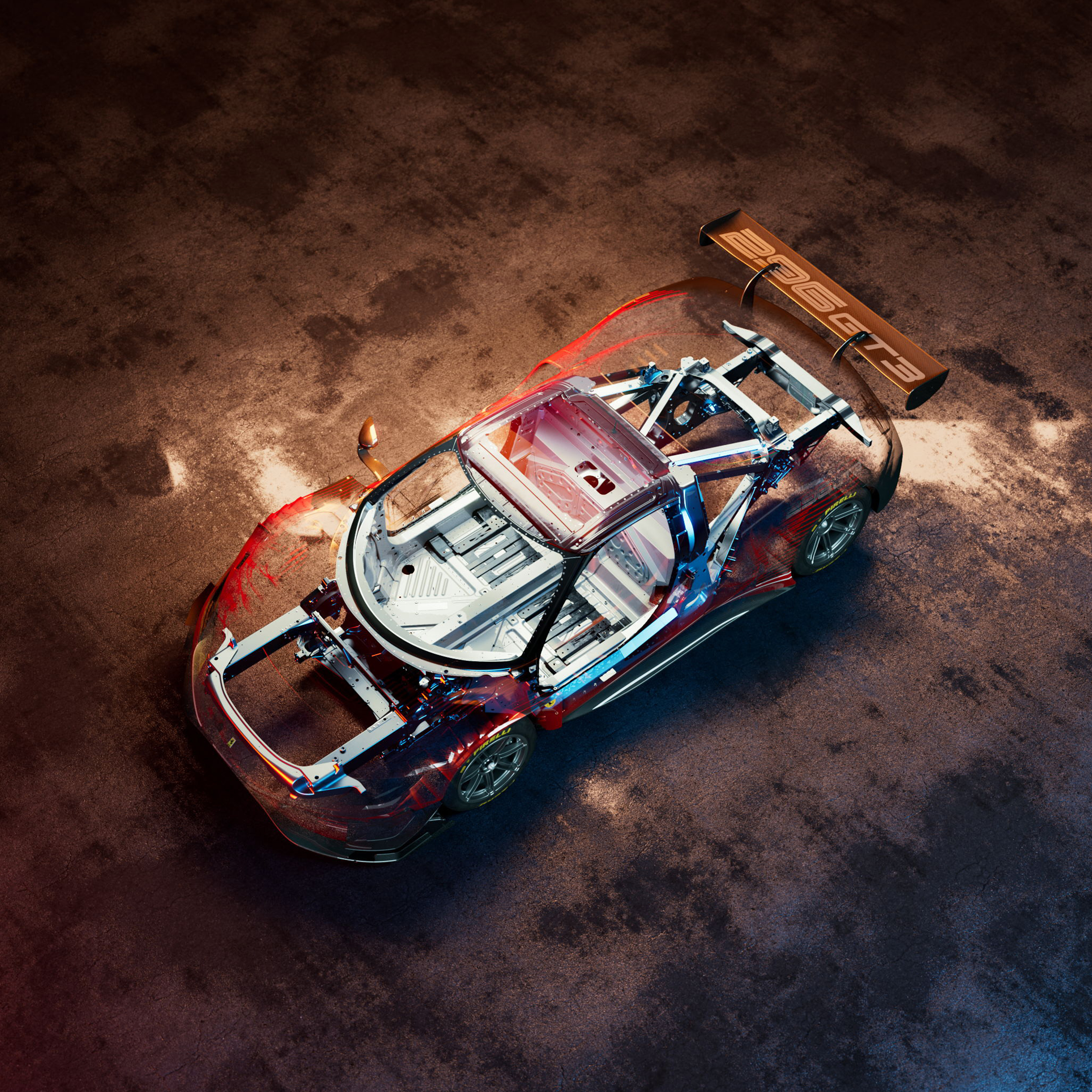 296 GT3의 섀시는 488 GT3의 성능을 그대로 살린 반면, 알루미늄을 사용해 완전히 새롭게 제작되었다. 296 GT3는 운전하기 매우 쉽고 재미있을 뿐 아니라, 타이어의 잠재적인 접지력을 활용할 수 있다. 수차례 랩을 돌아도 타이어가 쉽게 닳지 않아 성능과 반복성에도 도움이 된다. 296 GT3의 섀시는 극단적으로 가벼워져 밸러스트(ballast, 차체의 안정을 위해 바닥에 놓는 무거운 물건)를 보다 효율적으로 관리할 수 있게 됐다. 특히 합금 및 소재에 있어 최고로 정교한 시뮬레이션과 혁신적인 기술 연구를 통해 안전 구조를 보다 세심하게 설계할 수 있었다.