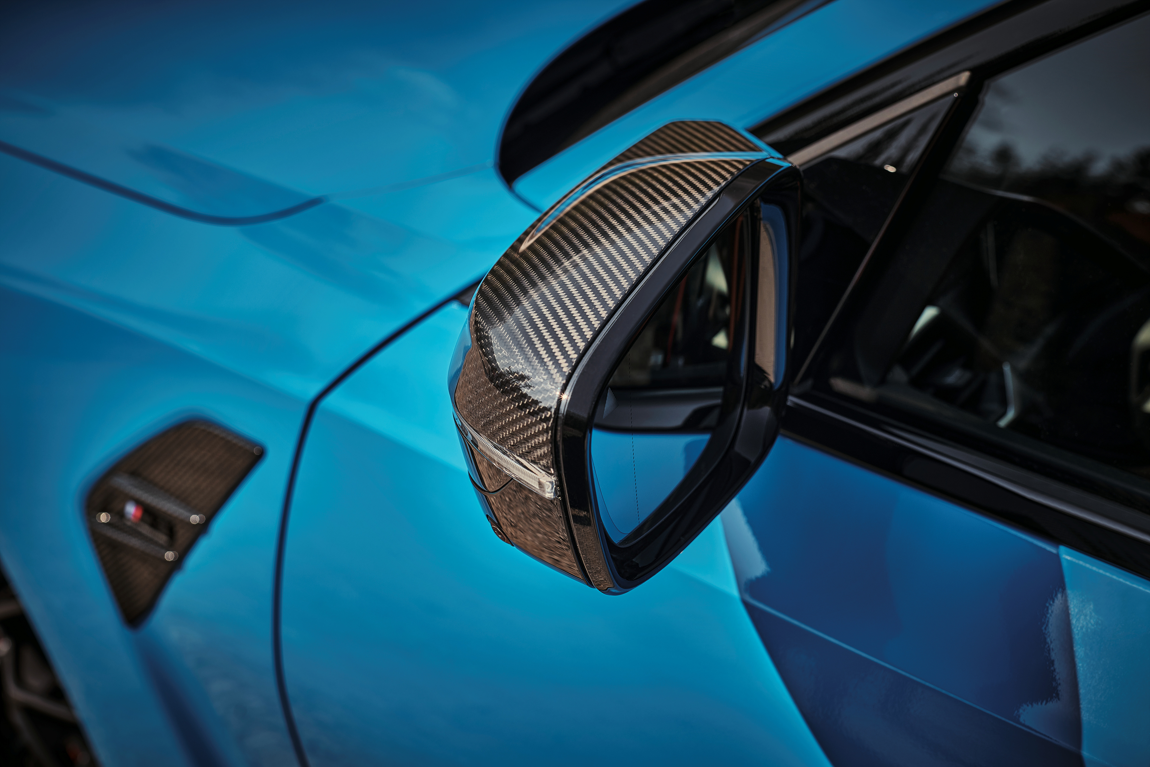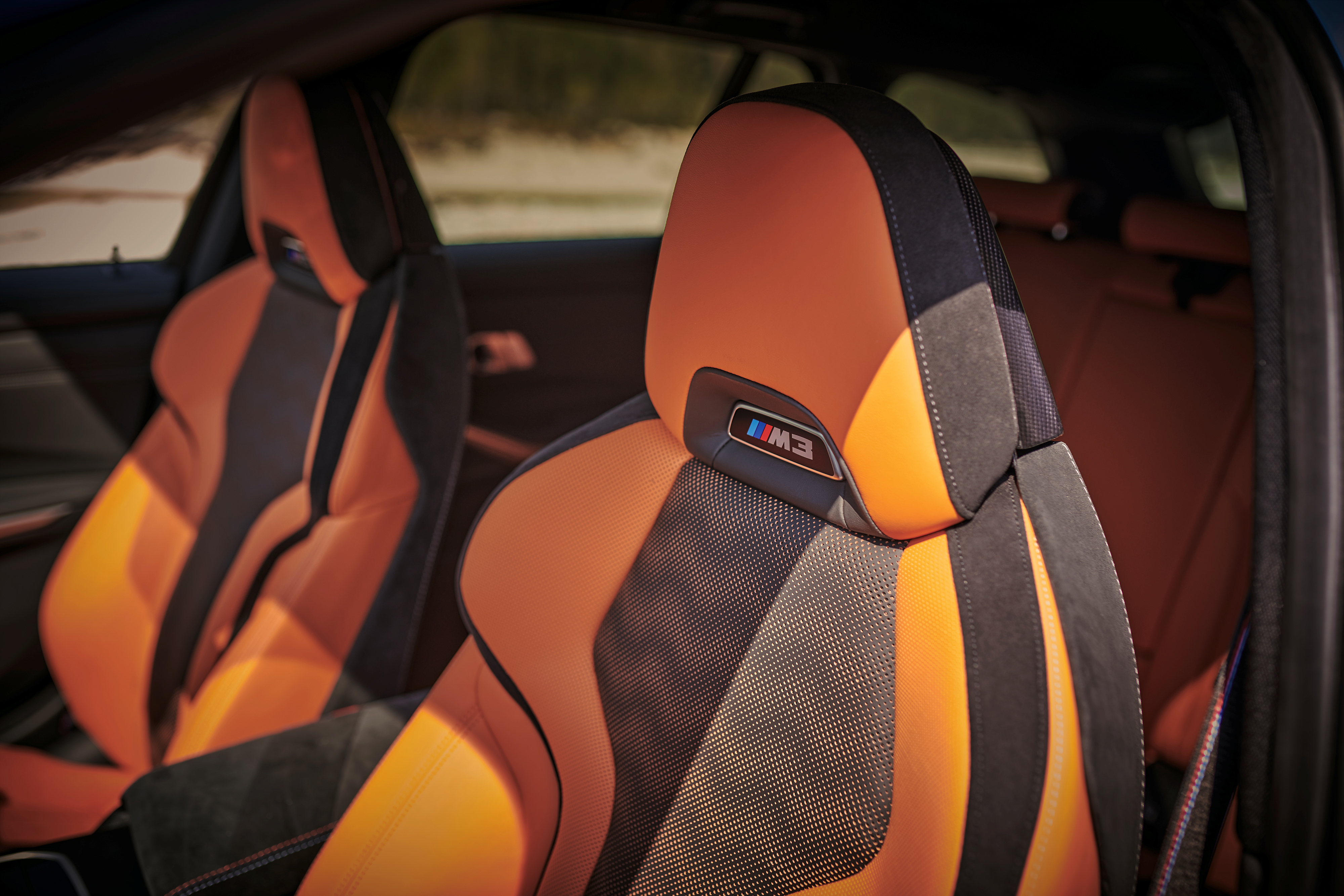 실내는 카본을 더 많이 사용했네요. 시트는 스웨이트를 더해 미끄럼을 줄이도록 했습니다. 곳곳에 M 퍼포먼스 배치를 새기는 것도 잊지 않았네요.