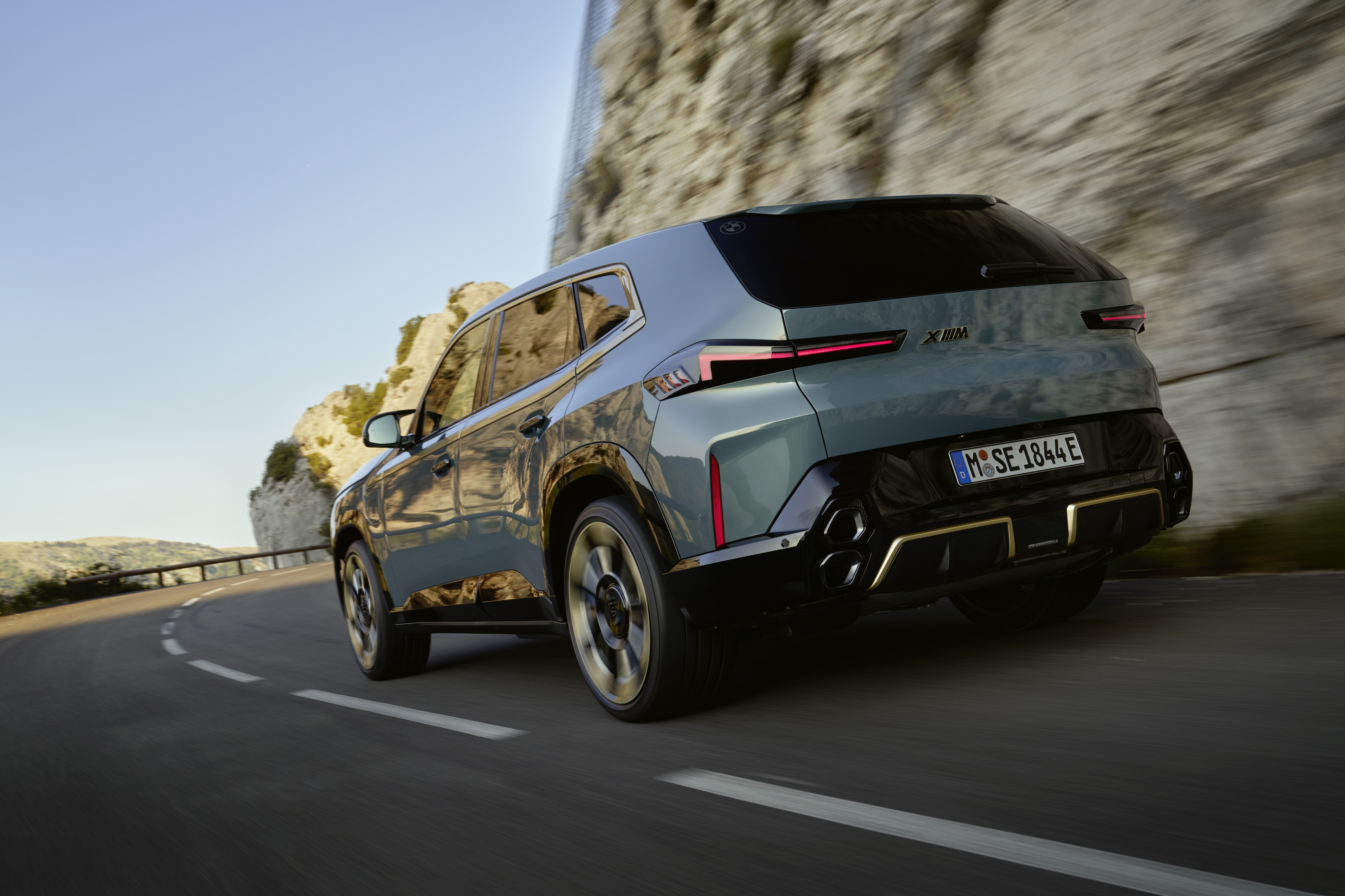 앞면의 분리형 헤드라이트는 금색 테두리 및 윤곽 조명이 반영된 BMW 키드니 그릴, 그리고 큼직한 에어 인테이크와 조화를 이뤄 뉴 XM의 강력한 주행 성능을 표현한다. 옆면을 따라 이어지는 금색 액센트 밴드는 M1의 검은색 스트립을 연상시키며, 뒷유리에 양각으로 새겨진 BMW 로고와 루버 구조(louvred structure)로 이루어진 조각 같은 리어라이트가 클래식한 분위기를 연출한다.