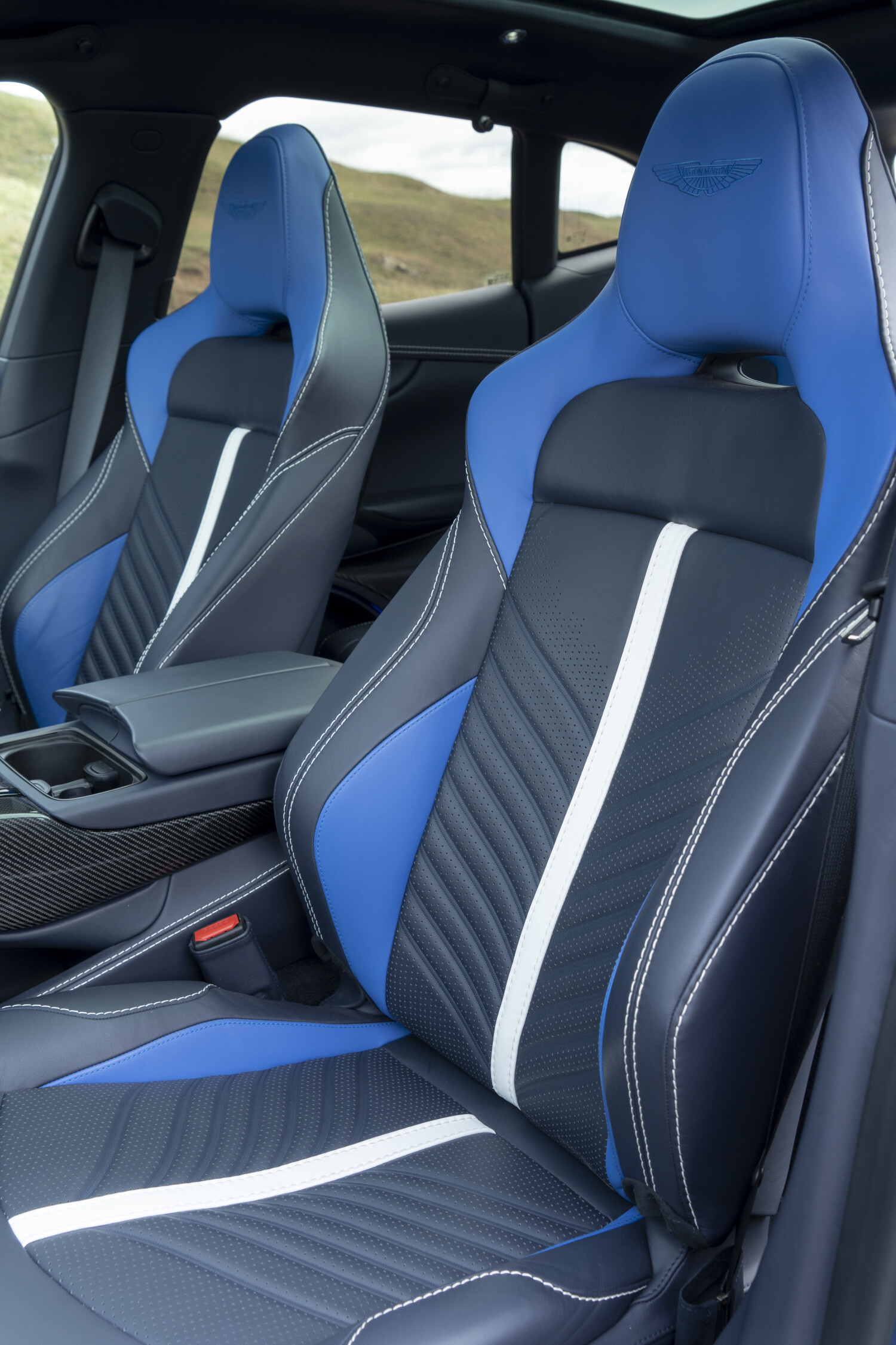 인테리어 역시 럭셔리와 성능의 조화가 특징이다. 인테리어는 다크 크롬 마감이 기본으로 제공되며 다른 색상과 카본 파이버 등 다양한 색상과 소재를 선택할 수 있다. 소프트도어 클로징이 적용된 도어를 열고 실내에 들어서면 스탠다드로 적용된 스포츠 시트가 가장 눈에 띈다. 스포츠 시트는 전체적인 인테리어를 스포츠 테마로 인식시키는 필수 요소이다. 모든 시트는 16방향으로 조정하는 전자식 스위치를 포함한다. 가죽과 알칸타라 등 최고급 소재가 적용됐으며, 머리 받침에 각인된 애스턴마틴 로고 외에 등받이부터 이어지는 스트라이프가 스포티함을 배가시킨다.