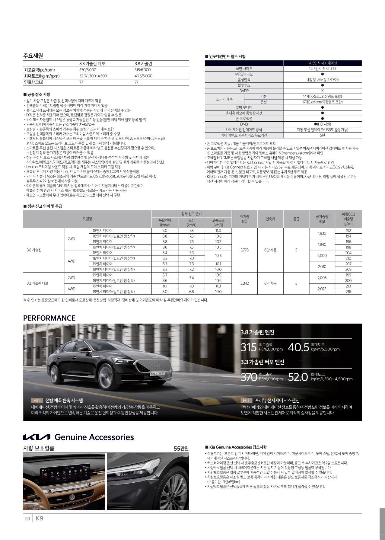 기아는 이번 K9에 신규 사양인 메탈 페달과 차량 내외부의 미세먼지와 세균을 더욱 효과적으로 걸러주는 항균 처리 고성능 콤비 필터를 전 트림에 기본화해 고객 만족도를 높였다.