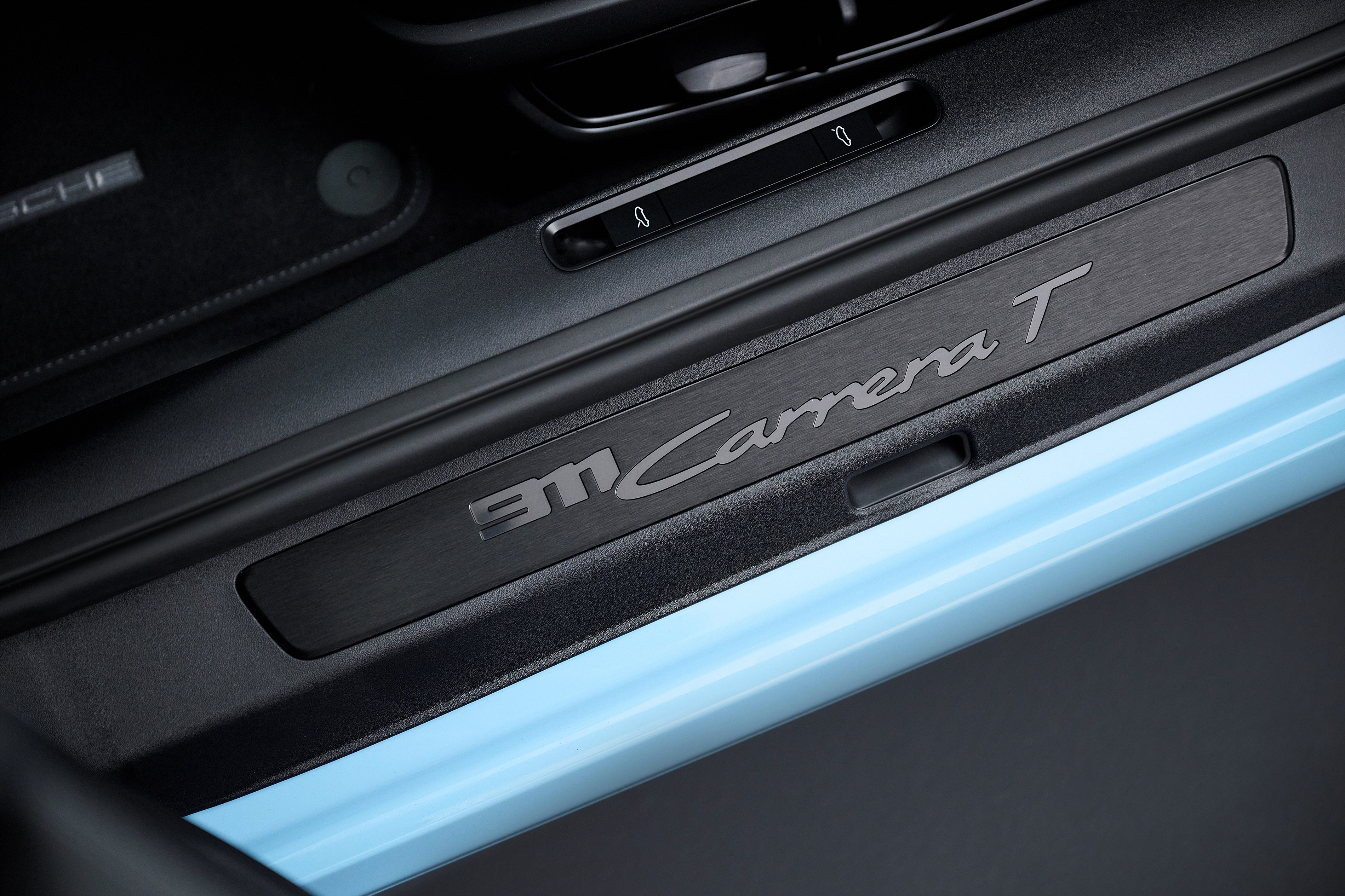 인테리어는 기본 사양의 4방향 스포츠 시트 플러스(Sports Seats Plus)로 스포티한 모습을 더욱 강조한다. 매트 블랙 트림과 고광택 블랙 컬러 인레이로 인테리어를 완성했으며, 한층 더 차별화된 제품을 원하는 고객은 카레라 T 인테리어 패키지를 옵션으로 선택할 수 있다. 슬레이트 그레이(Slate Grey) 또는 리자드 그린 (Lizard Green)의 대조되는 컬러를 안전벨트와 스티칭, 헤드레스트의 911 로고, 시트 중앙의 스트라이프 패턴에 적용할 수 있다. 바닥 매트도 대조적인 리자드 그린과 슬레이트 그레이 컬러를 적용한 로고 및 스티칭 옵션을 제공한다.