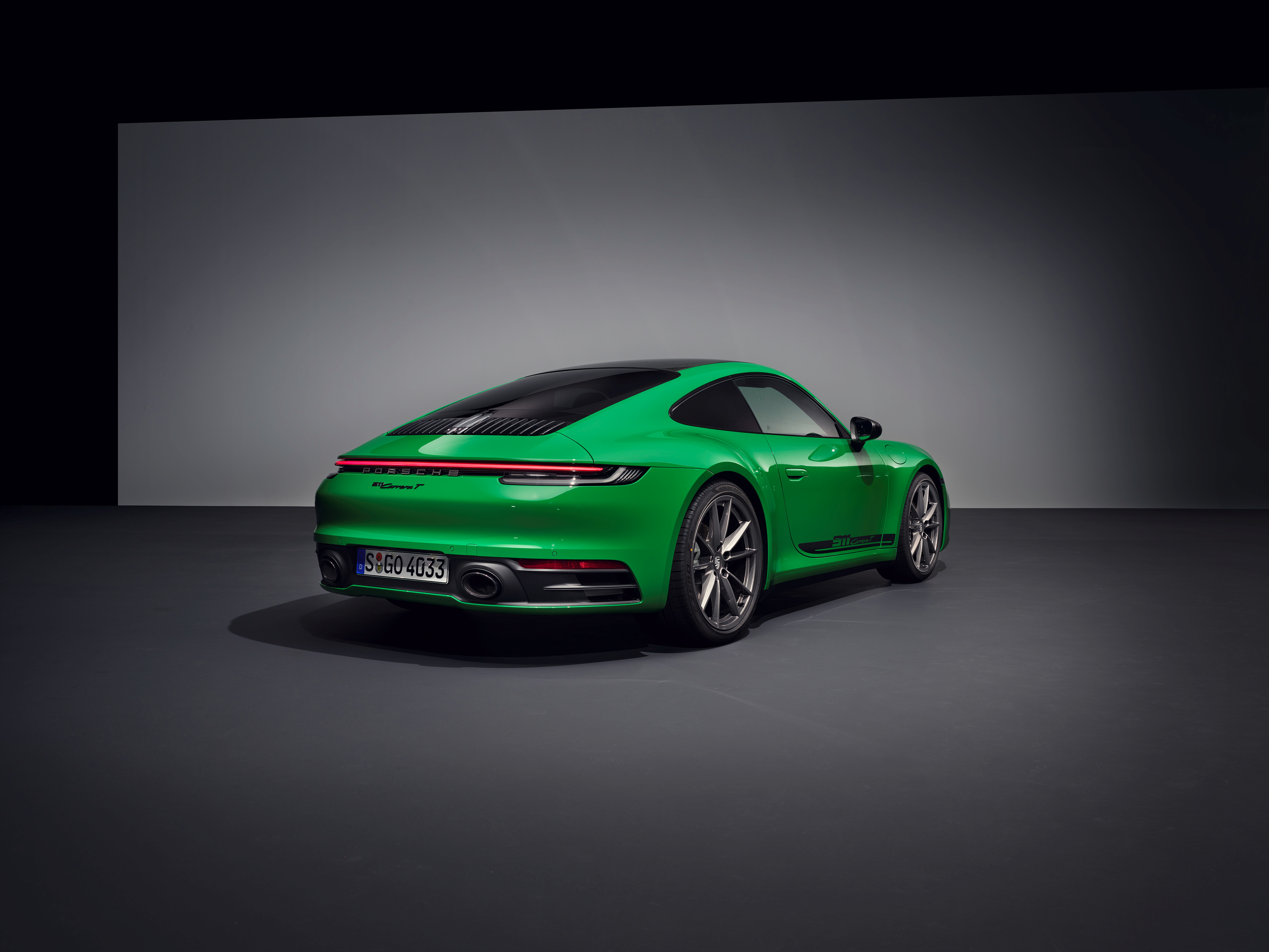 다크 그레이 컬러로 강조된 911 카레라 T 외관은 다른 911 카레라 모델과 차별화 된다. 사이드 미러의 상단과 하단 트림, 새로운 도어 로고와 리어 로고, 리어 리드 그릴의 트림 스트립은 아게이트 그레이 컬러로 대조를 이룬다. 윈드스크린은 그레이 컬러 탑 틴트가 특징이며, 스포츠 배기 시스템 테일파이프는 고광택 블랙 컬러로 마감된다. 이를 통해 911 카레라 T의 더욱 외향적이고 다이내믹한 외관을 완성한다.