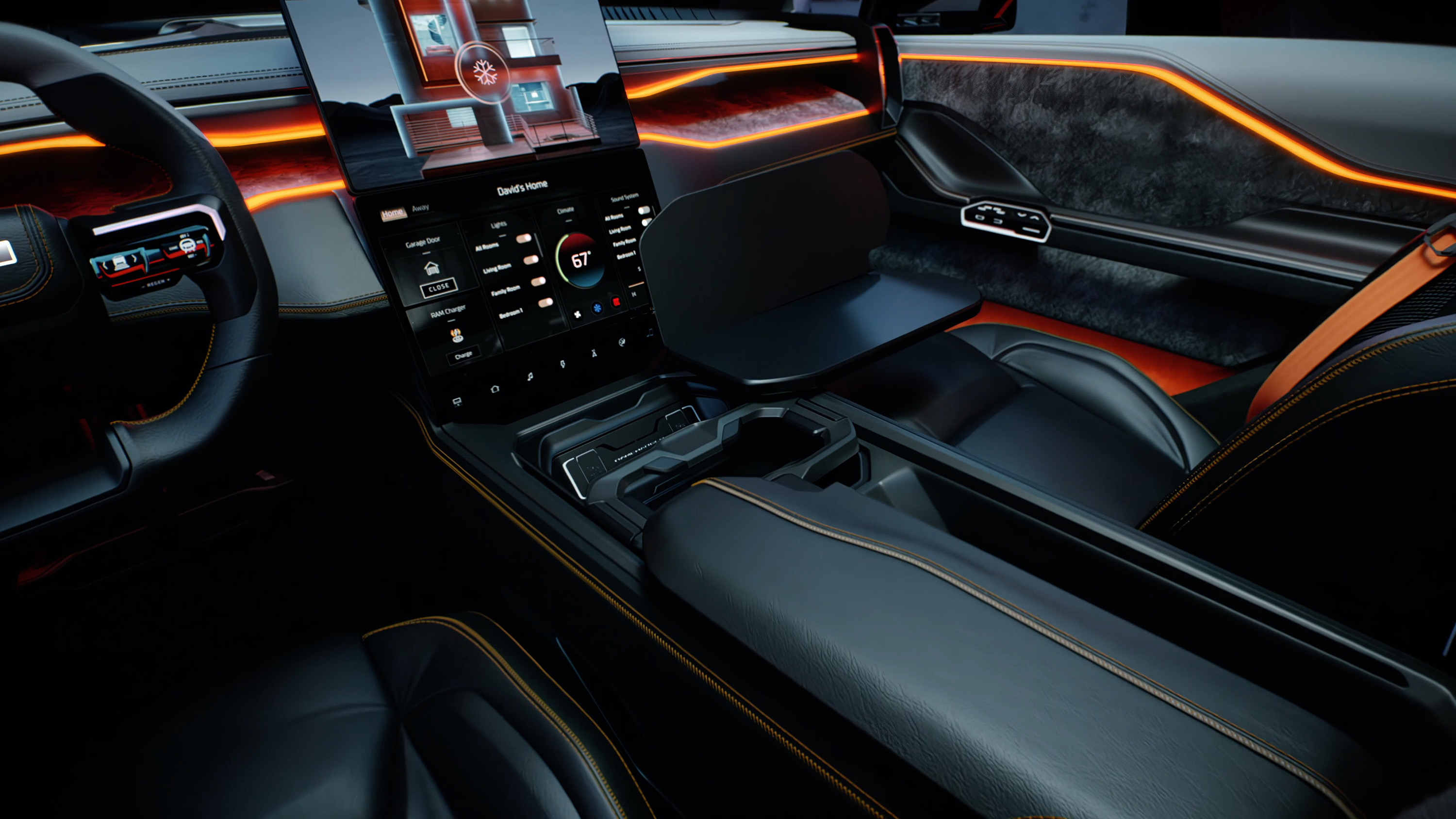 Ram의 디자인 팀은 모든 승객에게 디지털 라이프와 매끄럽게 연결되는 개인화되고 개인화된 경험을 제공하는 아이디어를 선보이고 싶었습니다.인공지능과 사용자가 어디서든 일하고 놀 수 있는 자율성도 초점이었다.