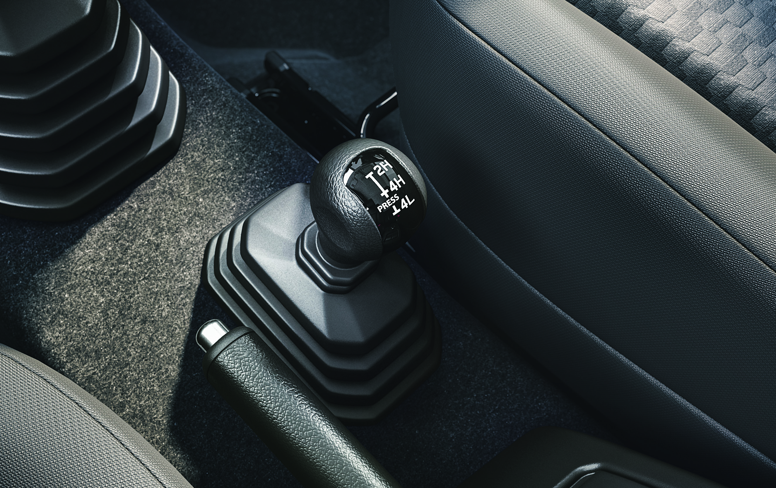 구동 방식은 파트타임 4WD입니다. 시에라와 마찬가지로 수동식 레버로 선택할 수 있고 브레이크 방식으로 미끄러지는 바퀴를 감궈 LSD 역할을 하는 트랙션 컨트롤 시스템을 장착했습니다.