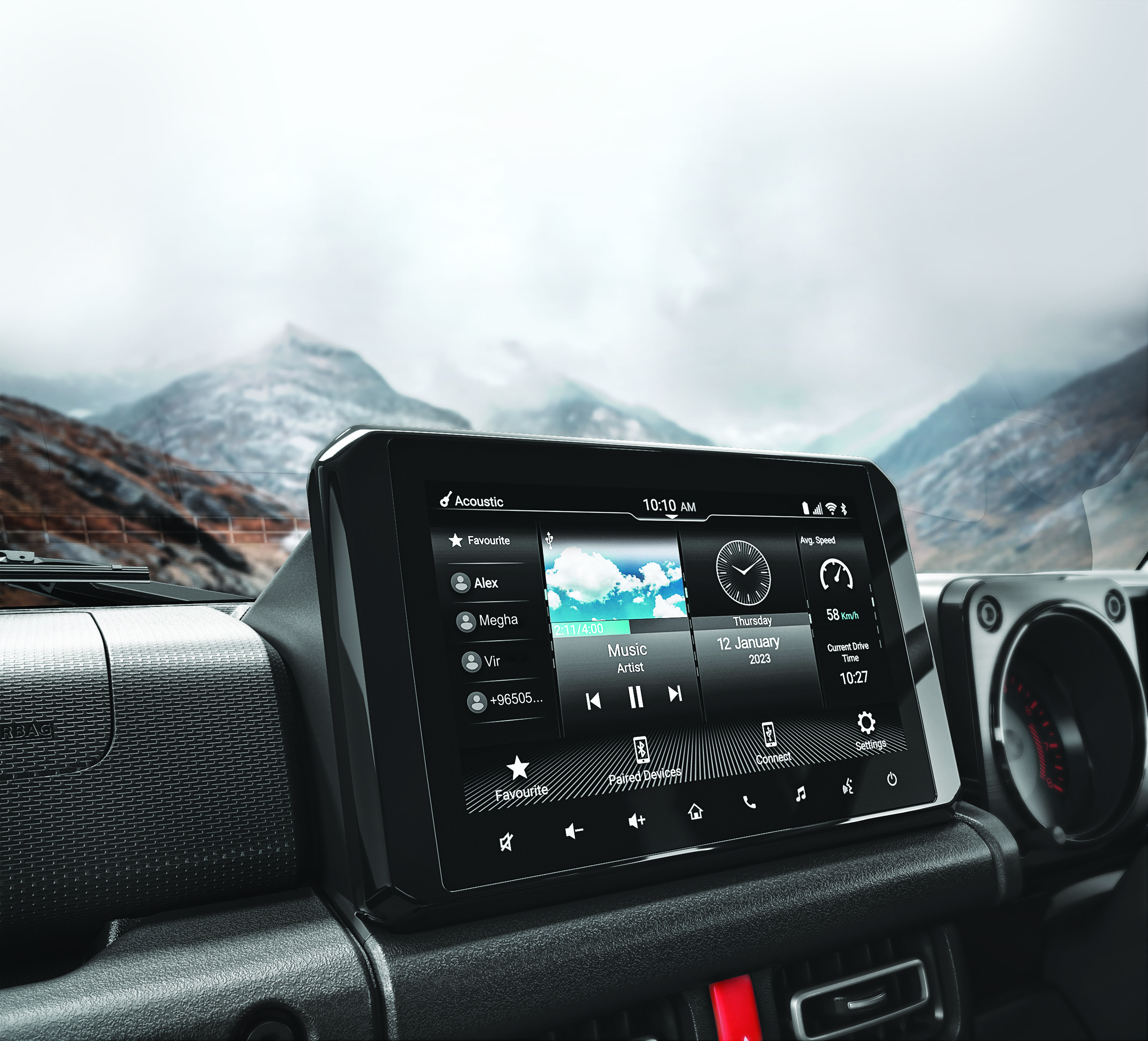 파워트레인은 인도형 기준으로 K15B형 1.5리터 직렬 4기통 104마력 엔진과 5단 수동(4단 자동은 옵션)을 짝지었습니다. 시에라와 큰 차이는 없고 늘어난 무게를 감안해서 기어비를 변경했다고 하네요.