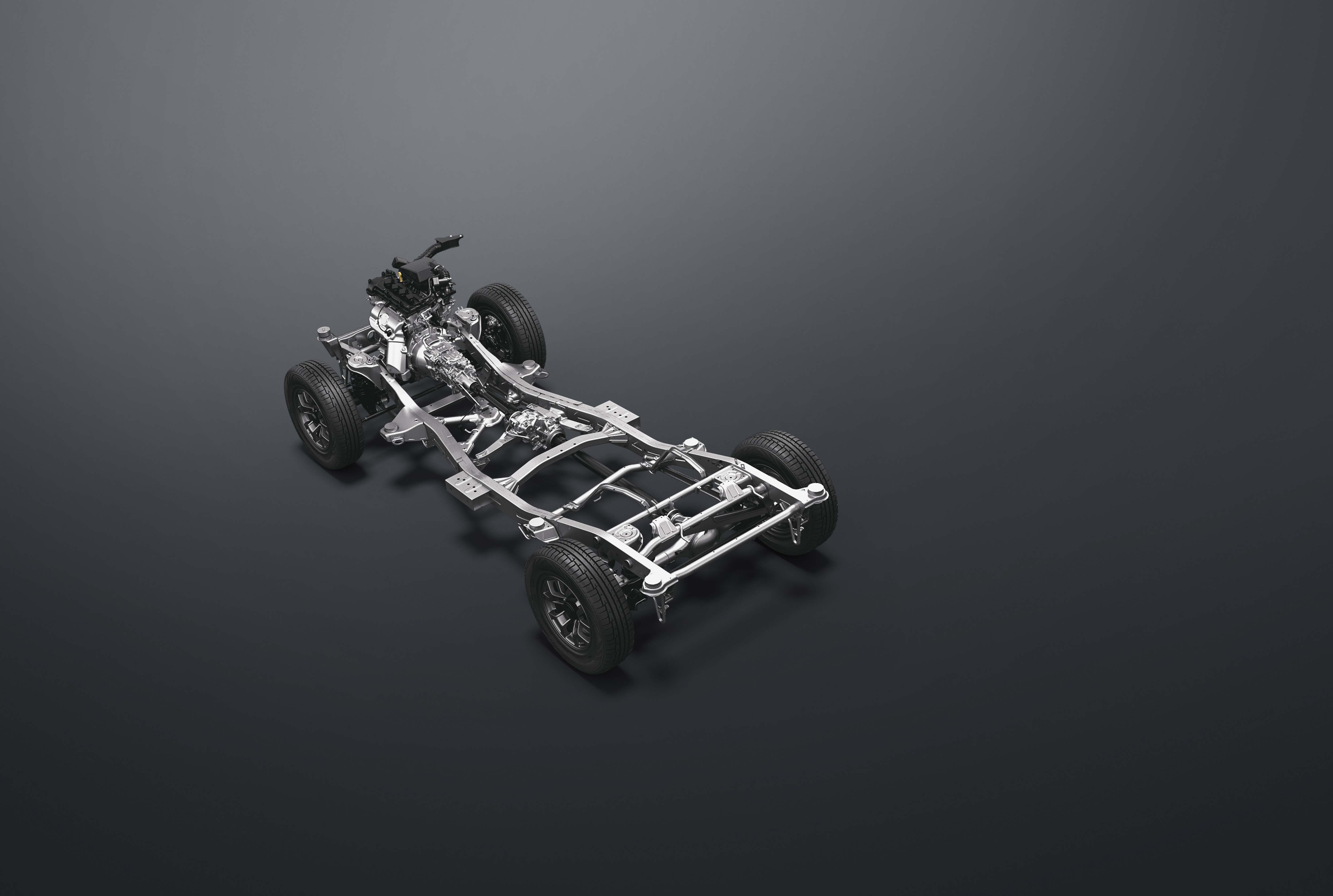 디자인의 큰 틀은 변함 없습니다. 앞뒤에서 보면 3도어와 구분하기 어려울 정도죠. 하지만 옆에서 보면 금방 티가 납니다. 전체 길이, 휠베이스 모두 340mm나 늘었습니다. 전폭은 짐니 시에라와 같고, 높이는 시에라보다 10mm 낮은 1,720mm가 되었습니다. 레더 프레임 구조는 긴 차체를 고려해 새로운 크로스 멤버를 붙여 보강했고, 앞뒤 모두 리지트 액슬식의 서스펜션을 유지했습니다.