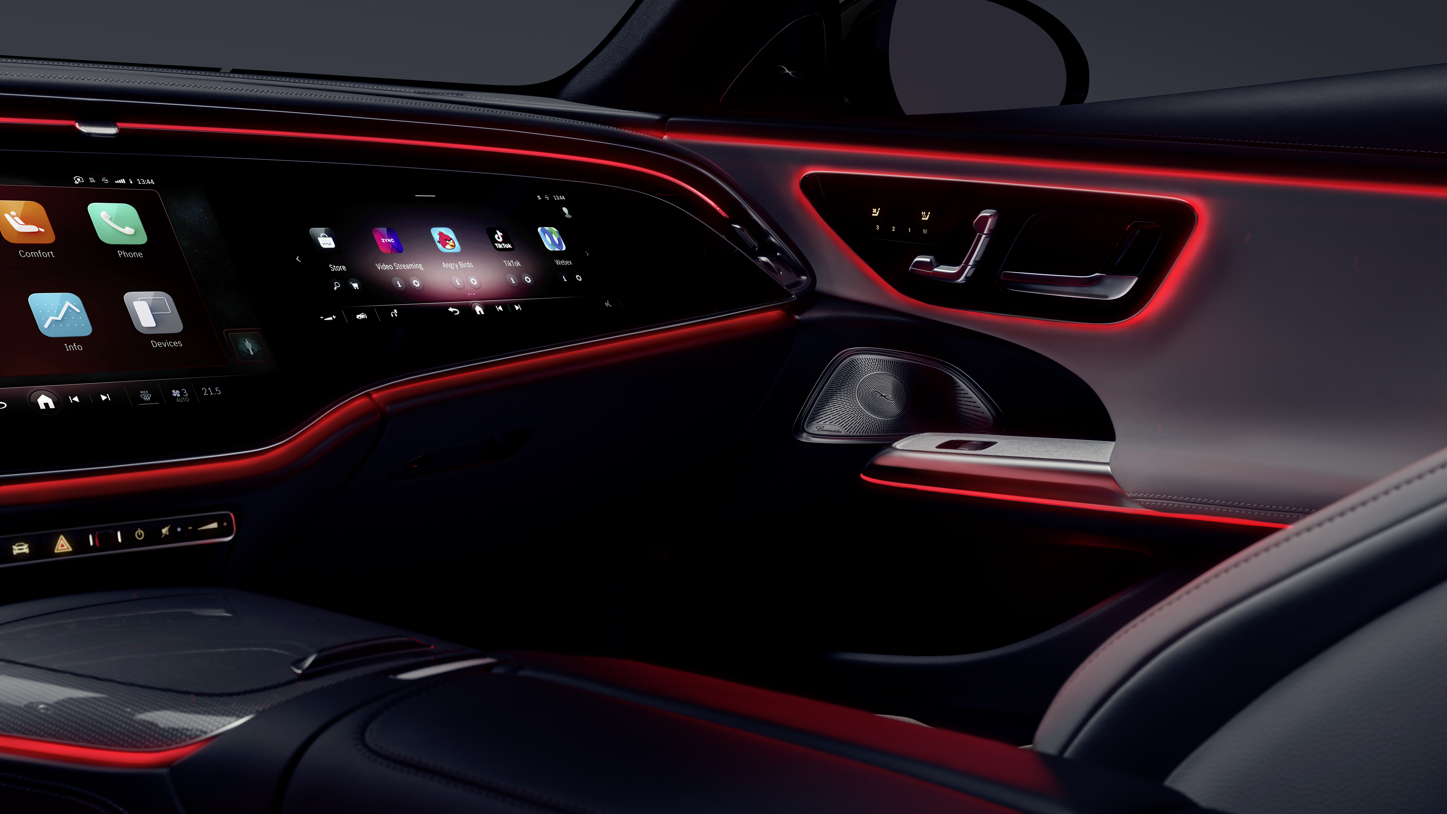 E-Class의 엔터테인먼트 프로그램은 그 어느 때보다 인터랙티브합니다. 메르세데스-벤츠의 소프트웨어 전문가들은 타사 앱을 설치할 수 있는 새로운 호환성 계층을 개발했습니다[4]. 더 뉴 E-클래스[5] 출시와 함께 중앙 디스플레이에서 엔터테인먼트 플랫폼 "TikTok", 게임 "Angry Birds", 협업 애플리케이션 "Webex", 오피스 애플리케이션 "Zoom", 브라우저 "Vivaldi" 등의 앱을 사용할 수 있습니다. 또한 ZYNC 엔터테인먼트 포털[6](선택 사항)은 하나의 사용자 인터페이스를 통해 중앙 및 조수석 디스플레이에서 비디오 스트리밍, 주문형 콘텐츠, 인터랙티브 경험, 지역 비디오 프로그램, 스포츠, 뉴스, 게임 등을 다양하게 제공합니다.