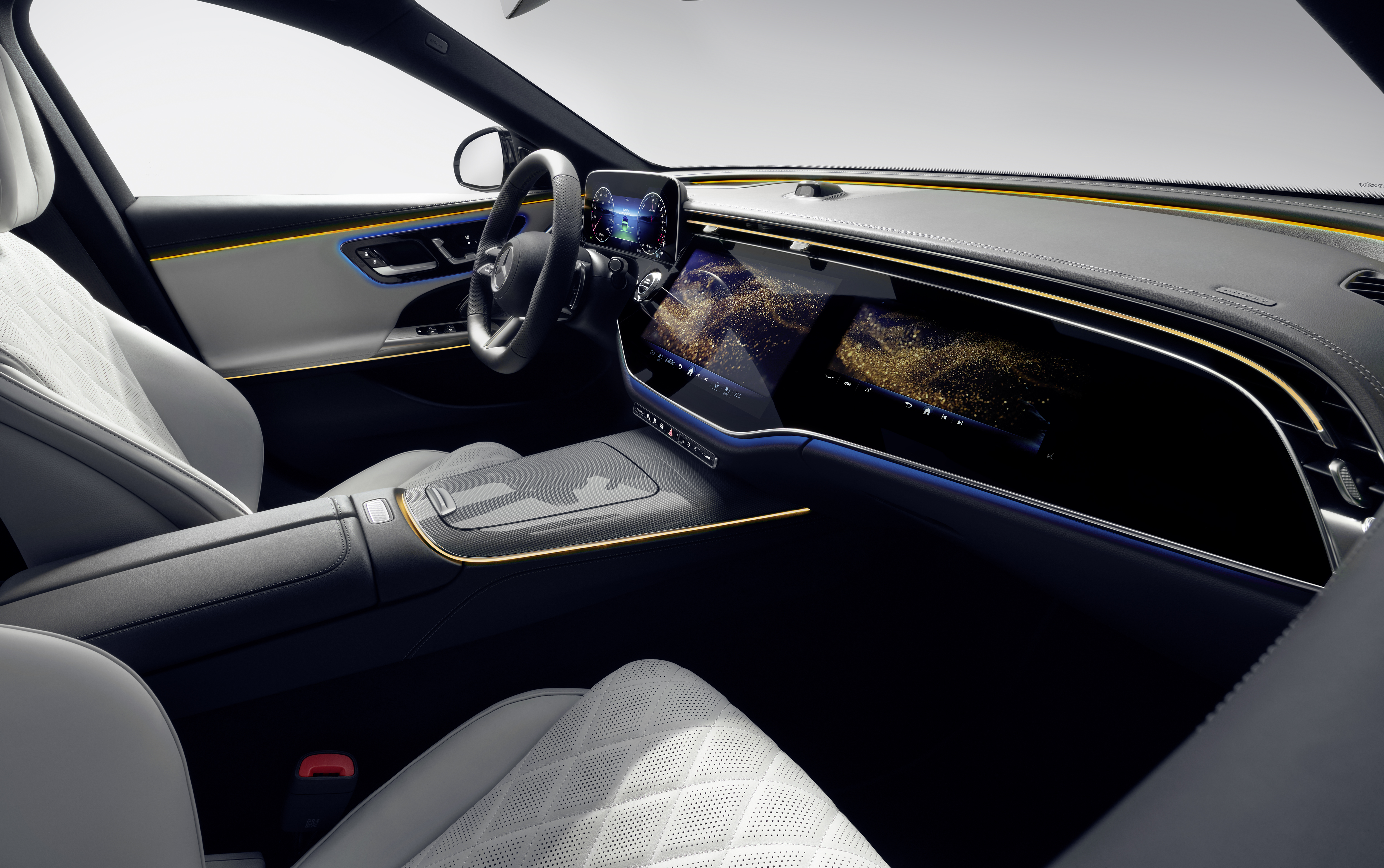 더 뉴 E-클래스에서 특히 몰입감 넘치는 엔터테인먼트 경험을 기대할 수 있습니다. 음악, 게임, 스트리밍 콘텐츠를 차 안에서 거의 모든 감각으로 경험할 수 있습니다. 인테리어의 디지털 혁신 덕분에 E-Class는 이제 더욱 지능화되어 새로운 차원의 개인화 및 상호 작용을 실현합니다. 동시에, 전자 아키텍처는 하드웨어 중심이 아닌 소프트웨어 중심입니다. 이는 향후 인테리어 시스템을 개별적으로 업데이트할 수 있는 기반이 됩니다.