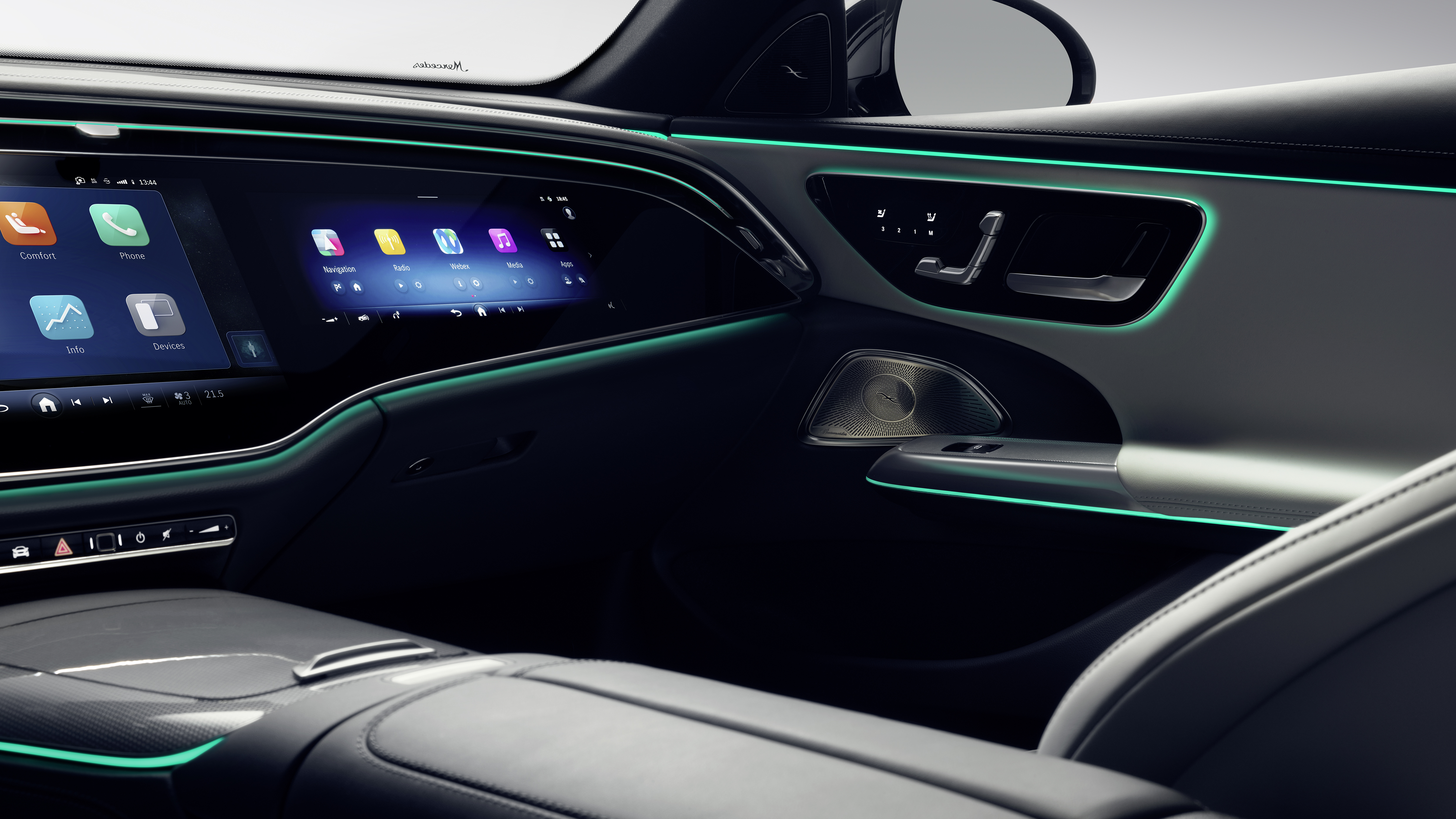 더 뉴 E-클래스에서 특히 몰입감 넘치는 엔터테인먼트 경험을 기대할 수 있습니다. 음악, 게임, 스트리밍 콘텐츠를 차 안에서 거의 모든 감각으로 경험할 수 있습니다. 인테리어의 디지털 혁신 덕분에 E-Class는 이제 더욱 지능화되어 새로운 차원의 개인화 및 상호 작용을 실현합니다. 동시에, 전자 아키텍처는 하드웨어 중심이 아닌 소프트웨어 중심입니다. 이는 향후 인테리어 시스템을 개별적으로 업데이트할 수 있는 기반이 됩니다.