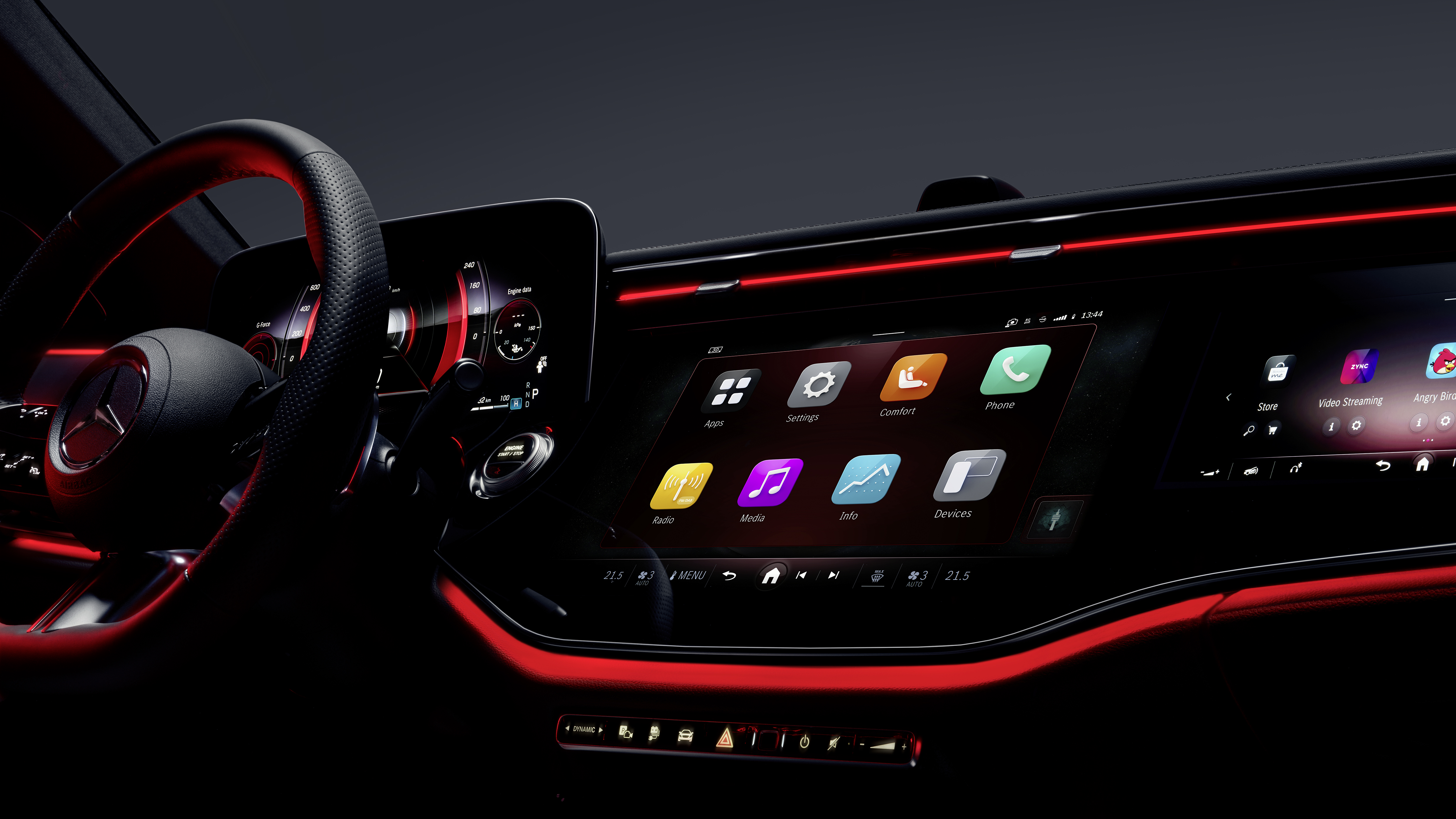 엔터테인먼트 포털 ZYNC도 탑재되어 있습니다. 중앙 및 승객 디스플레이(옵션)의 사용자 인터페이스에서 비디오 스트리밍, 주문형 콘텐츠, 대화형 경험, 지역 비디오 프로그램, 스포츠, 뉴스 등을 제공합니다. 유명 글로벌, 지역 및 로컬 파트너의 30개 이상의 스트리밍 서비스가 이미 제공되고 있으며, 파트너와 채널이 지속적으로 추가되고 있습니다.