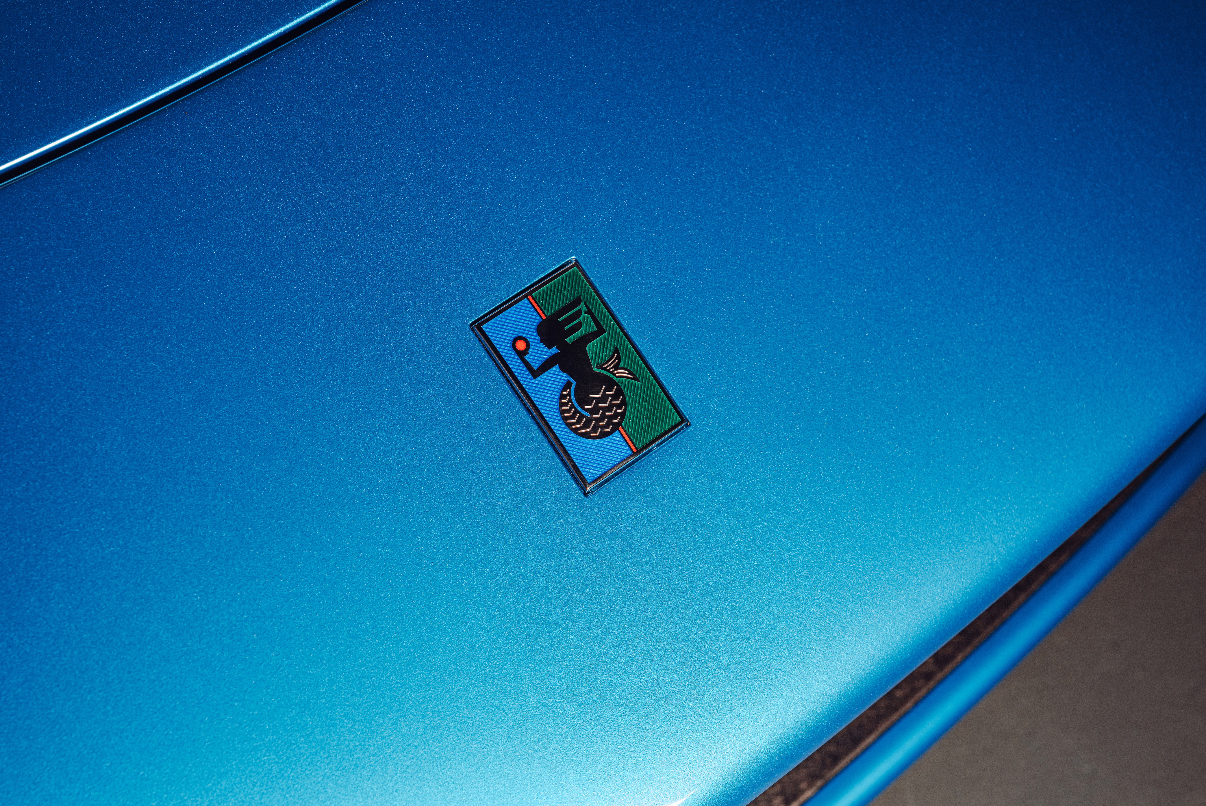 T.33 스파이더와 쿠페를 구분하는 독특한 인테리어 특징 중 하나는 두 좌석 사이의 리어 벌크헤드 트림이 바디 컬러로 처리되었다는 점입니다. 루프 패널이 제거되고 뒷유리가 내려가면서 외부 컬러가 실내로 유입되어 개방감이 미묘하게 향상됩니다.