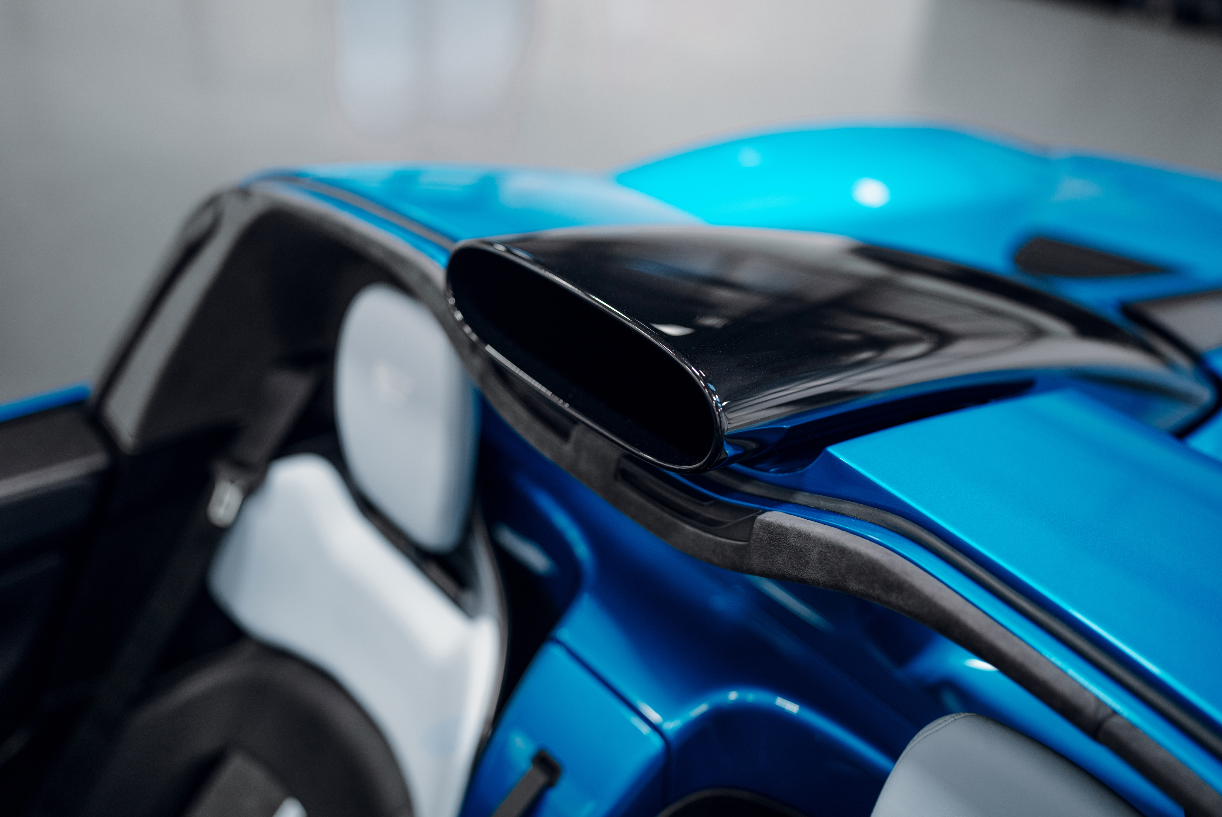 롤오버를 방지하는 루프 고정 후면부는 차체 설계의 필수적인 부분으로, 강성을 최적화하는 동시에 디자인 비전을 실현합니다. 패널을 장착하지 않았을 때 공기저항과 뷔페링을 최소화하도록 세심하게 최적화된 형태로, 스피드스터 차체 스타일에서 흔히 볼 수 있는 시트 뒤의 트윈 '험프'보다 더 유선형 디자인입니다.