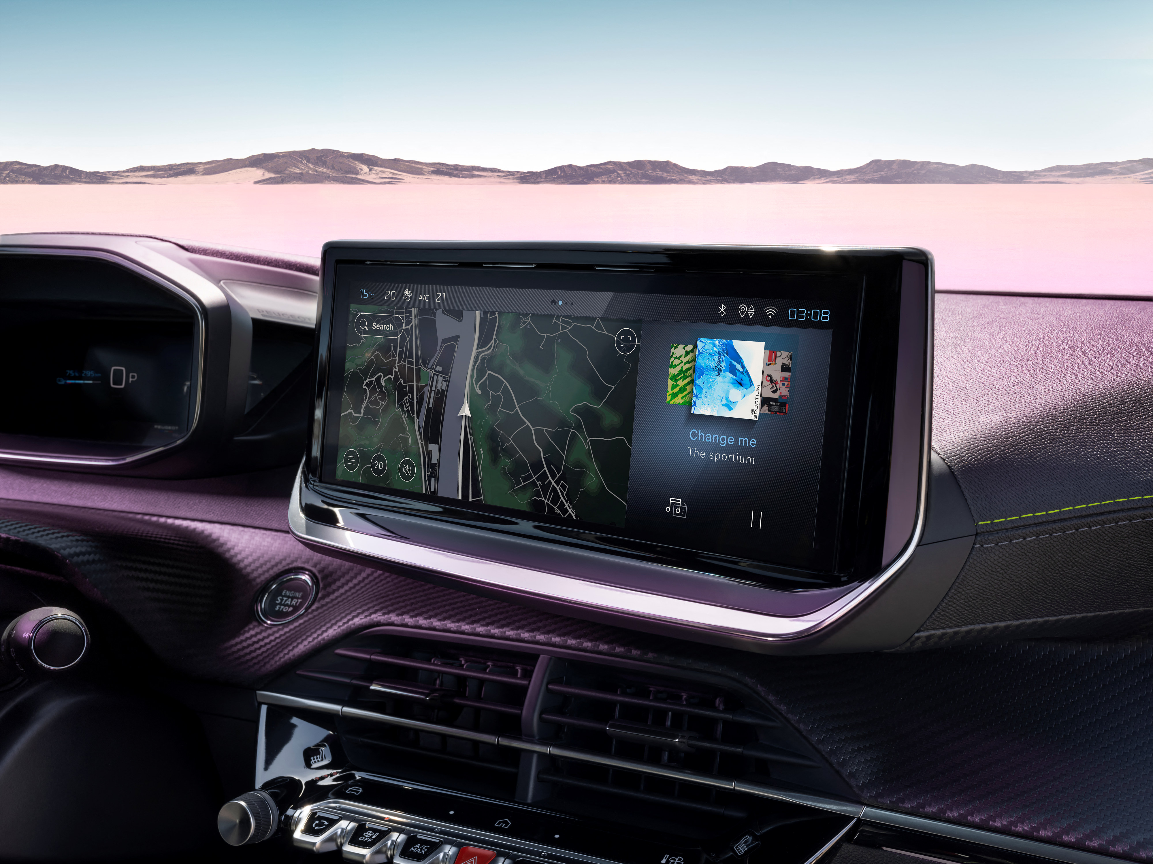 실내는 운전자 중심의 쾌적한 주행 경험을 선사하기 위한 설계가 돋보이는 푸조 고유의 최신 ‘아이-콕핏(i-Cockpit®)을 적용했다. 계기판의 위치를 스티어링 휠 위로 보이게 설계해 주행 중 계기판 정보를 간편하게 확인할 수 있게 해주며, 컴팩트한 스티어링 휠은 운전의 재미를 배가시킨다. 또 10인치 디지털 디스플레이의 색상과 정보 등 레이아웃 등은 운전자 기호에 맞게 설정할 수 있고 10인치 중앙 터치스크린은 모든 트림에 기본 제공된다.