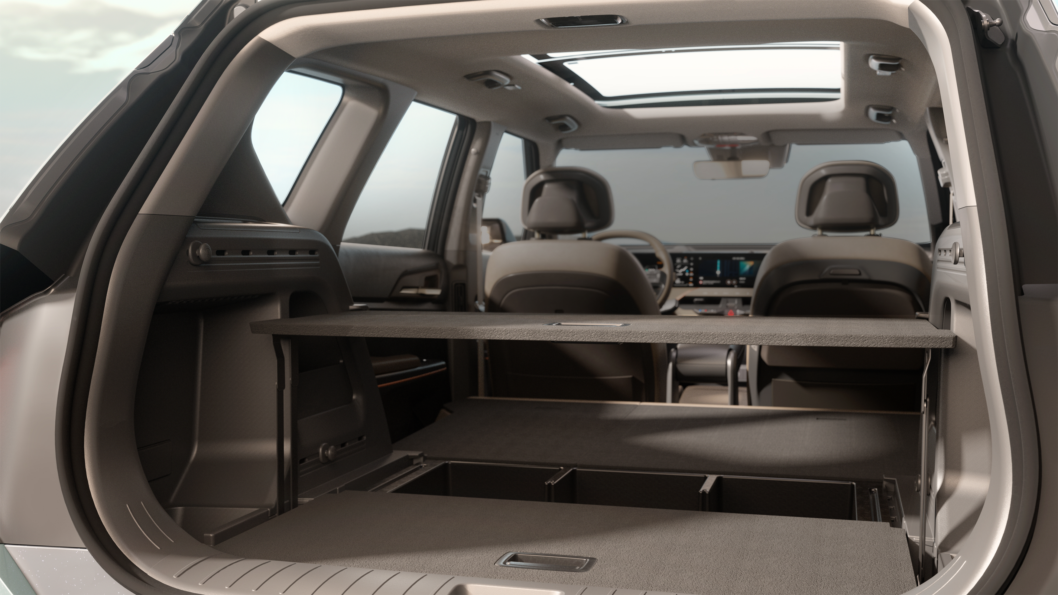아울러 트렁크 바닥에는 가변형 러기지 보드를 구성해 물품 적재 또는 아웃도어 활동 시 트렁크 활용성을 높였다. 앞·뒤 2단으로 구성된 러기지 보드의 앞부분은 반자동 팝업 및 전후 슬라이딩 기능이 적용돼 러기지 보드 하단부 수납 편의성을 높여주고, 캠핑이나 여행 시에는 테이블로도 활용 가능하다.