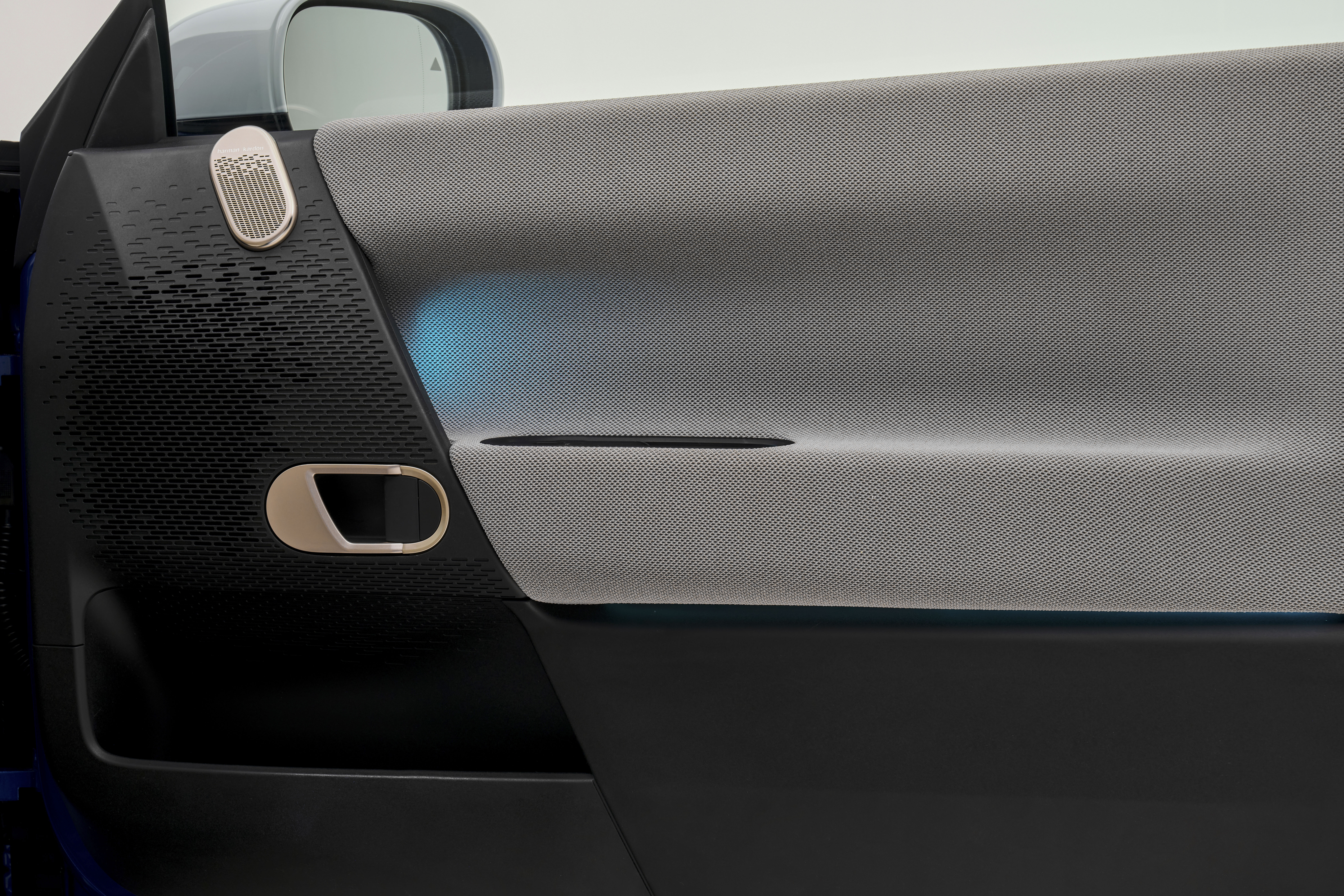 경량화에 초점을 맞춘 인테리어는 6시 방향 스포크에 텍스타일 스트랩이 적용된 새로운 3-스포크 스티어링 휠과 같이 현대적인 색상, 소재 및 디자인 특징을 새롭게 적용했습니다. 대시보드와 도어 패널에도 새롭게 개발된 고품질의 친환경 소재가 사용되었으며, 니트 표면은 재활용 폴리에스터로 제작되어 투톤 디자인이 특징입니다.