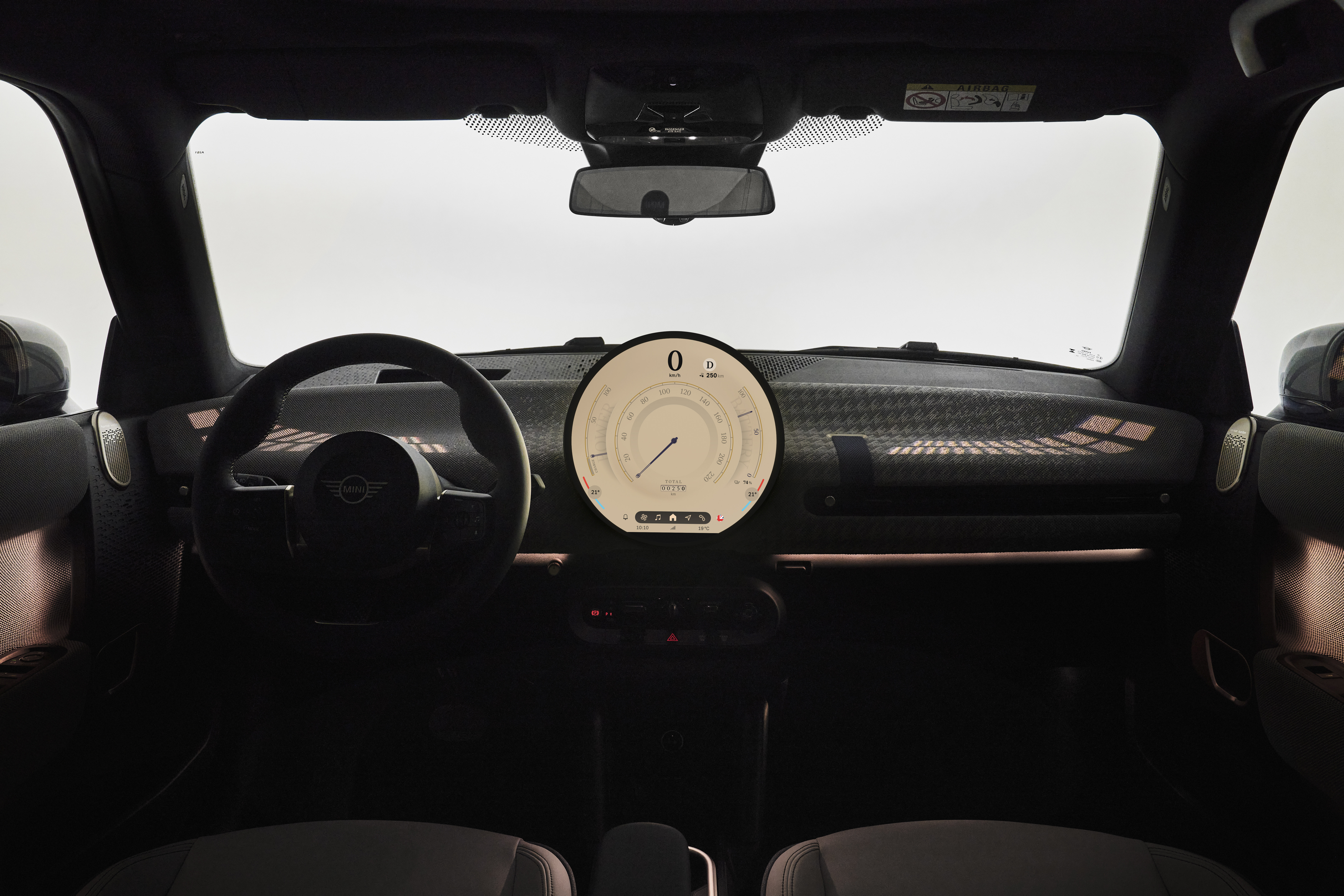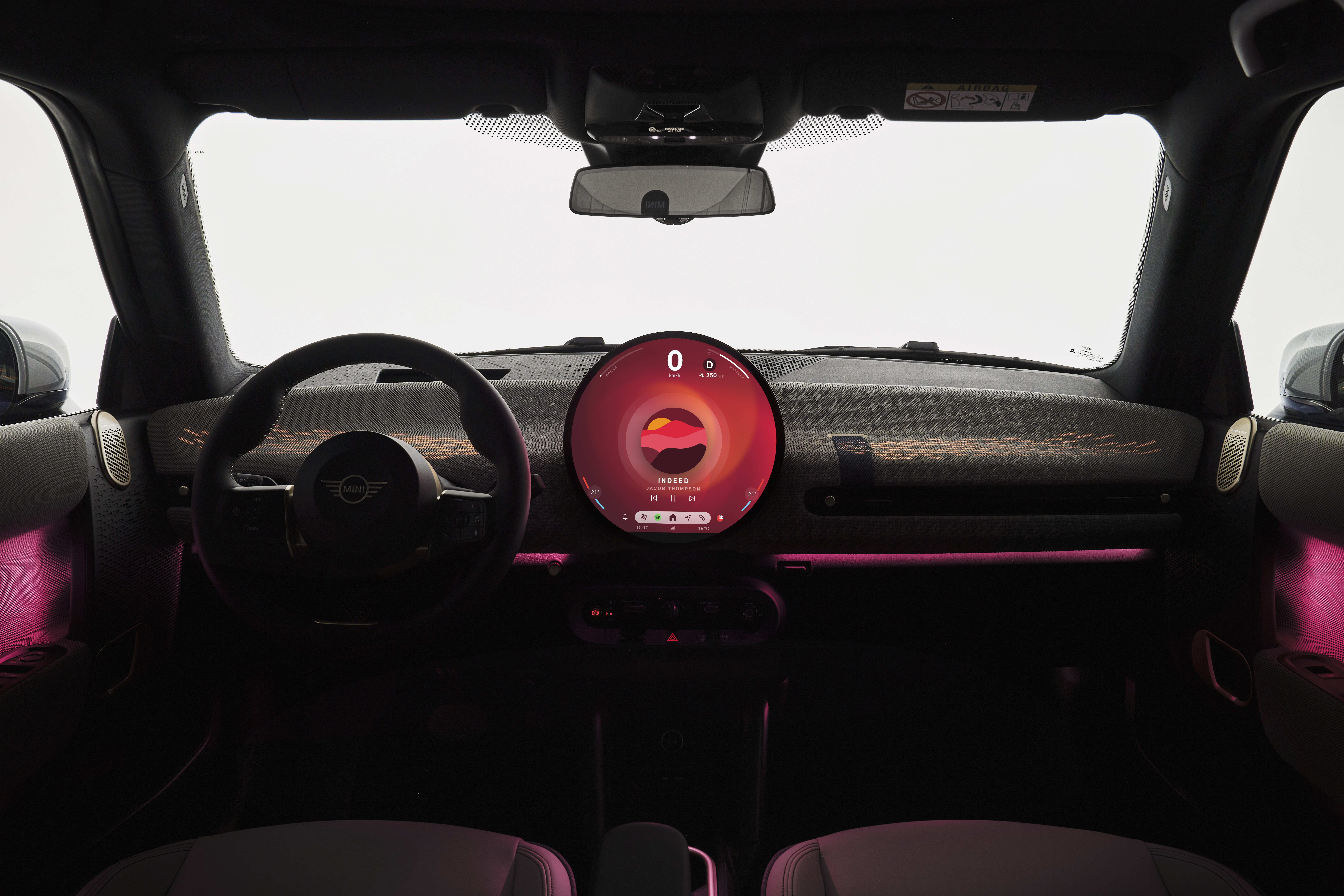 중앙의 OLED 디스플레이는 자동차 디자인의 새로운 기준을 제시하며 인테리어의 특징입니다. 직경 240mm의 MINI 운영체제 9를 탑재하여 터치 또는 음성 제어로 모든 차량 기능을 조작할 수 있으며, 디스플레이를 운전석에 더 가까이 배치하여 손이 쉽게 닿을 수 있도록 했습니다.