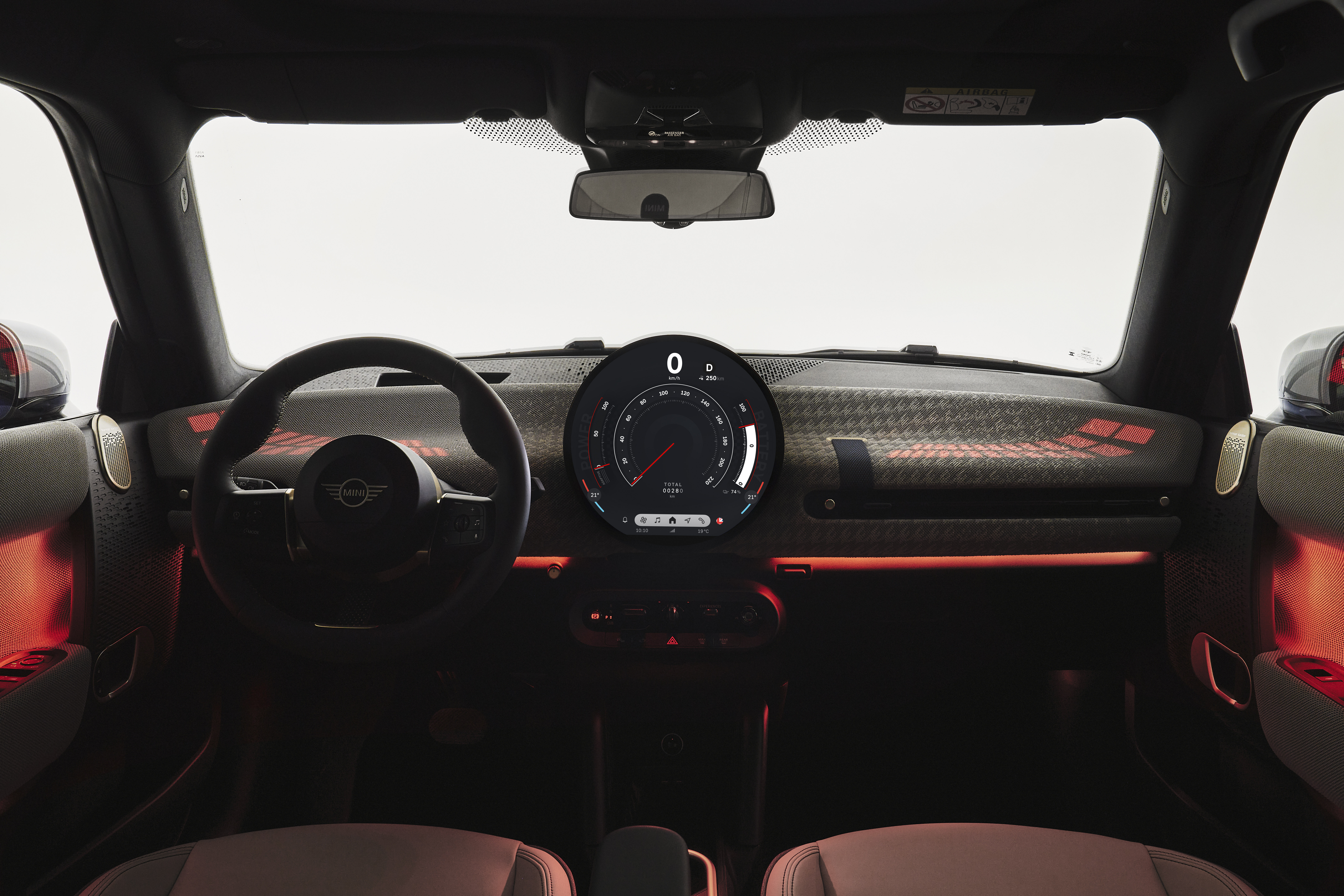 중앙의 OLED 디스플레이는 자동차 디자인의 새로운 기준을 제시하며 인테리어의 특징입니다. 직경 240mm의 MINI 운영체제 9를 탑재하여 터치 또는 음성 제어로 모든 차량 기능을 조작할 수 있으며, 디스플레이를 운전석에 더 가까이 배치하여 손이 쉽게 닿을 수 있도록 했습니다.