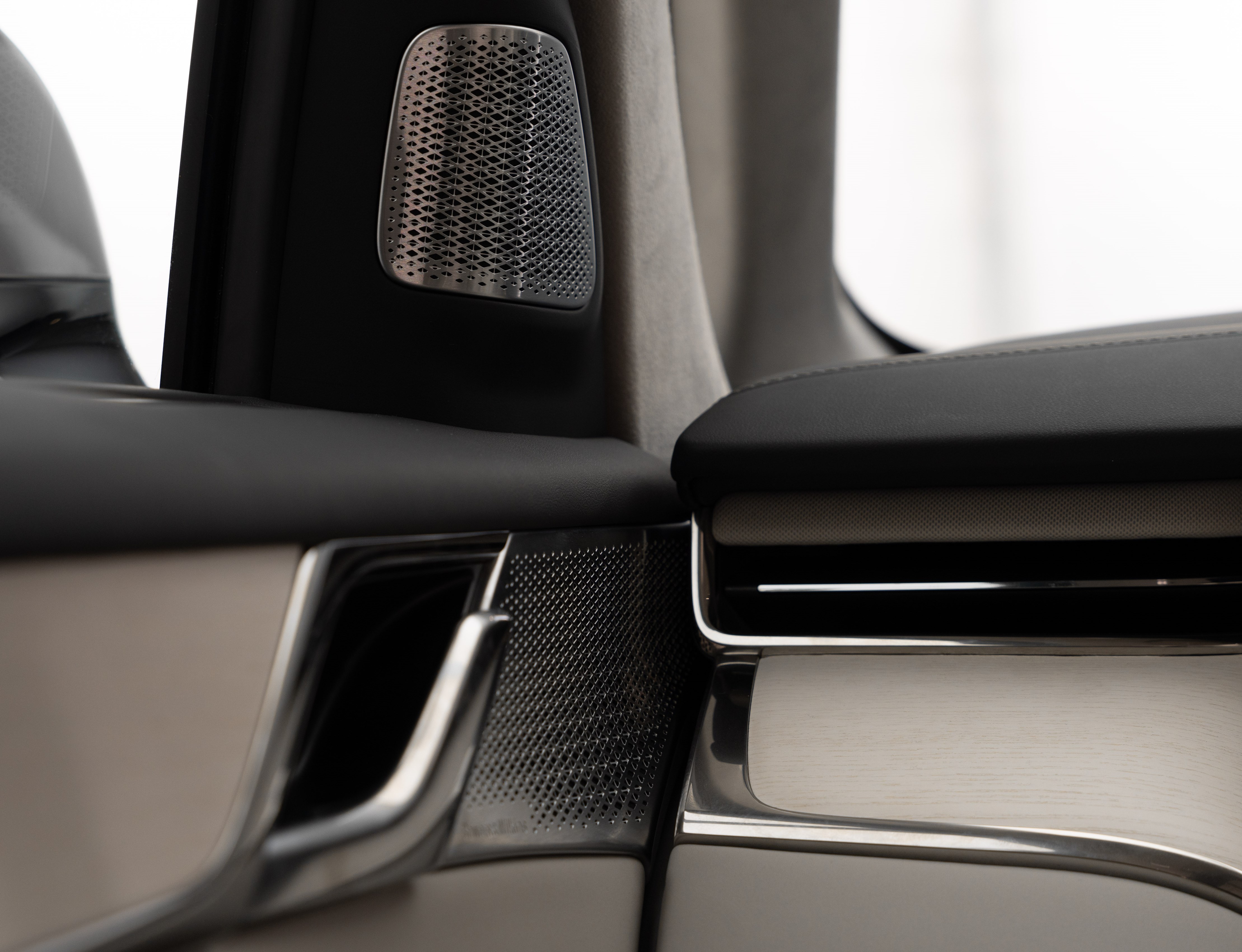 시프트 레버에 사용된 'Orrefors' 크리스털을 비롯해 대시보드, 도어, 앞좌석 뒷면의 백라이트 자작나무 데코 패널 등은 스칸디나비안 디자인다운 부분이다. 시트 표피와 데코 패턴은 스칸디나비아의 자연과 아시아의 예술에서 영감을 얻었다. 예를 들어, 시트 표피의 패턴은 안개에 휩싸인 산을, 백라이트 우드 패널은 대나무 숲에서 비치는 광선을 형상화했다.