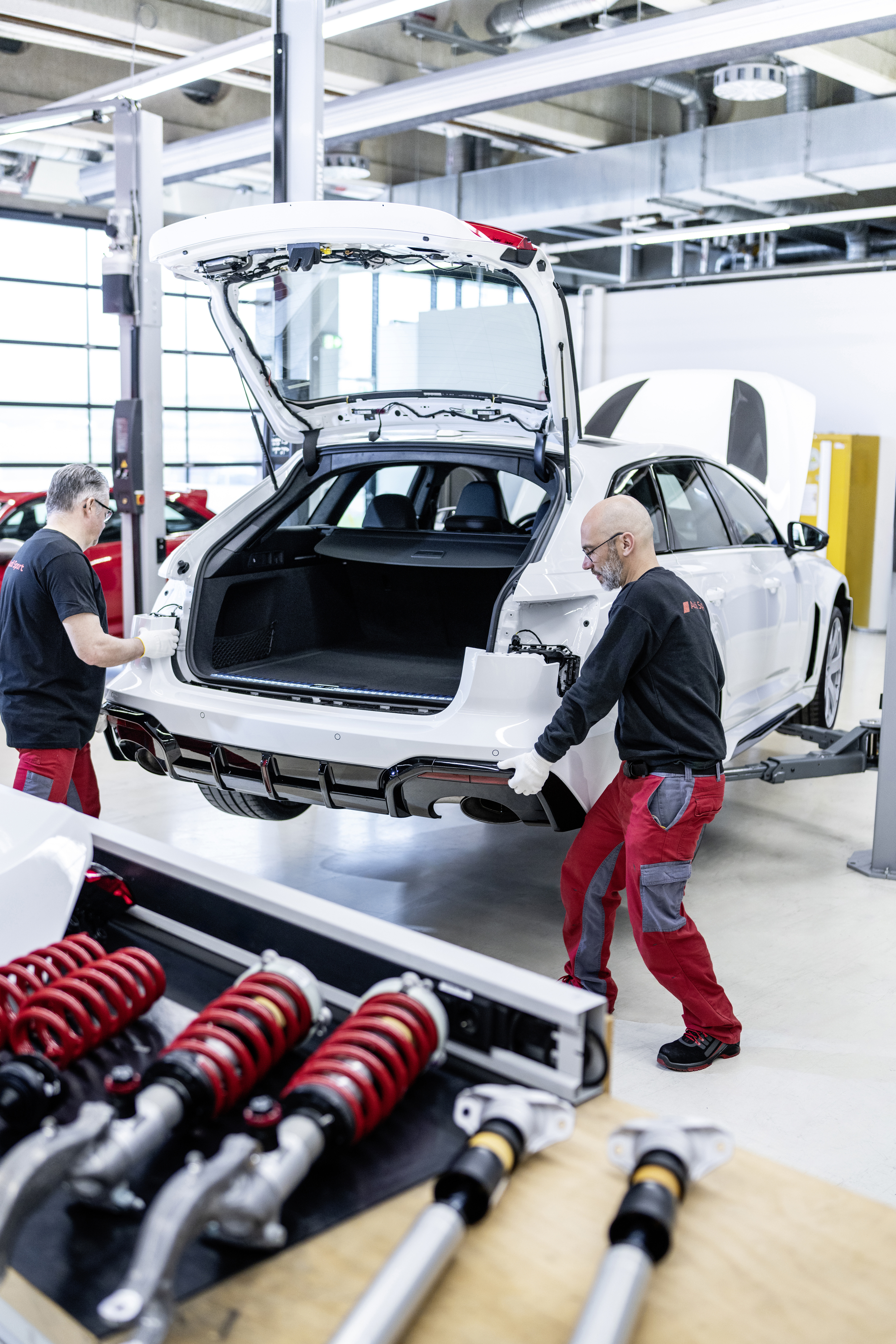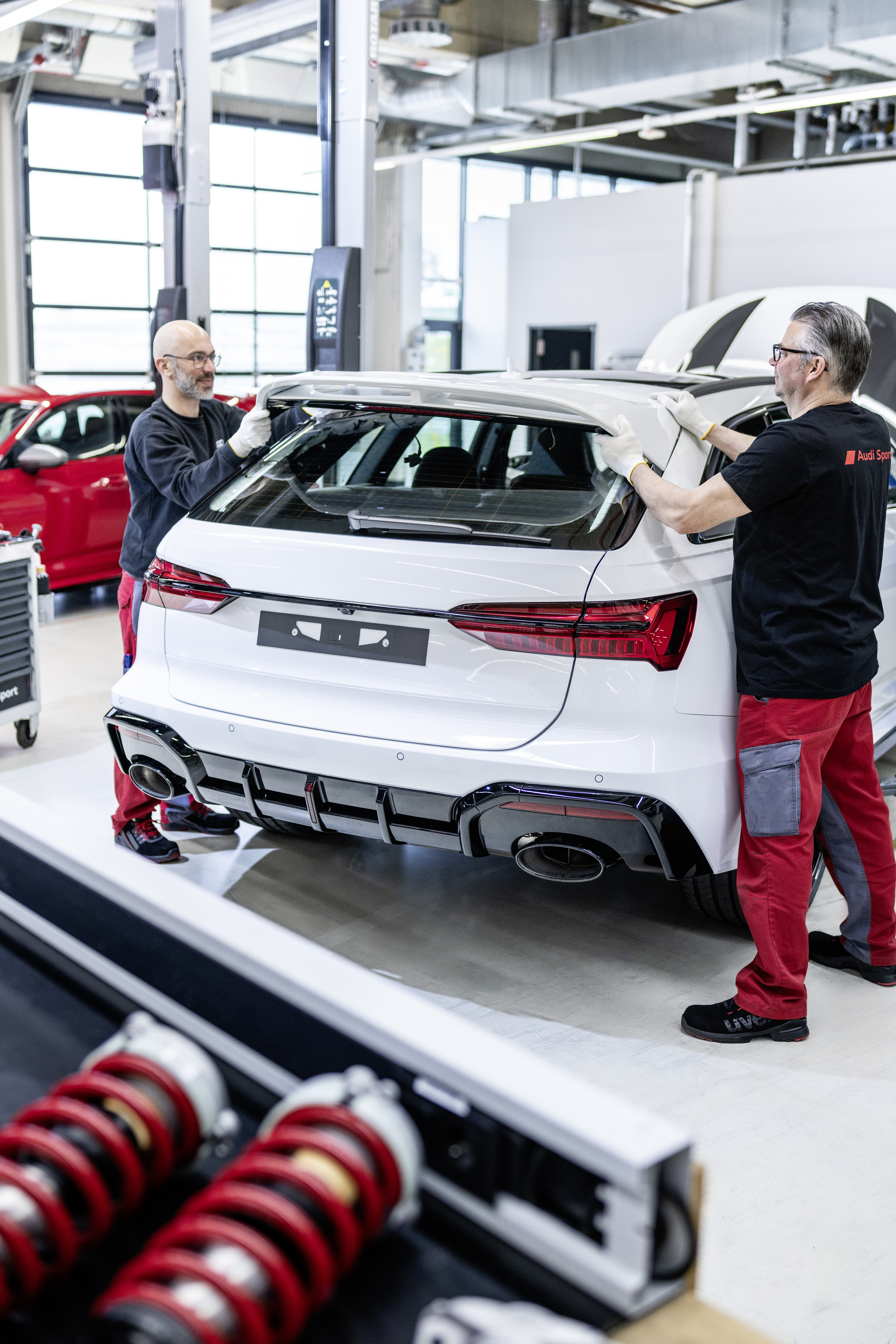 네카줄름에 있는 아우디 생산 공장 근처에 위치한 이 시설은 그룹 내에서 유일하게 유연성이 뛰어난 시설로, 아우디 RS 6 아반트 GT를 완성하는 데 최적의 조건을 제공합니다. 최종 조립은 이 특별한 스페셜 에디션을 위해 특별히 설치된 3개의 조립 스테이션에서 7명의 숙련된 직원들이 수행합니다. 각 차량은 하루 종일 이곳에서 완성됩니다. 전 세계에서 단 660대만 생산되는 RS 6 아반트 GT 모델에는 모든 GT 전용 사양이 수작업으로 장착됩니다. 여기에는 보닛, 휠 아치, 로커 패널, 더블 윙, 프론트 및 리어 에이프런, 조절식 코일오버 서스펜션이 포함됩니다.