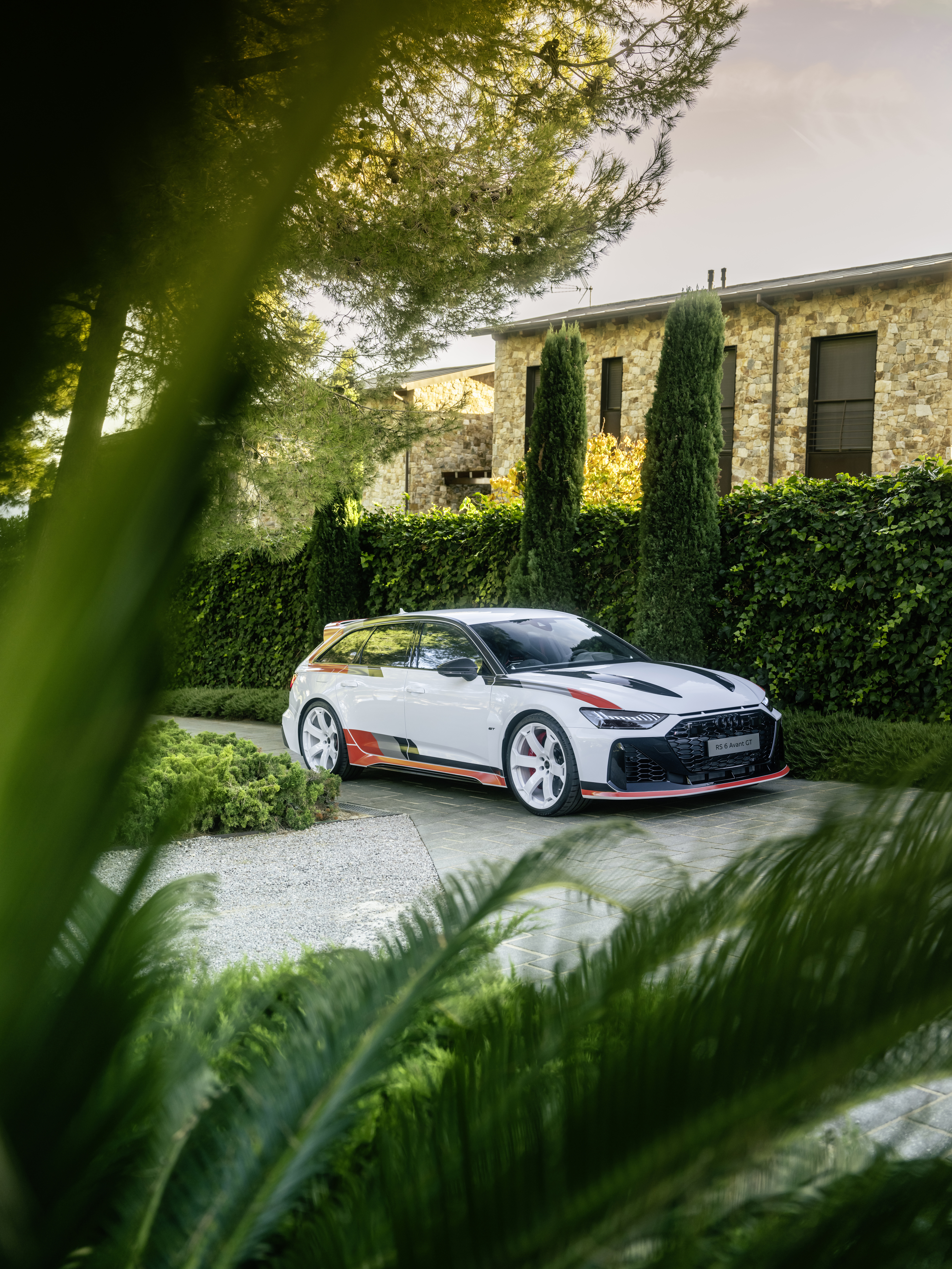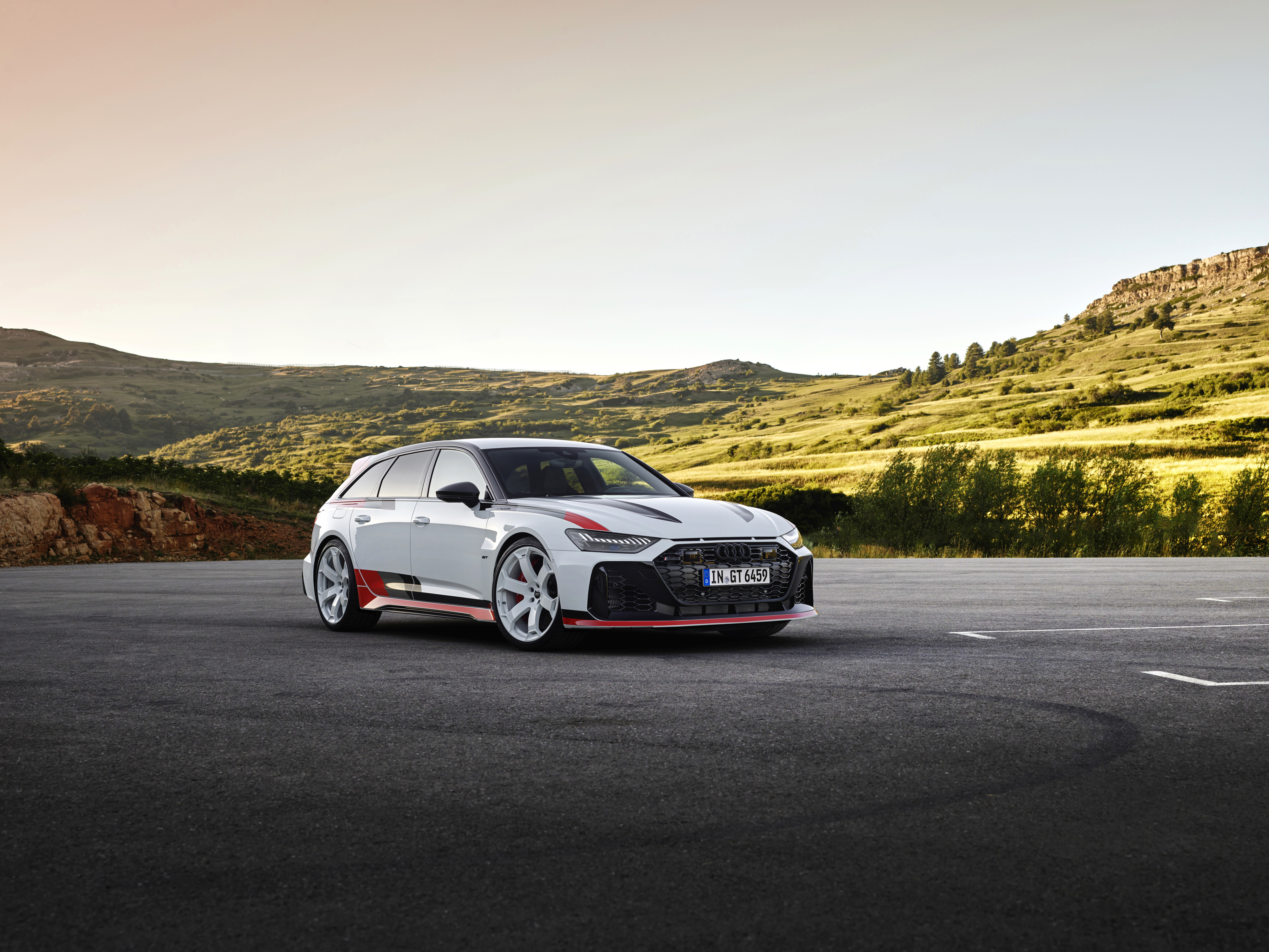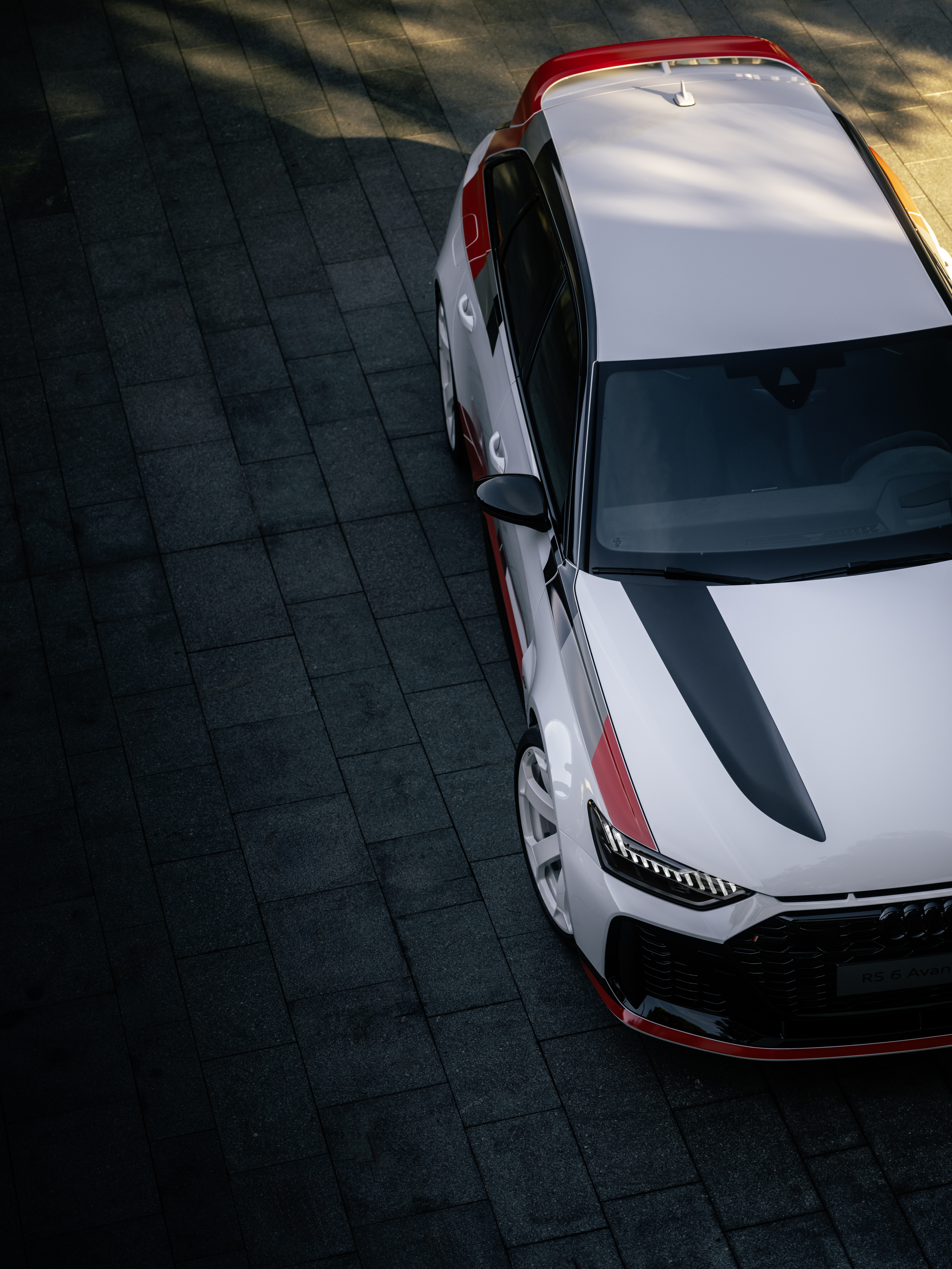 RS 6 아반트 GT는 두 가지 컬러의 스페셜 데칼이 옵션으로 제공된다. 첫 번째 옵션에서는 아르코나 화이트 마감에 아우디 스포트의 전통적인 컬러인 블랙, 그레이, 레드가 어우러진다. 전후면의 모델 배지 역시 이러한 전통적인 색상으로 이루어지며, 독특한 디자인의 휠은 고광택 화이트 컬러로 제공된다. 또 다른 옵션은 블랙과 그레이 톤의 데칼로, 차체 외부는 나르도 그레이나 미토스 블랙 컬러로 마감된다.
